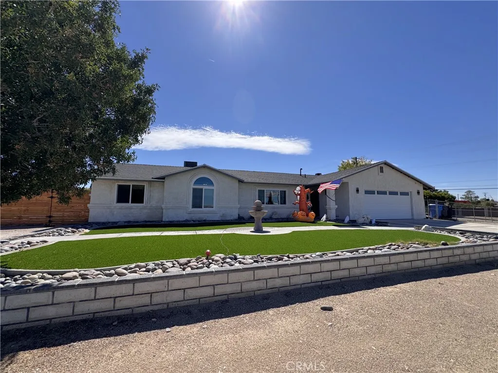 This home truly has it all! Located in one of Barstows most sought-after neighborhoodsBarstow Heightsthis stunning four-bedroom, three-bath home sits on one full acre and features two primary suites, making it ideal for extended family or guests. From the front of the home, you can relax and enjoy beautiful sunrises, sunsets, and sweeping views of the surrounding desert landscapea perfect way to start or end your day. Step inside to find a spacious open-concept kitchen, dining, and living area, as well as a cozy family room with a fireplace. The recently renovated interior showcases new vinyl plank flooring, custom paint, new windows, and updated plumbing and light fixtures throughout. The kitchen has been beautifully upgraded with modern appliances, countertops, a new sink, and a charming garden window that fills the space with natural light. Outside, enjoy low-maintenance turf landscaping in both the front and back yards, so theres no need to bring your lawnmower! The backyard also features new custom wood fencing, while the west side yard offers rock landscaping, a chain-link fence, and a convenient drive-in gateperfect for RV or extra parking. Additional upgrades include a water softener, tankless water heater, mini-split heating and cooling system in the garage, and pull-down attic storage. When its time to relax or entertain, youll love the beautiful heated in-ground spool and spaa true backyard oasis. Theres also a pool house that can serve as an additional living or entertainment space, complete with a ceiling fan, laminate flooring, and plenty of electrical outlets