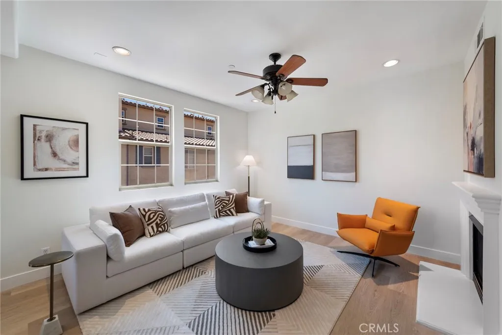 This bright, move-in ready corner condo in desirable Portola Springs features 3 bedrooms and 3 bathrooms with thoughtful upgrades throughout. The entry level includes a private bedroom and full bath, ideal for guests, in-laws, or a home office, along with a separate laundry room for added convenience. The second floor main living area features an open-concept design filled with natural light. Enjoy a cozy fireplace in the living room, a generous dining area, and a modern kitchen complete with a large center island, perfect for meal prep and entertaining. A second bedroom and full bath are also on this level, offering comfort and flexibility. Upstairs, find a luxurious primary suite with dual walk-in closets and a spacious bathroom with a shower, tub, and dual vanities. Enjoy resort-style amenities including community pools and spa, tennis and basketball courts, parks, and walking/biking trails. Zoned for award-winning Irvine Unified School District and a short walk to Portola Springs Elementary, the home is also minutes from Woodbury Town Center, Irvine Spectrum, Great Park Sports Complex, and the upcoming Canopy Shopping Plaza.