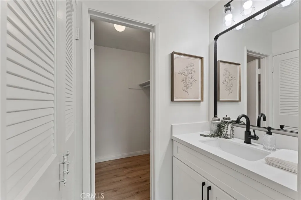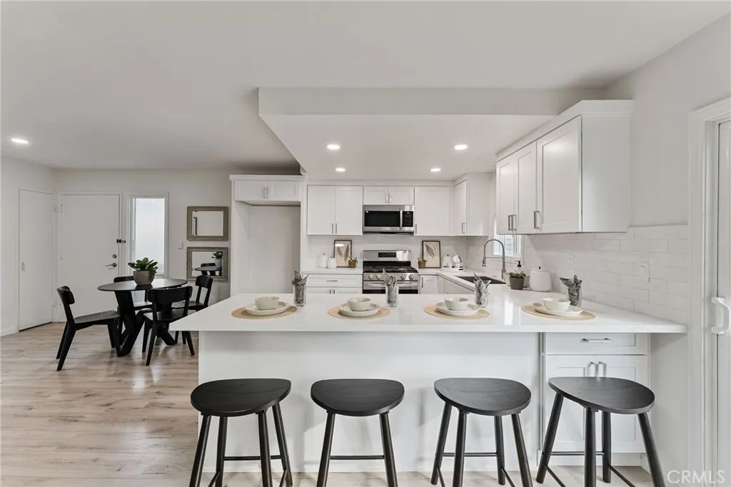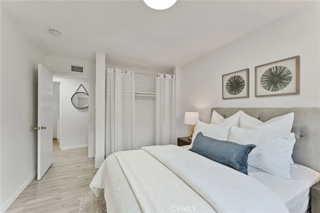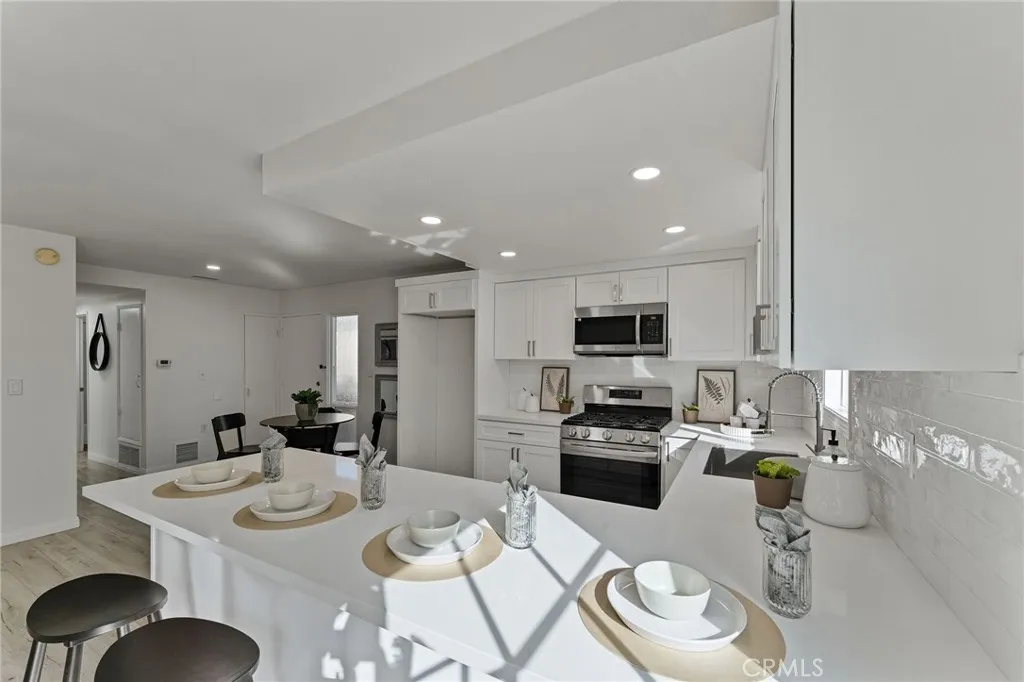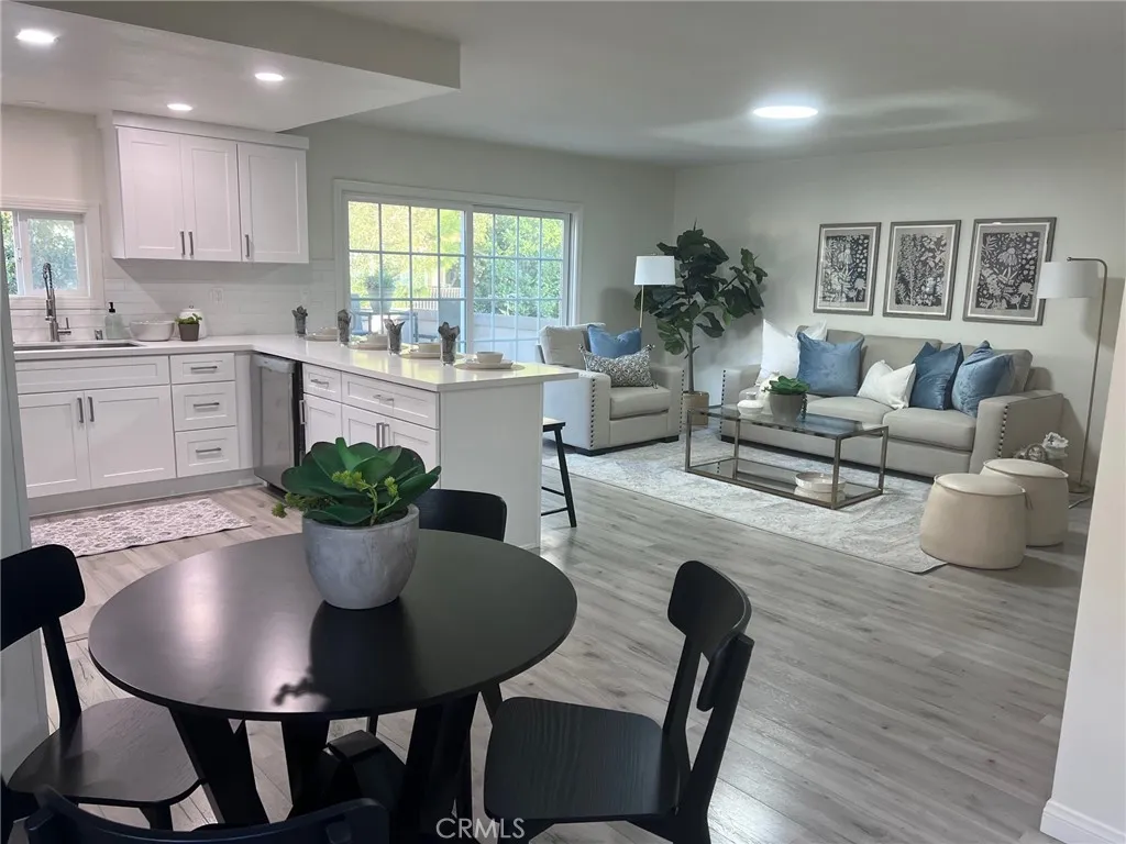 "WOW! Opportunity Knocks." This beautiful turn key home in a gated community is an upper end unit with tree view, also is one of the few units that has very large balcony. The home has open floor plan, as well as, newly remodeled kitchen with new cabinets and quartz counter, a new microwave oven, a newer 5 burner LG Stove and a newer Bosch dish washer. Newly installed ceiling can lights through out kitchen, living, dining and bedrooms. Upgraded Luxurious vinyl plank flooring throughout the home and upgraded double pane windows for the bedrooms. Spacious living room with double pane sliding door to the large balcony that is great for the outdoor entertaining and a nice place to enjoy the morning coffee. The master bedroom has walk-in closet with closet organizer and an upgraded sink. The hallway bath with tub & shower as well as the upgraded sink. The secondary bedroom with closet and large window that provides natural lights. The laundry area is conveniently located under the unit. The association offers trash, water, gas, pool, Spa, clubhouse, BBQ area and Gym. The property has an assigned covered carport with storage space plus the availability to acquire one additional permitted parking space. The community is conveniently located near shopping, South Cost Plaza and easy access to freeways. Its a nice place to call home.