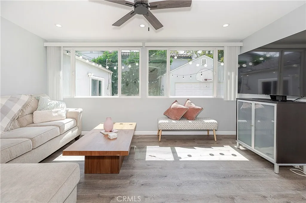Welcome to 1742 El Rito Avenue, a modern 4-bedroom, 4-bathroom home tucked away on a peaceful street in Glendales Verdugo Woodlands.Remodeled in 2013, this home offers thoughtful updates and smart energy-saving features like Structural Insulated Panels (SIPs), dual-pane windows, and remote-controlled skylights. Inside, youll find a warm, light-filled living room with beamed ceilings, hardwood floors, and recessed lighting. The dining area is open and spacious, flowing into a functional kitchen with granite countertops, stainless steel appliances, an island with bar seating, and a built-in desk nook. Downstairs, there are two generously sized bedrooms, two updated bathrooms, and a bonus room that can be used as a gym, office, or even a fifth bedroom with access to the backyard. Upstairs are two more en-suite bedrooms, including a comfortable primary suite with a walk-in closet, vanity space, and an accent wall with custom arched inlay. Other highlights include drought-tolerant landscaping, two HVAC systems, and a detached two-car garage. All of this is located on a quiet, tree-lined street surrounded by sycamores and tucked into one of Glendales most desirable neighborhoods.