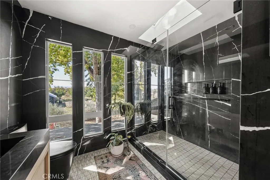 Income Producing Property - Modern Farm on 10 Acres Income producing and completely remodeled, this stunning 3-bedroom, 2-bath home sits on 10 level acres, 8.5 planted with over 550 mature Chandler walnut trees. Featuring high-end finishes and modern touches throughout, the home offers an open floor plan with custom windows framing beautiful views in every direction. Downstairs includes two bedrooms and a full bath, while the upstairs primary suite boasts a breathtaking custom bathroom with black marble walls, large windows overlooking the property, a skylight shower, and designer details that truly impress. Around the home, an acre is fenced with custom modern wood fencing and electric gates, opening to a pristine lawn and spacious porch. The property includes two wells- one for the orchard, producing approx. 300 GPM and another for the home and landscaping. Additional improvements include an open barn, a large shop with a finished room and mini-split (ideal for greenhouse use or potential second-unit conversion), a flower and veggie garden with enriched soil ready to plant and all automated drip, a chicken coop and run, and a greenhouse structure ready to be enclosed. Close to town yet private and peaceful, this is the perfect modern farm property for those seeking luxury, beauty, and income potential all in one. Once you step onto this estate, youll fall in love.