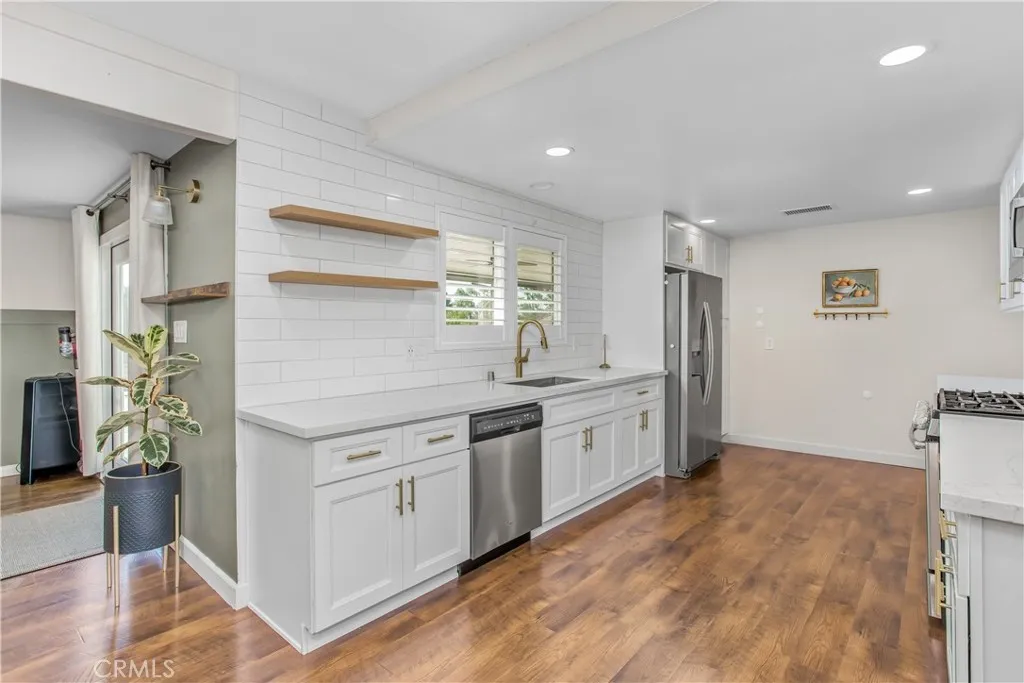 Welcome to this stunning, move-in ready California ranch-style residence featuring 4 bedrooms (two Primary Bedrooms) and 3 bathrooms. Designed for modern living, this home perfectly blends classic charm with stylish upgrades throughout. Step inside to a bright, open layout with a fully updated kitchen boasting sleek cabinetry, quartz countertops, stainless steel appliances, and tasteful finishes. Enjoy the best of California living in your private backyard retreat, complete with two outdoor patios, two cozy firepits, and an outdoor kitchen featuring recessed lighting and ceiling fans for effortless entertaining. The fully fenced yard is ideal for both pets and play, and includes a spacious shed for storage or hobbies. With two driveways, come bring your toys, your pets, theres room for it all here! With no solar hang-ups, a standard property tax rate, and every detail carefully maintained, this one-of-a-kind modern ranch is truly move-in ready.