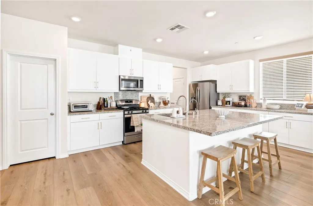 Welcome to 30165 Truckee Circle, a gorgeous 2,336 sq. ft. Single-Story thats Move-In Ready, loaded with upgrades and sits on a Premium Lot! Built less than 18 months ago and located in the desirable neighborhood of Hidden Terrace, this Menifee home comes with 4 spacious Bedrooms, 2 Bathrooms, and Designer Finishes throughout. The open-concept layout is a dream, with the kitchen island facing the family and dining room areas, perfect for family gatherings and entertaining with friends. The Master Bedroom is your retreat, with a spa-like bath including a soaking tub, glass-enclosed shower, dual vanities, and a spacious walk-in closet. Sitting on a Premium Lot with stunning mountain views, the newly landscaped backyard is ready for you to enjoy with lush grass, drainage, concrete, sprinklers, and electrical wiring already installed. NOTABLE UPGRADES & FEATURES: Walk-In Pantry, Granite Countertops, Designer Finishes, New LVP Flooring, Energy Star GE Appliances, Tesla Backup Battery with EV Charger, Premium Water Softener, Home Security System, Fresh Interior Paint, Ceiling Fans & Window Coverings Throughout! COMMUNITY & LOCATION: Enjoy beautiful mountain views, a private park, walking trails and scenic surrounds in the neighborhood of Hidden Terrace. This home is just minutes from shopping, dining and access to the 215 Freeway & 74 Highway, perfect for those who commute! This property has it allPrice, Features, Functionality and Location!