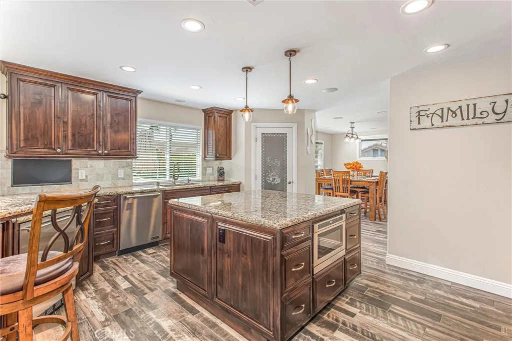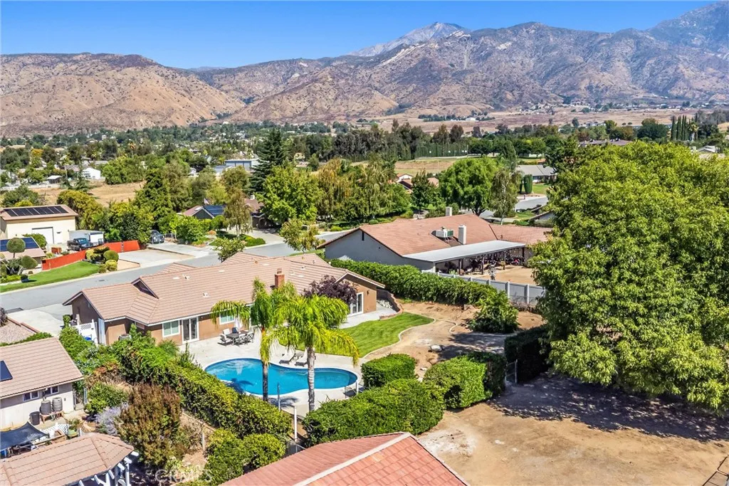 Impeccable single-story POOL home in a highly sought-after North Bench neighborhood of Yucaipa. This beautifully remodeled 4-bedroom, 2-bathroom home offers a comfortable living experience on a generous half-acre lot, complete with mountain views. The inviting floor plan features a stunning kitchen equipped with elegant granite counters, a large center island, walk-in pantry, bar seating, beverage drawers, built-in microwave and upgraded JennAir and Zline appliances, making it ideal for both everyday living and entertaining. Large windows along the back of the home fill the space with natural light and showcase the backyard and outdoor living area. The beautifully updated fireplace with a custom mantle adds a cozy touch to the living space. The primary suite is a light and bright peaceful retreat with a walk-in closet, large shower, Vanity with dual sinks, soaking tub and patio access. The additional bedrooms are spacious and provide plenty of storage. The indoor laundry room is equipped with a sink and storage cabinets for convenience. As an added bonus there is the access to the back of the property which opens up possibilities for an ADU, a workshop, or easy access for RV or boat parking, or a bridle trail for horses. Conveniently located near schools, shopping centers, restaurants, Oak Glen, and more!