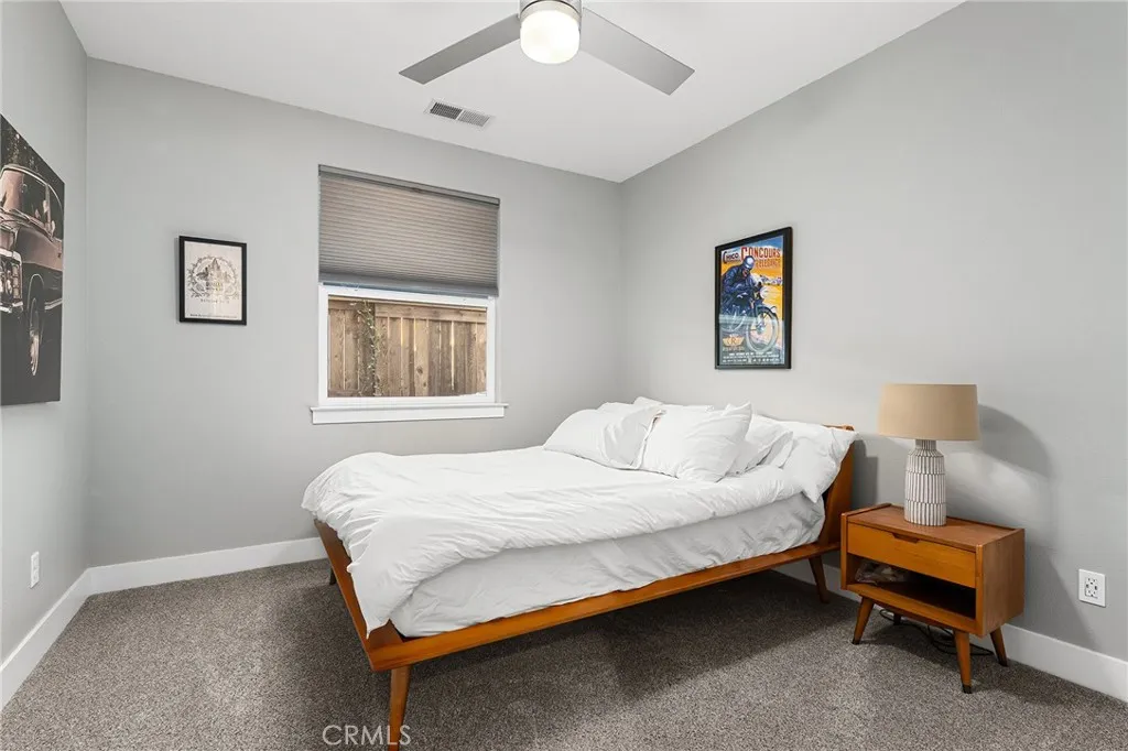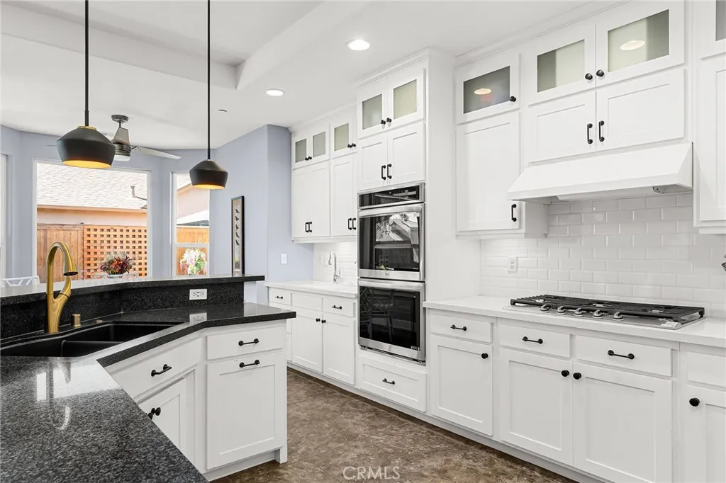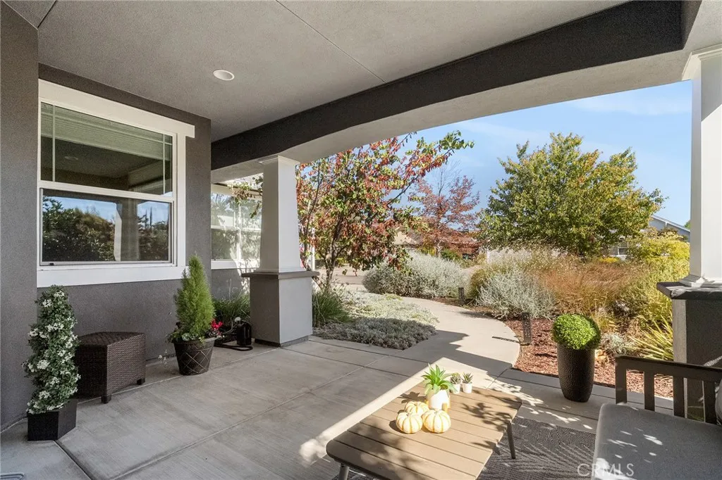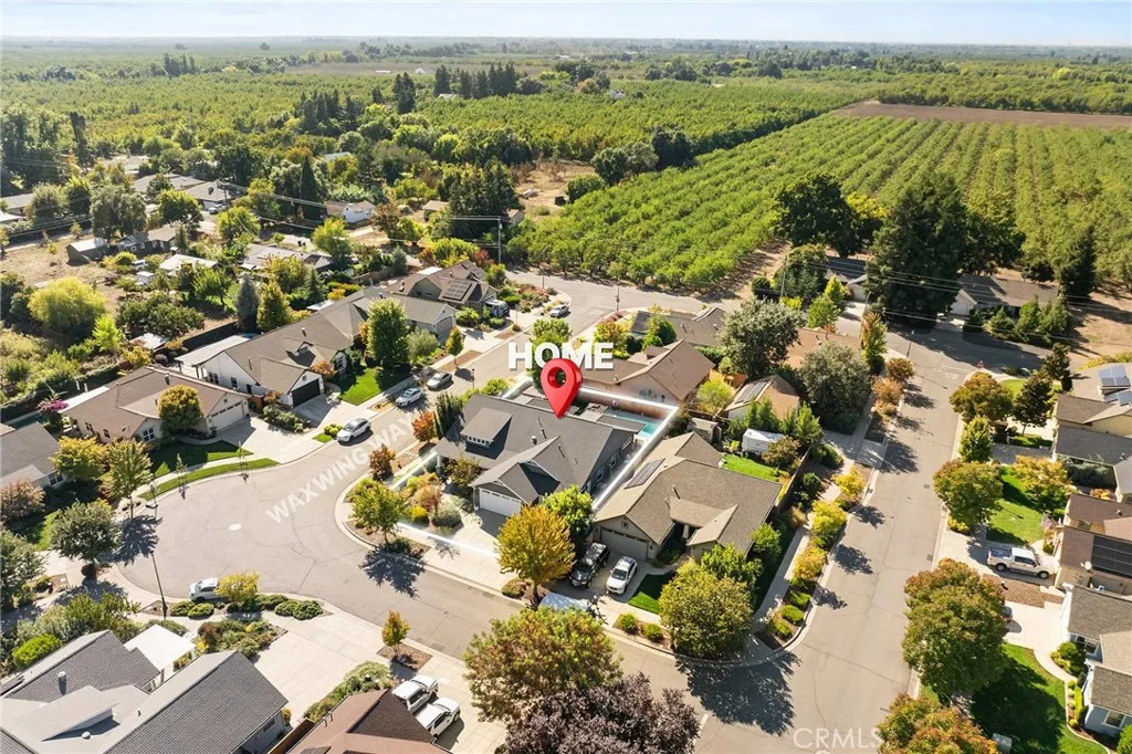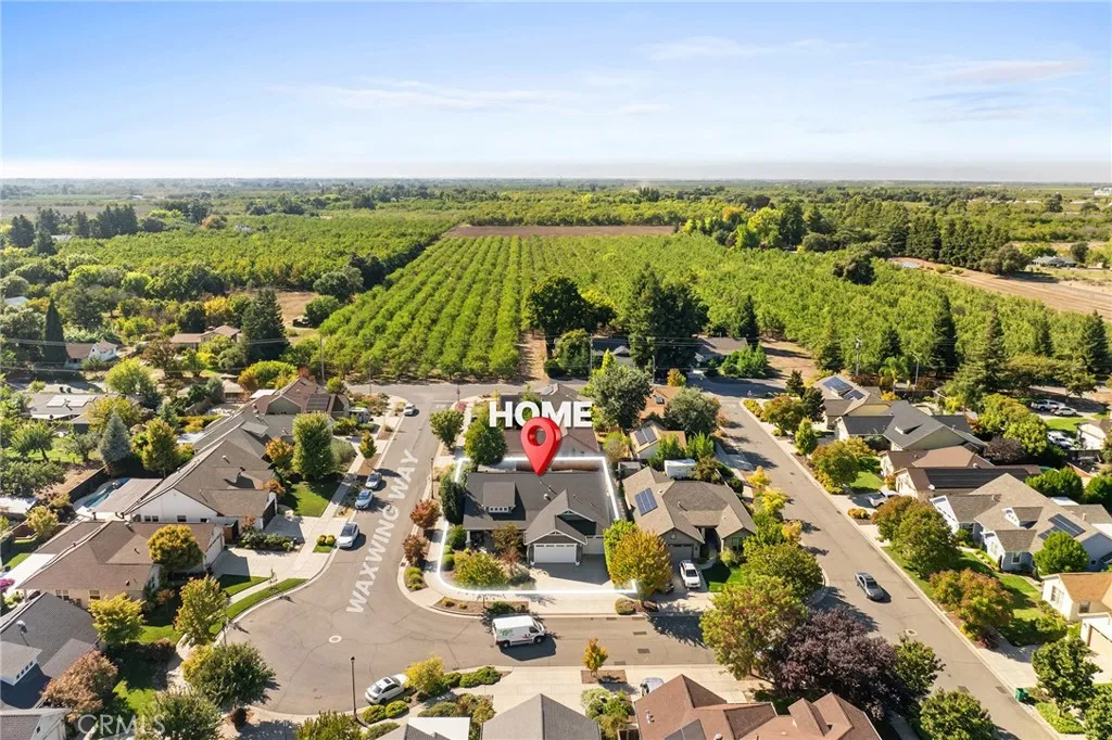 Tucked among the orchards on Chicos quiet west side, 1924 Waxwing Way is more than a home; its an experience. A place where refined craftsmanship meets everyday comfort, and thoughtful design invites you to slow down, breathe, and truly live. Built by Shastan Homes and gracefully set on a corner lot, this 4-bedroom, 2.5-bath residence spans over 2,500 sq. ft., blending modern elegance with timeless charm. From the moment you arrive, youll be captivated by the curb appeal, the welcoming front porch, newly stained fencing, and drought-tolerant landscaping framed by mature greenery. Step inside and feel the harmony of space and light. The entry opens to tray ceilings, luxury vinyl plank flooring, and designer fixtures that draw you toward the heart of the home. Just off the entry, a cozy family room sets the tone for gatherings, a perfect spot to greet guests or enjoy morning coffee as sunlight fills the space. The layout flows effortlessly, offering places for connection and retreat. A dedicated movie room with French doors is ideal for a quiet night in, while the open-concept living room and kitchen are made for togetherness. Tray ceilings, recessed lighting, and large windows bring warmth and natural light to every corner. The kitchen is both functional and beautiful, anchored by granite countertops, bar seating, and a cabinet pantry. Brand-new stainless steel double ovens, cooktop, and microwave shine beneath updated fixtures. Designer hardware, a wet bar, and custom up-down shades throughout add elegance that elevates every moment, whether hosting friends or enjoying a qu