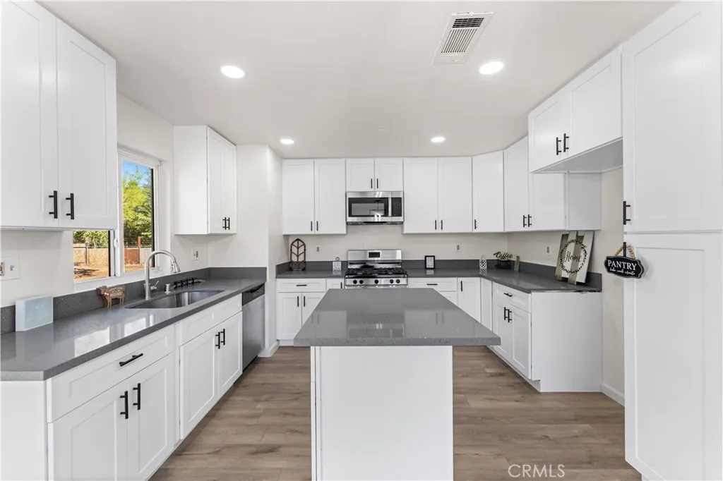 Fabulous Lake LA RV Home!!! .. Four Bedrooms / Two Baths Fully Rehabbed.. Everything is new.!!! Home has Newer windows...Brand new super cool wood laminate floors throughout floor plan, the kitchen has been fully renovated with new cabinets, Quartz Countertops, new recessed lighting & Brand New Stainless Steel Appliances.. All Bedrooms and dining area have modern light fixtures.. The bathrooms have been fully renovated with new vanity cabinets, quartz countertop, deep undermount sinks... Features an open concept with a Cozy Fireplace .. Rear yard is Oversized .. Huge Lot !! Plenty of privacy and room to play, Plenty of room for all those toys.. Come preview this rare offering today!!