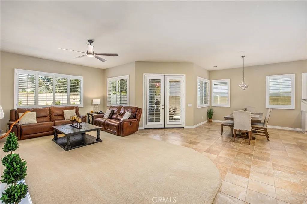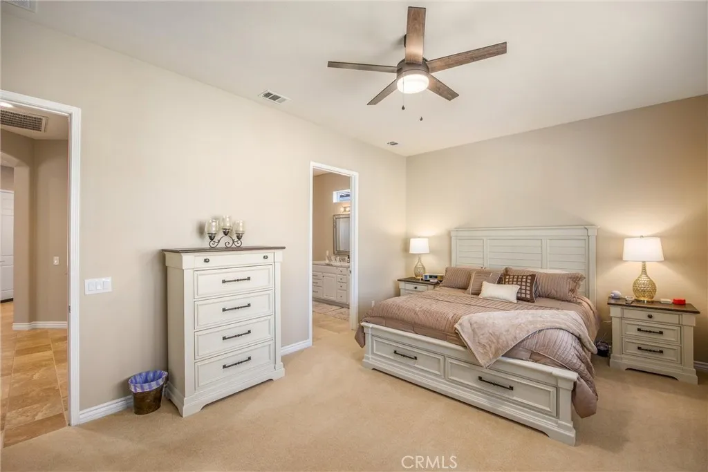 Welcome to this beautifully upgraded Emerald model home, located in the desirable Solera 55+ Active adult community. This move in ready gem offers breathtaking mountain views and a thoughtfully designed open floor plan perfect for both everyday living and entertaining. Freshly painted interior and exterior, updated cabinets and quartz counter tops throughout. Newer stainless steel appliances, including a double oven, gas range and Bosch dishwasher. Spacious kitchen with abundant cabinets and pantry. Large indoor laundry room with washer and dryer included.Two expansive primary suites, with updated bathrooms and walk in closets. Bonus room ideal for a home office or craft space. Newer ceiling fans, plantation shutters, and oversized baseboards throughout. Neutral color palette to suit any decor. Updated half bath in hallway. Covered patio perfect for outdoor dining and entertaining. Attached garage with 2 car parking plus golf cart space. Garage has built in shelving, cabinets, and overhead storage. Newer insulated garage doors. Enjoy the Best of Solera with resort style amenities and a affordable HOA that includes spectrum internet and T.V., Large swimming pool and spa, Beautiful gym, pool tables, tennis Courts and pickleball courts, Bocce ball and more! All this plus Security of a gated guarded Community! Don't miss out on this exceptional opportunity. Call today for your private showing!