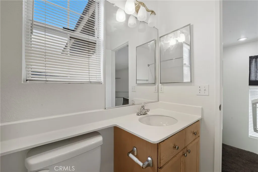 Welcome to Parkside Green a Beautifully Cared-for Gated Community! This incredible home offers one of the largest floor plans in the neighborhood, featuring approximately 1,623 square feet of living space. Upon entry, youre greeted by soaring high ceilings and an abundance of natural light in the spacious living room and formal dining area. The open kitchen provides ample cabinetry, countertop space, and an additional dining or flex area perfect for family gatherings or entertaining guests. Conveniently located on the main floor are a half bathroom and a laundry area, along with direct access to the attached two-car garage. Upstairs, the primary suite impresses with vaulted ceilings, a large walk-in closet, and a private ensuite bathroom featuring a dual-sink vanity and a soaking tub/shower combo. Two additional bedrooms and another full bathroom complete the upper level. Residents of Parkside Green enjoy multiple gated entries, a community park, basketball courts, and an expansive playground perfect for families with young children. The neighborhood is ideally located near major freeways, The Shops at Dos Lagos, The Crossings at Corona, and several nearby parks. This home truly combines comfort, space, and convenience in one of Coronas most desirable communities!