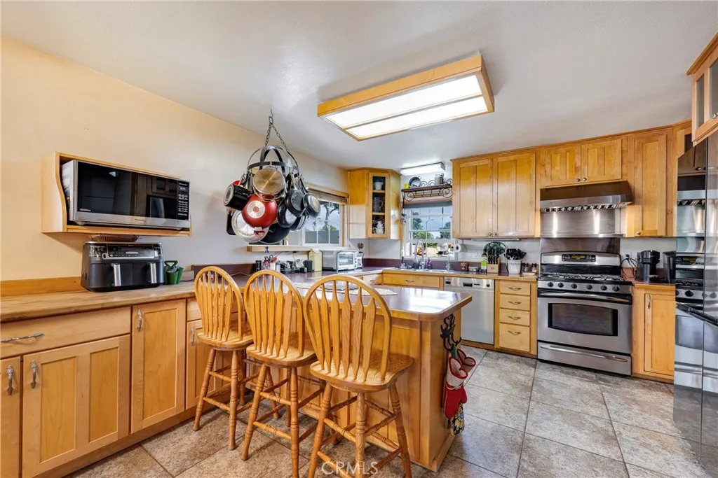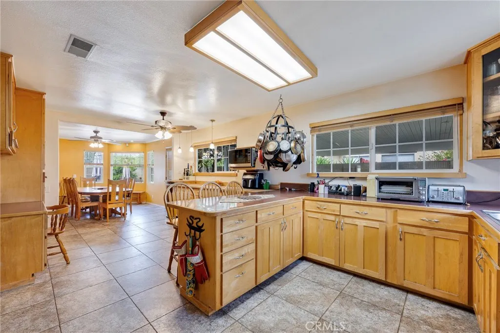 This 5 bedroom, 3 bathroom pool home offering nearly 2,000 square feet of comfortable living space and RV parking is perfect for families and entertainers alike. Step inside to find a convenient main floor primary bedroom suite along with two additional bedrooms and shared bathroom, a spacious family room and a large family sized dining area, plenty of room in the kitchen including ample cabinet space with a wine refrigerator, perfect for hosting those Sunday dinners. Upstairs you will find the 4th and 5th spacious bedrooms and your 3rd bathroom. The open layout seamlessly connects indoor and outdoor living, leading to a backyard built for entertaining. Enjoy your private backyard oasis featuring a sparkling pool, spa, and a fully-equipped outdoor kitchen with a built-in BBQ, oven/stove, warming drawer, commercial sink, two ice makers, refrigerator, and an outdoor TVall under a covered patio perfect for year-round gatherings. Fruit trees add charm and a touch of nature to the backyard, including an orange tree, lime tree, and a banana tree, and some strawberries in the garden area as well. Additional highlights include a newer roof (about 4-5 years old), leased solar panels through SunRun for energy efficiency and a great neighborhood with top rated schools. Don't wait to come make this home your own.