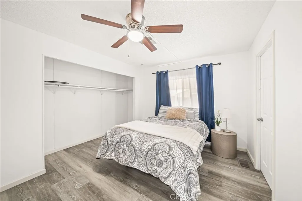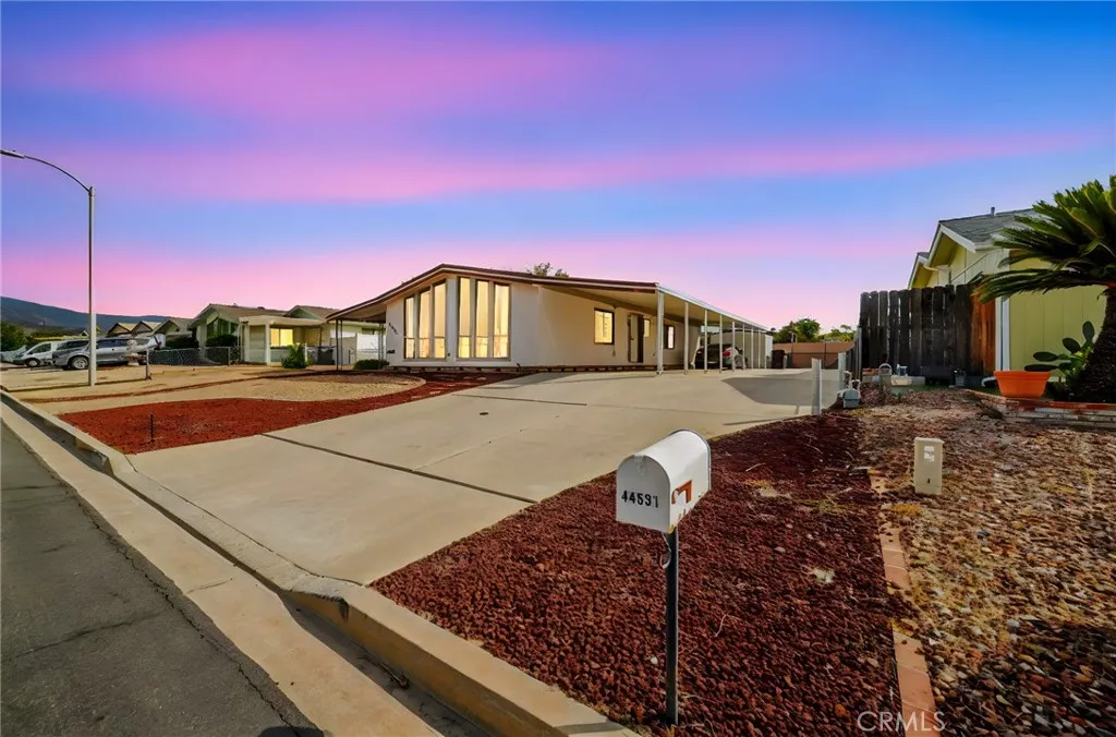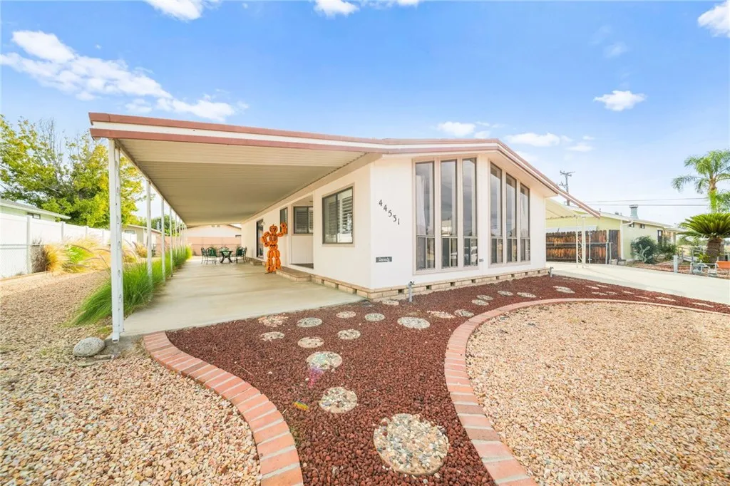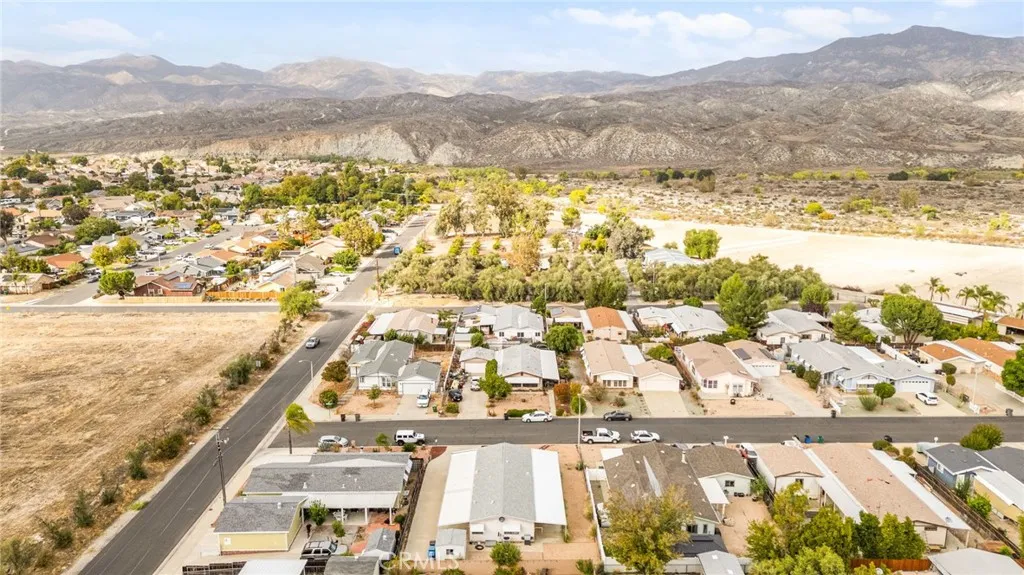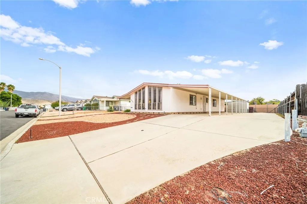 Mountain Views & Land Ownership in Hemet! Enjoy stunning San Jacinto Mountain views from this spacious 2-bedroom, 2-bath manufactured home on a 7,405 sq. ft. lot you own the land! Featuring 1,440 sq. ft. of open living space with NEW laminated flooring throughout, New shutters, New recessed ceiling lighting, vaulted ceilings, abundant natural light, and a bright kitchen that opens to the dining and family areas. The primary suite includes a dual-sink vanity, soaking tub and a standing shower. The second bedroom has a jack and jill bathroom, while the backyard offers low-maintenance landscaping, a storage shed, and ample parking for up to 8 cars, an RV, or a boat. Located in a quiet neighborhood with no HOA or age restrictions, you own the land, just minutes from Mt. San Jacinto College, Soboba Casino, and Diamond Valley Lake.