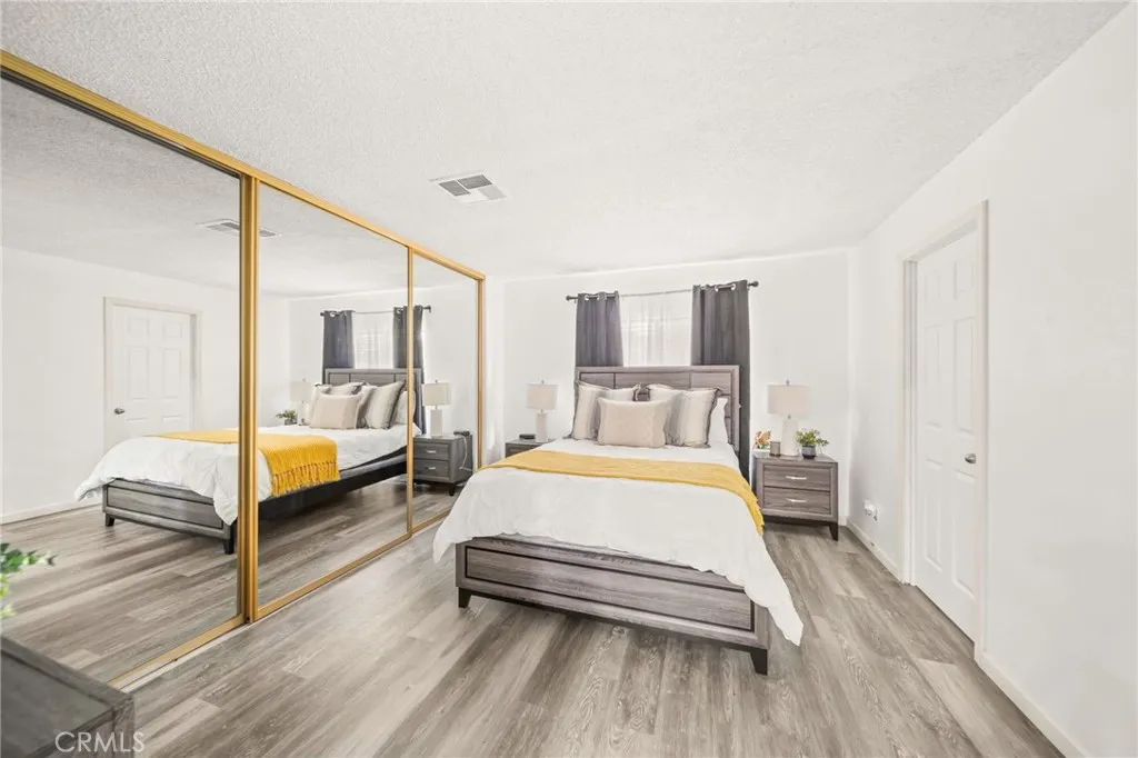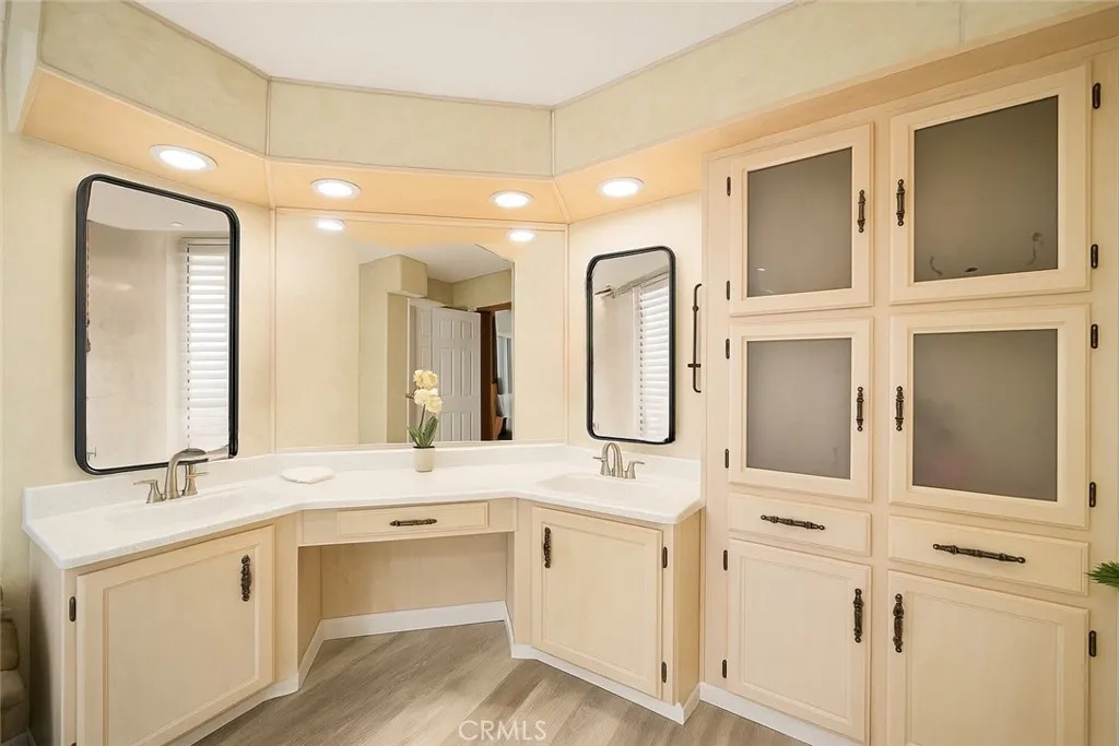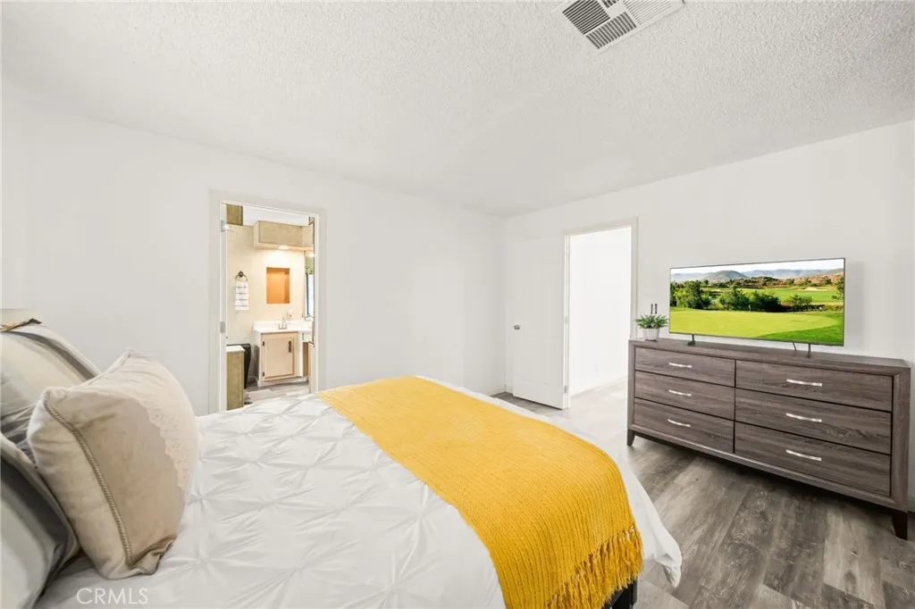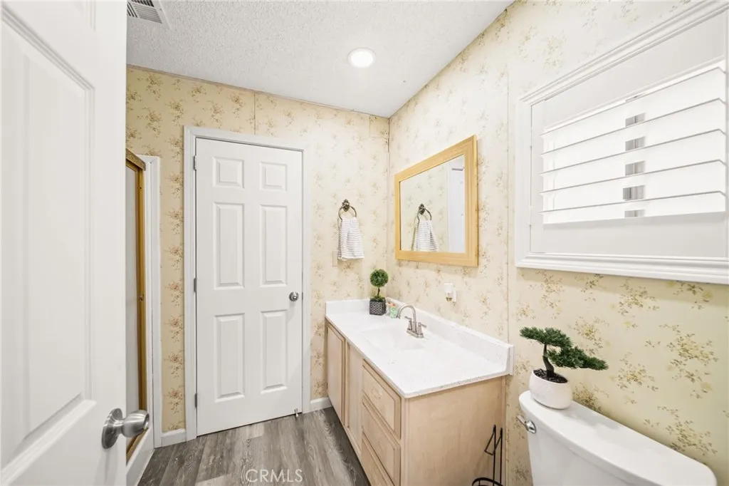 Mountain Views & Land Ownership in Hemet! Enjoy stunning San Jacinto Mountain views from this spacious 2-bedroom, 2-bath manufactured home on a 7,405 sq. ft. lot you own the land! Featuring 1,440 sq. ft. of open living space with NEW laminated flooring throughout, New shutters, New recessed ceiling lighting, vaulted ceilings, abundant natural light, and a bright kitchen that opens to the dining and family areas. The primary suite includes a dual-sink vanity, soaking tub and a standing shower. The second bedroom has a jack and jill bathroom, while the backyard offers low-maintenance landscaping, a storage shed, and ample parking for up to 8 cars, an RV, or a boat. Located in a quiet neighborhood with no HOA or age restrictions, you own the land, just minutes from Mt. San Jacinto College, Soboba Casino, and Diamond Valley Lake.