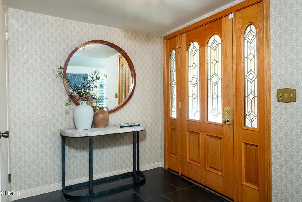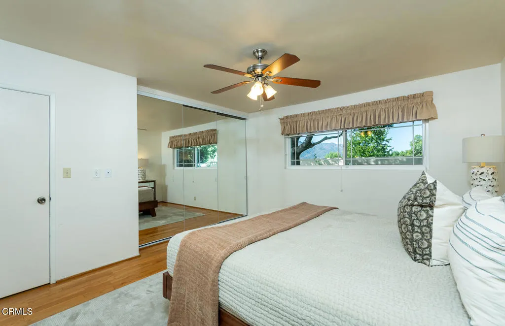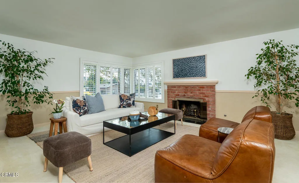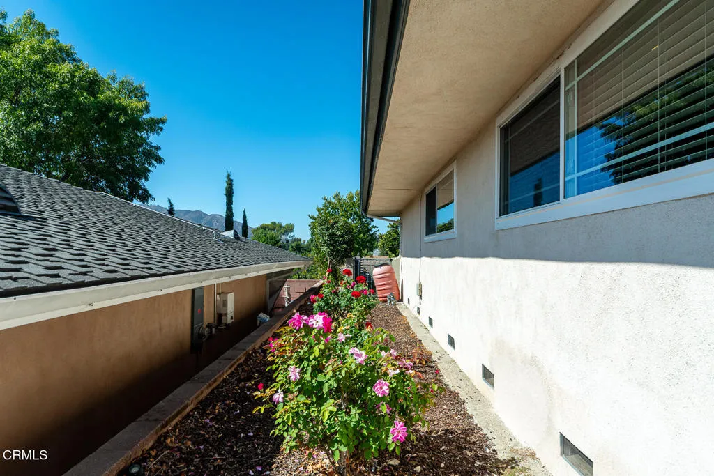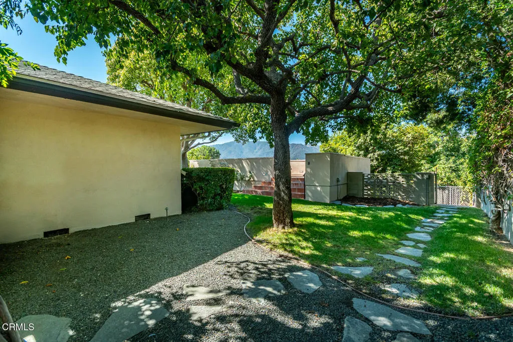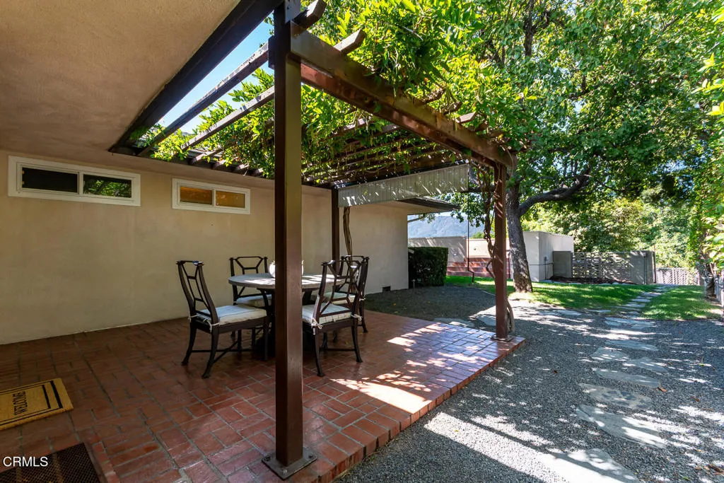 This Mid-century custom-built view home located in the Crescenta Valley Highlands, is on the market for the first time ever! Elevated from the tree-lined street, a slate entry welcomes you to this well-maintained home, adorned with hardwood floors, recessed lighting, and a wonderful floor plan. The spacious living room features a brick front gas fireplace and wraparound window with plantation shutters, giving it a bright and airy feel. Around the corner is the dining room with skylights to illuminate the space, and the graceful kitchen accented with counter seating, a garden window, and attractive cabinetry. Down the hall lie the four bedrooms and two baths. The generous primary suite offers views of the mountains and a full bath with Corian counters, dual vanity, and separate tub/shower room. The fourth bedroom, currently used as an office, features a wall of built-ins and a closet. Off the kitchen is an attached 2 car garage with direct access to home and a Level 2 EV charger. In the mood to dine al fresco? Step through the sliding glass door in the kitchen to the brick patio and pergola ... a great spot to enjoy the private and serene backyard against the backdrop of the mountains. Beyond the pergola is a grassy yard and an elevated patio, offering countless entertaining opportunities and stunning views of the Verdugo Mountains. A staircase takes you to the incredible separate 372 sq. ft. accessory building currently used as an office, built in 2004. This light and bright building, features French doors on either end, large picture windows. recessed lighting and a heat a