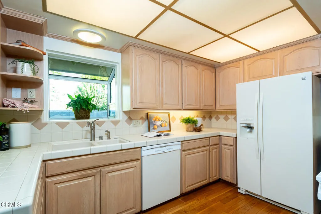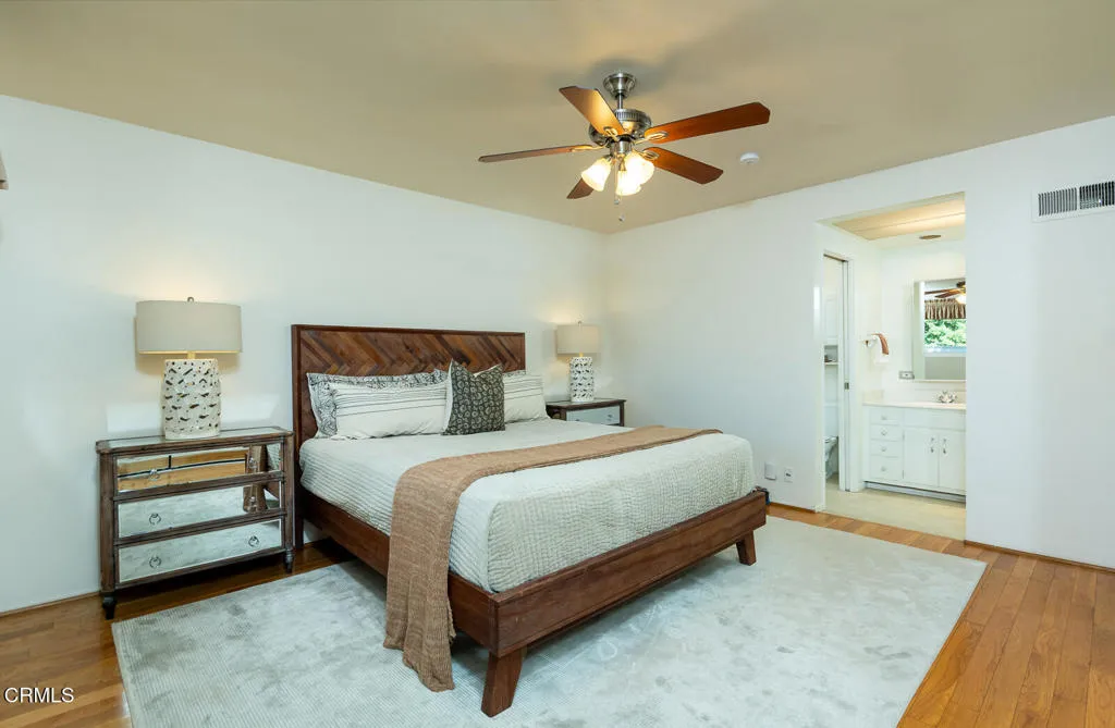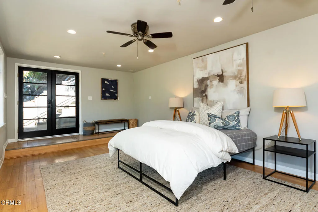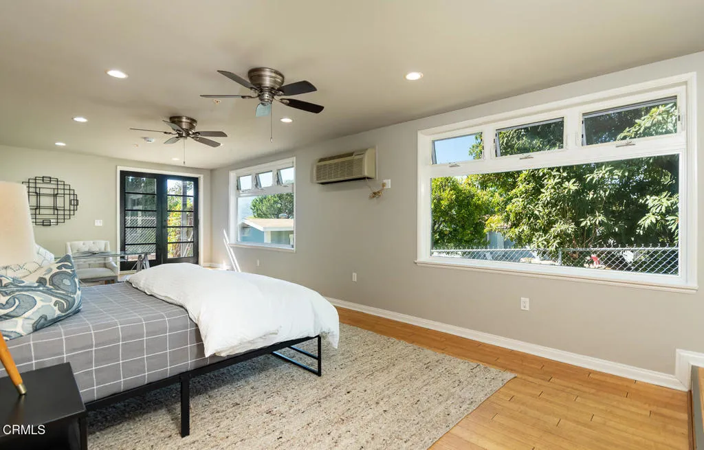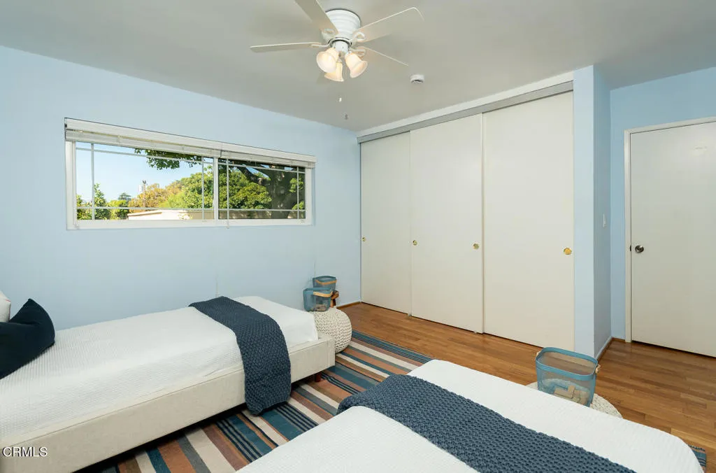This Mid-century custom-built view home located in the Crescenta Valley Highlands, is on the market for the first time ever! Elevated from the tree-lined street, a slate entry welcomes you to this well-maintained home, adorned with hardwood floors, recessed lighting, and a wonderful floor plan. The spacious living room features a brick front gas fireplace and wraparound window with plantation shutters, giving it a bright and airy feel. Around the corner is the dining room with skylights to illuminate the space, and the graceful kitchen accented with counter seating, a garden window, and attractive cabinetry. Down the hall lie the four bedrooms and two baths. The generous primary suite offers views of the mountains and a full bath with Corian counters, dual vanity, and separate tub/shower room. The fourth bedroom, currently used as an office, features a wall of built-ins and a closet. Off the kitchen is an attached 2 car garage with direct access to home and a Level 2 EV charger. In the mood to dine al fresco? Step through the sliding glass door in the kitchen to the brick patio and pergola ... a great spot to enjoy the private and serene backyard against the backdrop of the mountains. Beyond the pergola is a grassy yard and an elevated patio, offering countless entertaining opportunities and stunning views of the Verdugo Mountains. A staircase takes you to the incredible separate 372 sq. ft. accessory building currently used as an office, built in 2004. This light and bright building, features French doors on either end, large picture windows. recessed lighting and a heat a