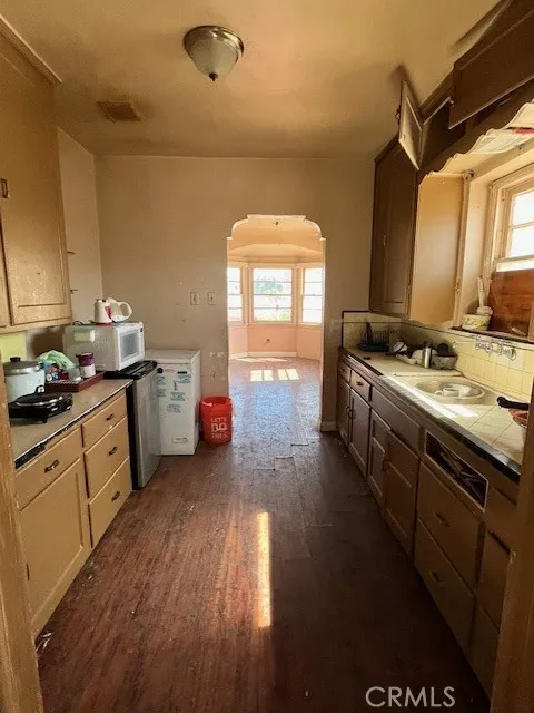 Excellent investment opportunity located in a commercial/residential zone in the heart of city of San Bernadino. The house is a two bedroom and one and a half bath that can easily make it as a business office/retail unit (check with city for detail) or as a residential unit with a generous 1282 sq ft inside and a large 8,000 sq ft lot for future expansion for either a commercial unit or a residential dwelling. A two car garage detatched. This is a fixer upper property and will sell it AS IS. Seller will not do any repair! Cash prefer !
