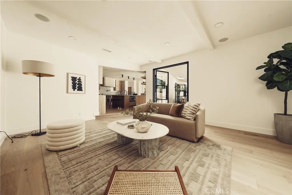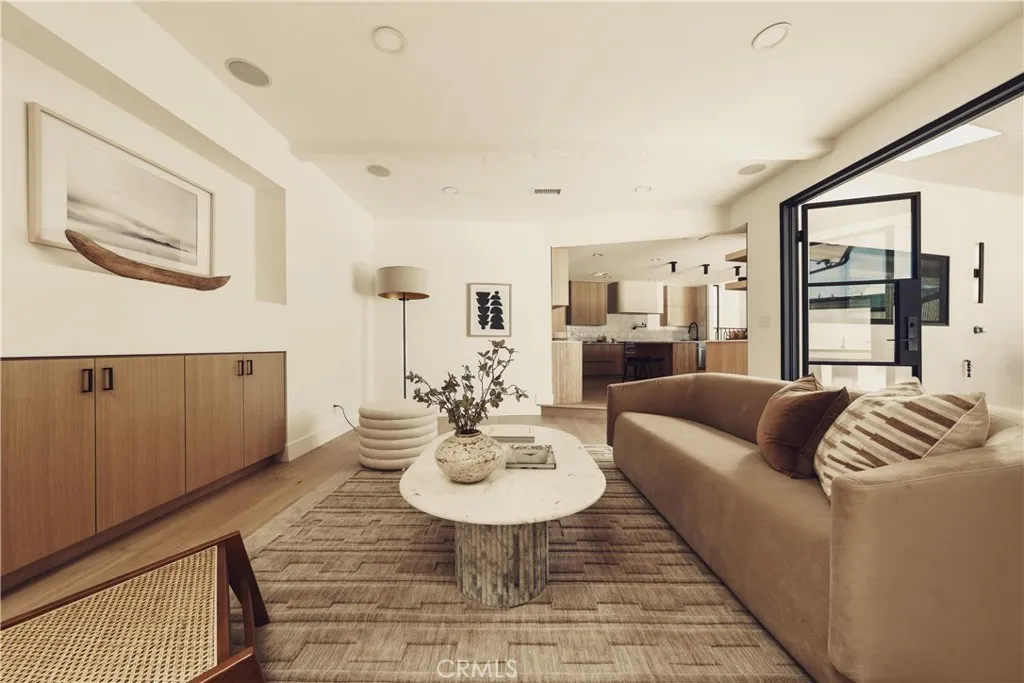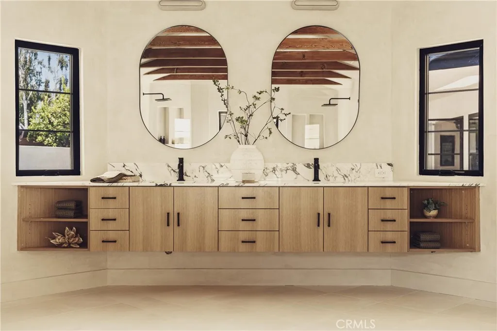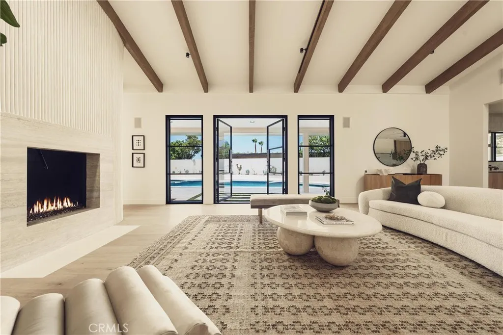 Welcome to this stunning, sprawling residence in the Hills of Encino, offering timeless, luxurious design and exceptional craftsmanship. From the moment you arrive, the smooth stucco faade with limestone accents delivers striking curb appeal. Travertine steps lead you to an impressive ten-foot glass entry door, setting the tone for what awaits inside. The foyer is bathed in natural light, thanks to multiple iron French doors and strategically placed skylights. The great room is anchored by an expansive fluted architectural fireplace, creating a sophisticated, inviting ambiance. Throughout the home, premium finishes, including French oak engineered hardwood flooring. A massive living room faces the backyard seamlessly flows into the chefs kitchen, highlighted by a large island with fluted wood paneling, abundant white oak cabinetry, top-of-the-line Thermador appliances, and a walk-in pantry for added convenience. Adjacent to the kitchen, a private family room offers a cozy retreat separate from the main entertaining areas. A central hallway leads to two bedrooms, a formal dining room featuring a built-in wine rack, a stylish bathroom, and a utility room with laundry facilities. In the southern wing, youll find two en-suite bedrooms and the expansive primary suite overlooking the backyard. The primary bathroom is a showstopper, with dual showers featuring travertine checkered floors, limestone flooring, and a custom dual vanity topped with Arabescato Corchia marble. The custom walk-in closet provides generous storage and organization. The low-maintenance backyard is perfect f