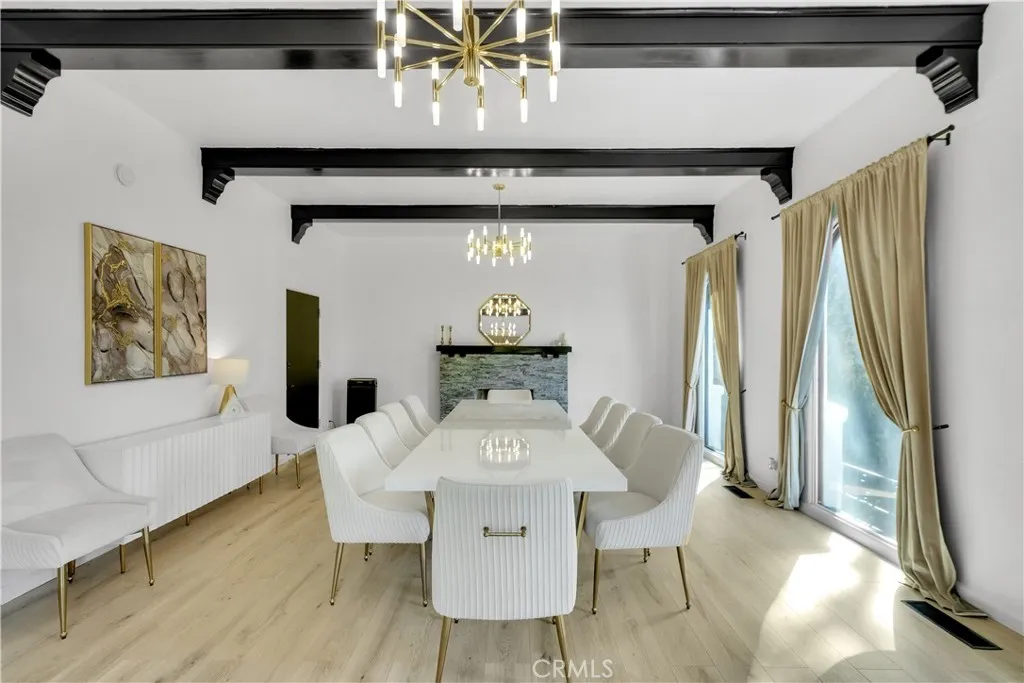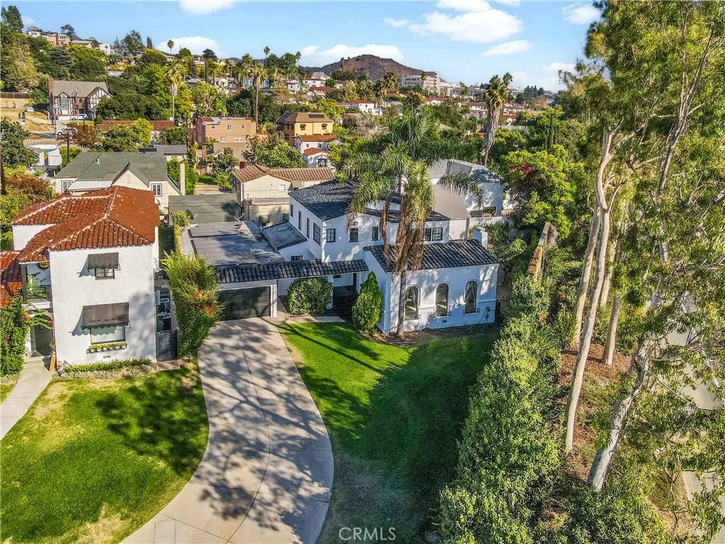 Discover Glendale elegance in this newly remodeled residence on a cul de sac. A beautifully landscaped front lawn and the long driveway lead to an attached two car garage, setting the tone for the refined living that awaits inside. Step through the front door and experience the seamless fusion of timeless Spanish charm and modern sophistication. The interior has been fully renovated and freshly painted, featuring high ceilings and rich architectural details. Both the formal living and family rooms feature fireplaces, offering inviting spaces for both grand entertaining and intimate gatherings. The chefs kitchen is complete with custom cabinetry, and an elegant flow into the formal dining room and a cozy breakfast nook. A spacious sunroom offers direct access to the backyard, perfect for relaxing. The main level includes a private bedroom, a perfect retreat for guests or multigenerational living. Upstairs, you will find three spacious bedrooms, including a stunning primary suite with a large walk in closet and an en suite bath. Each bedroom is paired with its own beautifully updated bathroom, ensuring comfort and privacy for all. With all new plumbing, independent AC zones, solar panels, a basement, and meticulous attention to detail throughout, every inch of this home has been thoughtfully designed for modern luxury. Outdoors, the 10,800 square foot flat lot provides an entertainers dream, a sparkling pool and outdoor spaces ideal for relaxation or recreation. This residence blends historic character with contemporary refinement in a desirable Glendale neighborhood. Private