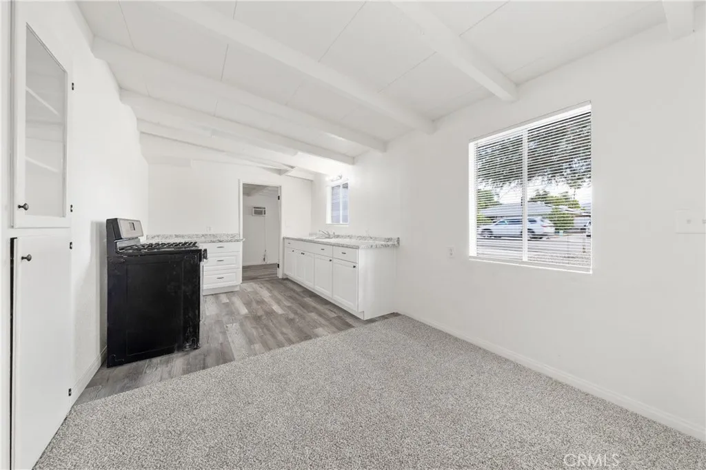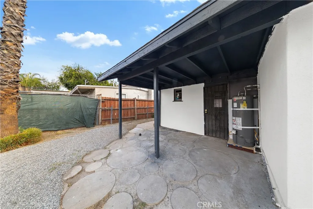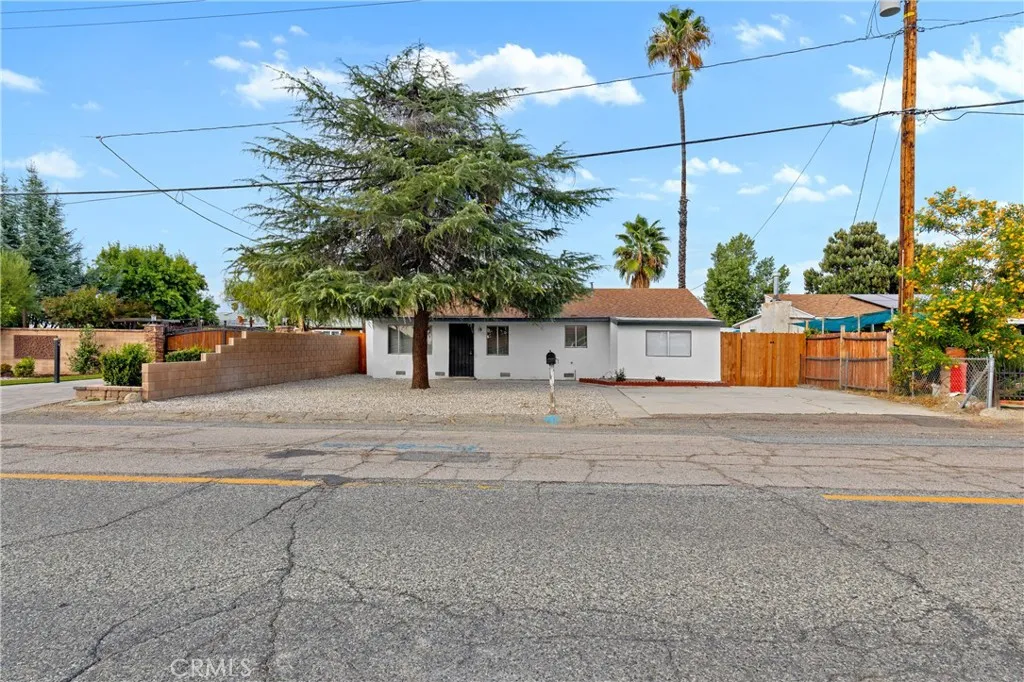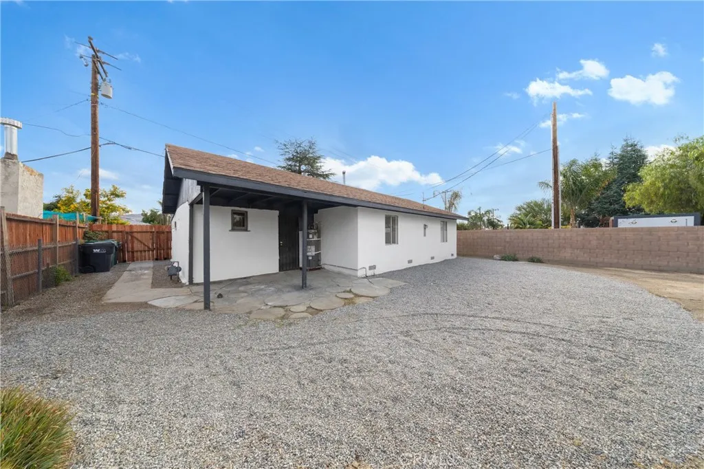 Freshly renovated 3 bedroom 1 bath home on large lot located in desirable Southeast Hemet. Living room has beamed ceiling and wood-burning fireplace. Kitchen has new granite-look laminated counter tops, gas stove, and built-in bookcase perfect for cookbooks and knickknacks. Full bathroom with new vanity and toilet, shelves, and tub/shower with decorative glass tile-work. Inside laundry/mud room. Linen closet. New paint and carpet. 3 wall ACs and gas wall furnace. Front and rear security screen doors. Covered patio. Block wall fencing on 2 sides. Side yard access to backyard wide enough for a car or a small boat or trailer. Rock-scaped front yard with huge shade tree.