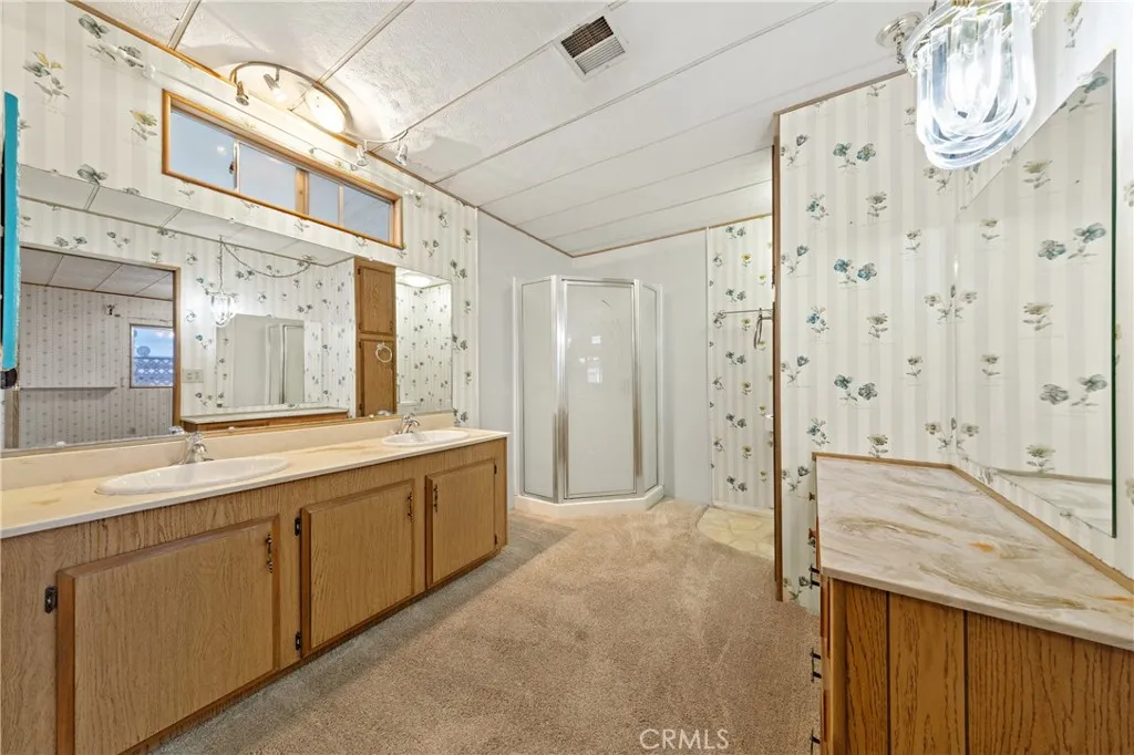 Large 2 bedroom 2 bath mobile in Golden Coach Manor senior rental park. Living room with ceiling fan and built-in china hutch. Kitchen has Formica counter tops, Stainless steal sink, 5-burner stove, breakfast bar, standing pantry, and laminated flooring. Family room with slider to covered porch. Primary bedroom has 2 mirrored wardrobes and a linen closet, dual-sink seated vanity, shower stall. Inside laundry. Wheel chair lift. 2 sheds. Close to dining and shopping options. Lovely park amenities.