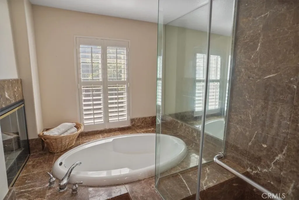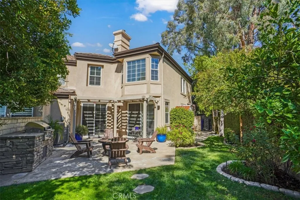Beautiful Valencia 'Avignon Gated Community" Executive Townhome. ** NO Mello Roos Taxes** . Location-Location-Location. This rare townhome location includes a lushly landscaped rear patio and yard directly overlooking the 16th green at Valencia CC. This is the 3 bedroom floorplan however the 3rd bedroom option is/was configured as an open loft. This layout includes living, family and dining areas. Two sided fireplace in both the living & family rooms. Spacious kitchen featuring lots of granite counter and cabinet space. Counter seating bar for more casual meals. Expansive windows with plantation shutters throughout showcasing the rear patio yard, and golf course. Light bright throughout. The primary bedroom overlooks the golf course and features a two way fireplace connecting to the primary bathroom suite. Double door walk in closet adjacent to the primary bathroom suite. The 2nd upstairs bedroom has it's own en-suite full bath. Inside Laundry room. Direct garage access. Garage features extensive storage cabinets. Relaxing outdoor lifestyle offers a covered patio, fountain, firepit, fruit trees and secluded golf course viewing area plus a side yard with a storage unit. Recently installed high efficiency Heat Pump FAU for central heating and cooling. Avignon community amenities include the recreation center with pool, Spa, lounge & firepit area plus lushly landscaped grounds with relaxing seating areas for pleasant strolls without leaving the Avignon community. Short stroll to the Valencia Town Center featuring shopping, restaurants, fitness center, mall and more.