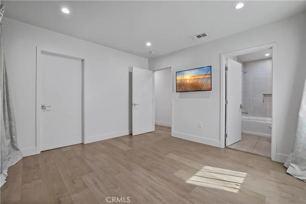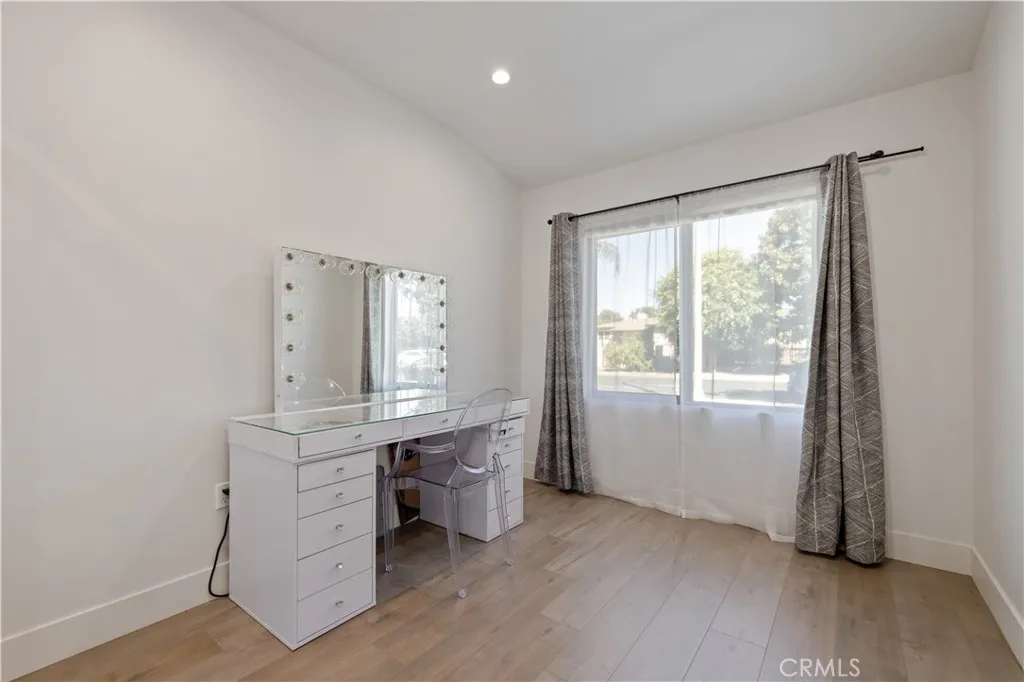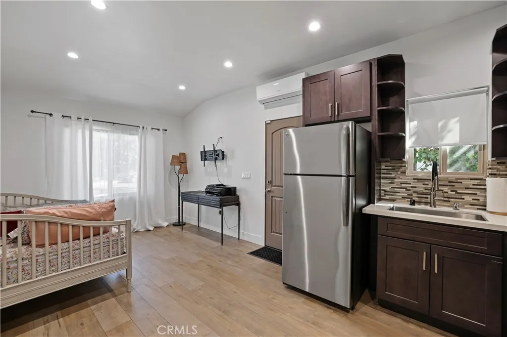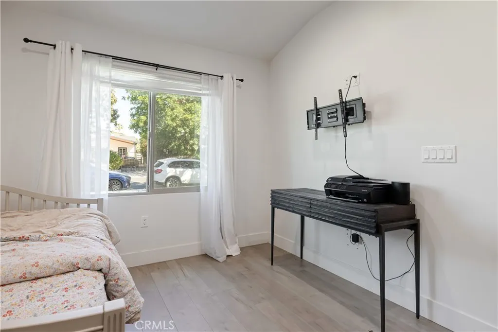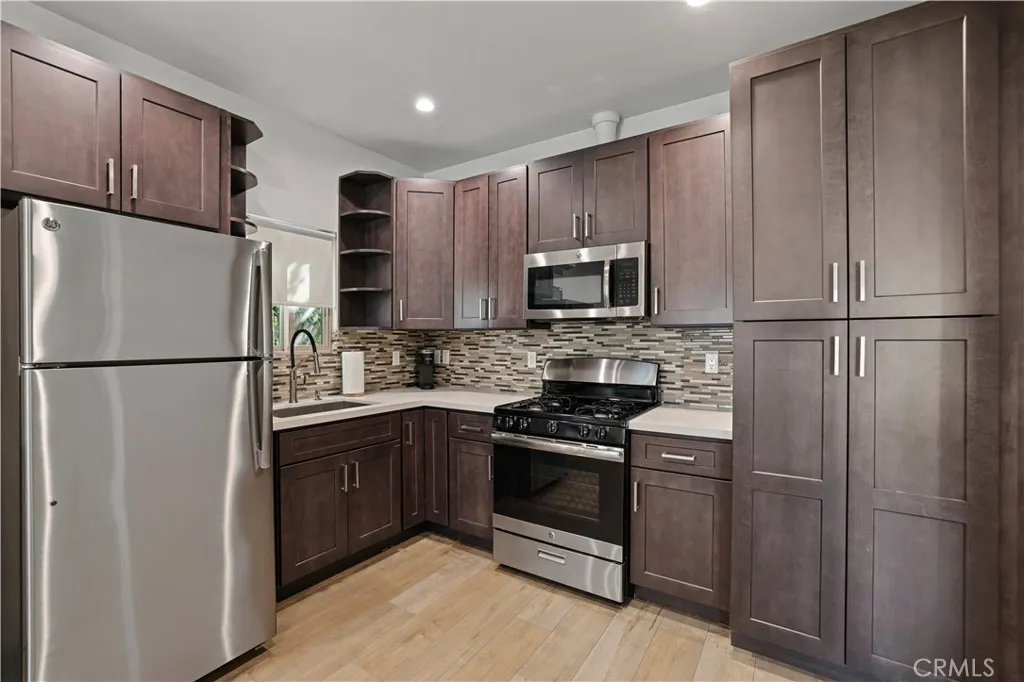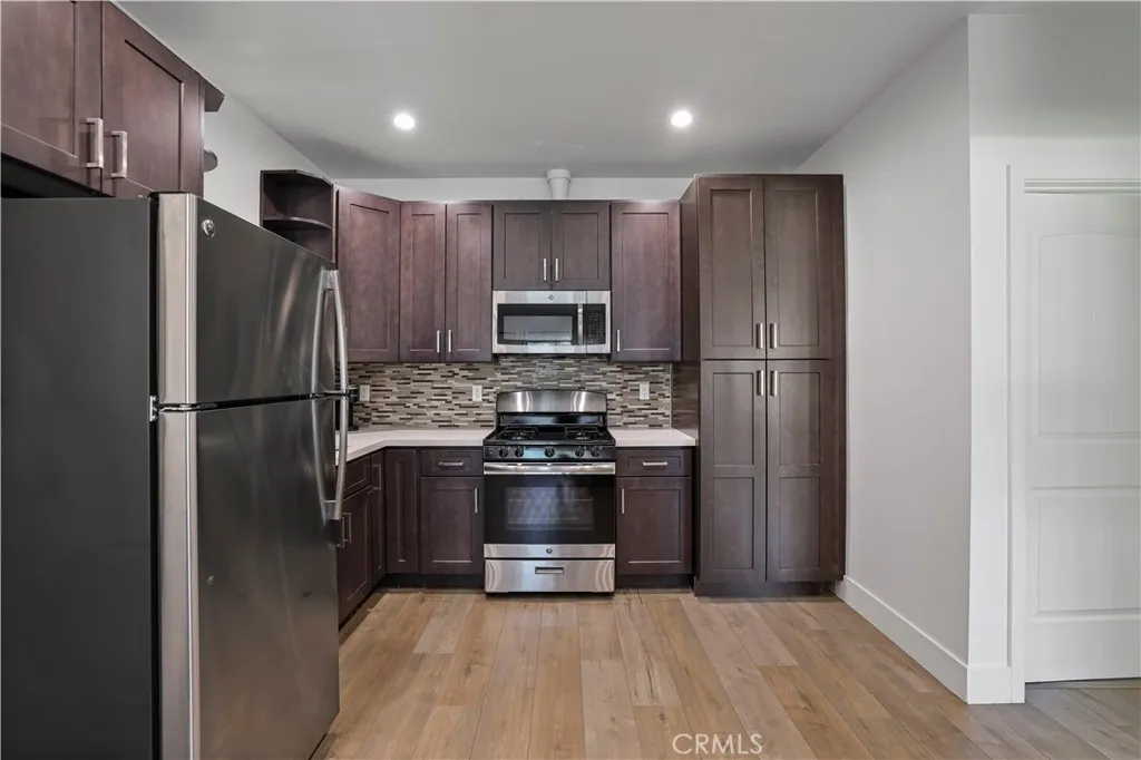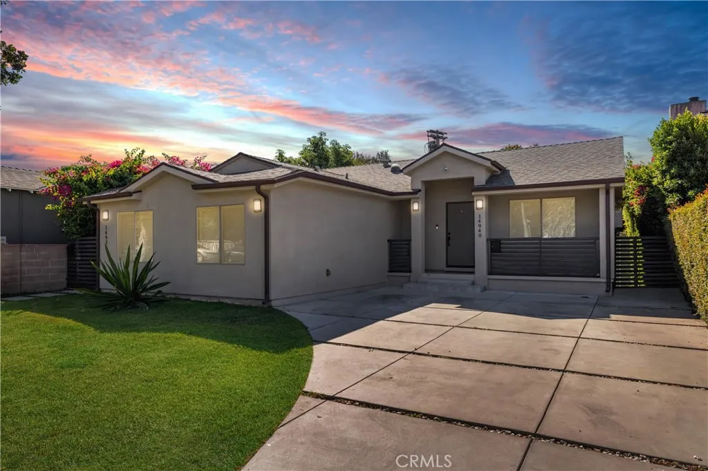 Step into this beautifully upgraded single-family home designed for modern family living complete with a fully permitted 1 bedroom, 1 bathroom ADU featuring a private entrance, its own address, and separate meter. Whether youre looking for space to grow, multigenerational flexibility (no stairs), or rental income potential, this home checks every box. The main residence offers 3 bedrooms, a stylishly remodeled bathroom, and a generously sized primary suite offering a peaceful escape with a walk-in closet, custom accent wall, and a private full en-suite bathroom, and plenty of room to relax. Enjoy everyday comfort and high-end touches throughout: dual hanging closets, custom lighting, recessed LED fixtures, top-grade laminate flooring, and a dedicated dining area with a separate living room - both featuring elegant custom accent walls. The chefs kitchen is a standout with Caesarstone countertops, tile backsplash, stainless steel appliances, and soft-close cabinetry. This home has been meticulously maintained and thoughtfully upgraded with a newer roof, updated copper plumbing and electrical, tankless water heater, custom dual pane windows, and a newer HVAC system. Outdoors, the covered patio with soaring ceilings is perfect for weekend BBQs or evening gatherings. The large grassy backyard is ideal for playtime or adding a pool, and includes a storage shed, lovely landscaping, and automatic sprinklers. The driveways modern concrete and grass design and smooth stucco exterior elevate the homes curb appeal. The separate ADU is ideal for extended family or rental income featur