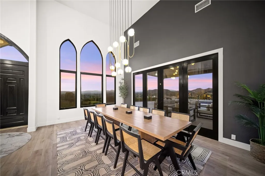 Chateau Evie James is a must-see hilltop estate in the heart of Temeculas famed Wine Country. Set on over 5 acres with panoramic vineyard and valley views, this fully remodeled 5-bedroom, 4-bath residence offers the perfect blend of luxury, comfort, and turn-key convenience. Inside, discover a thoughtfully reimagined floorplan with expansive dining and living spaces, brand-new flooring, and oversized view windows that flood the home with natural light. The chefs kitchen is a true showpiece, featuring quartz countertops, custom cabinetry, an 8-burner gas stove, wine cooler, coffee bar, banquette seating, and under-drawer microwave, ideal for entertaining or everyday living. Every bathroom has been beautifully updated, with the primary suite boasting a spa-like retreat with a freestanding soaking tub and designer finishes. Additional highlights include: A fully converted game room with mini split, arcade games, and shuffleboard Two new AC units with Nest thermostats Laundry room with two washers and dryers (included) Designer lighting and an electric fireplace. Step outside to your own private resort: a sparkling new pool and spa, covered patio, BBQ island, bocce ball court, tiled patio spaces, and lush landscaping with smart irrigation. Whether enjoying a quiet morning coffee or hosting unforgettable gatherings, every moment is framed by absolutely amazing views! Offered fully furnished, this estate is move-in ready and perfectly suited as a full-time residence, vacation home, or high-end short-term rental investment. Just minutes from world-class wineries, dining, and eques