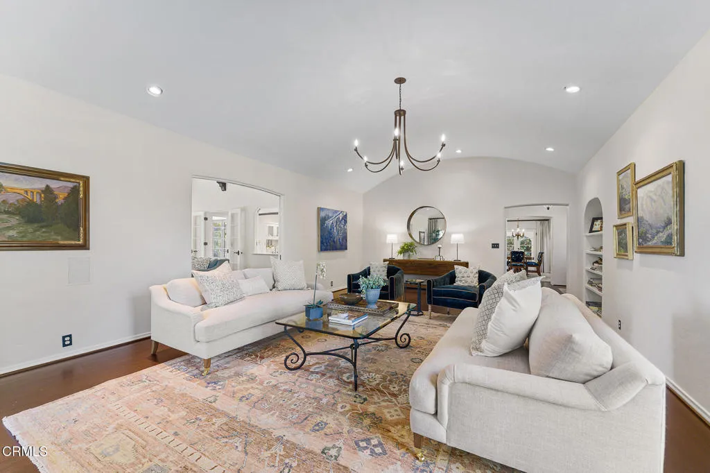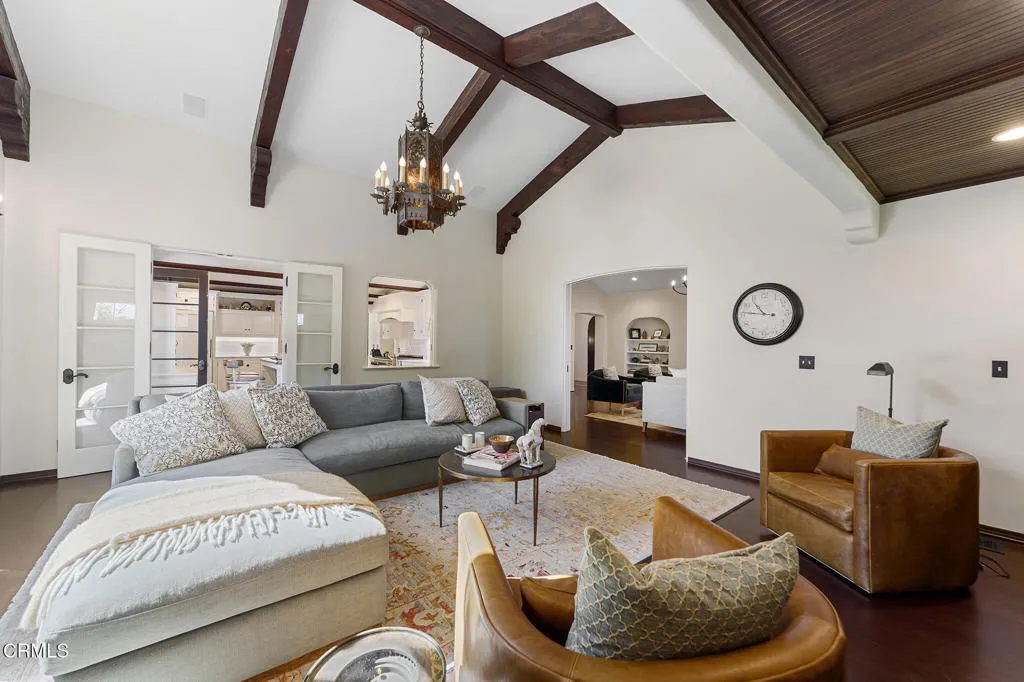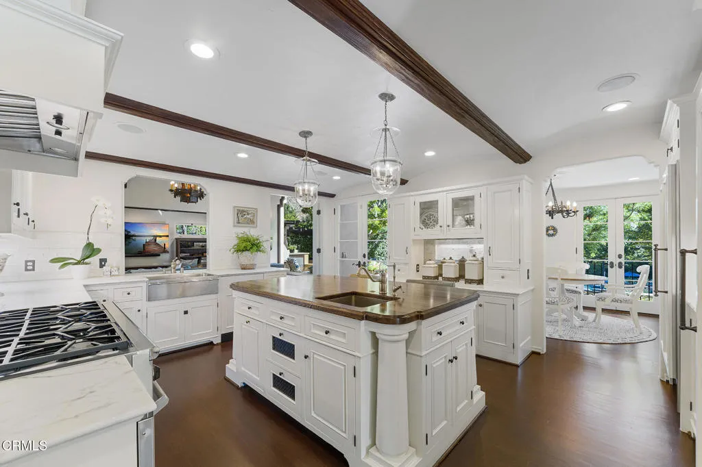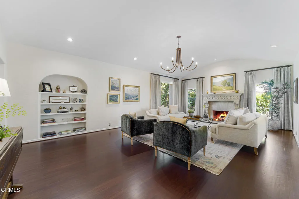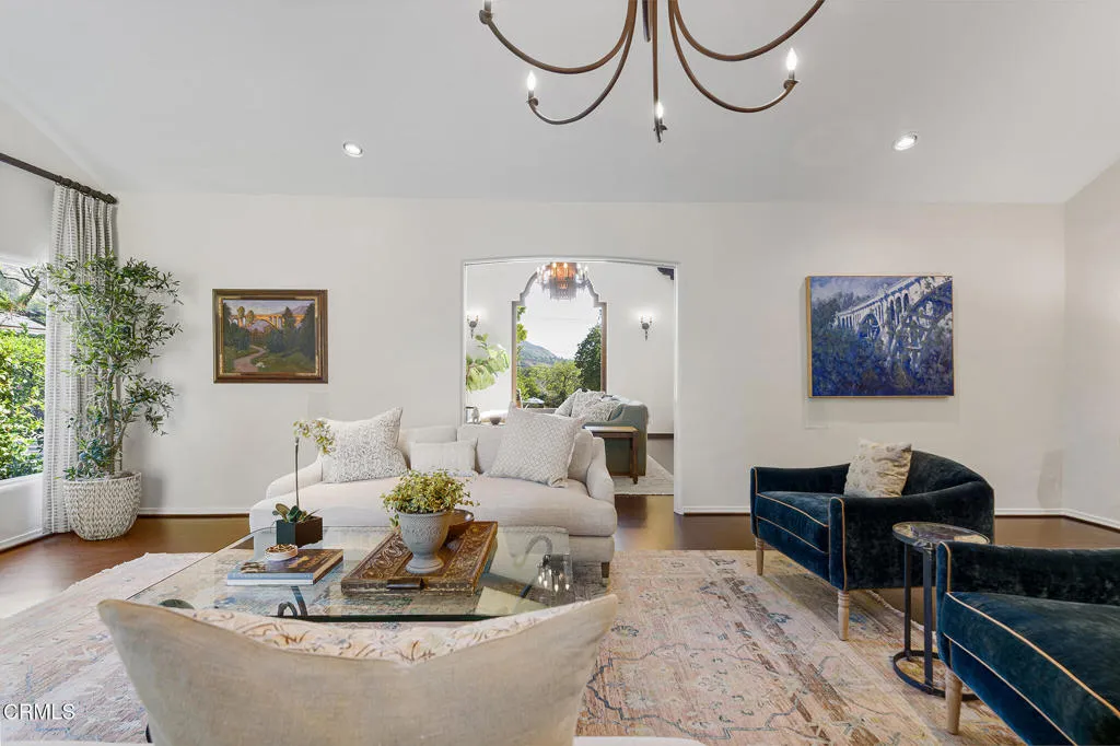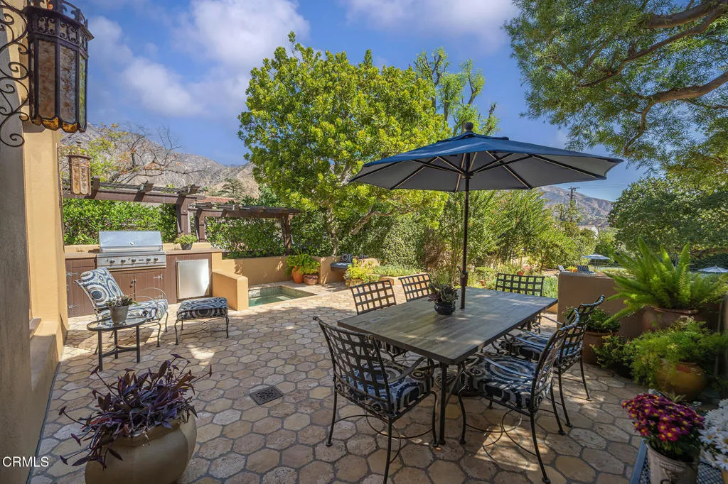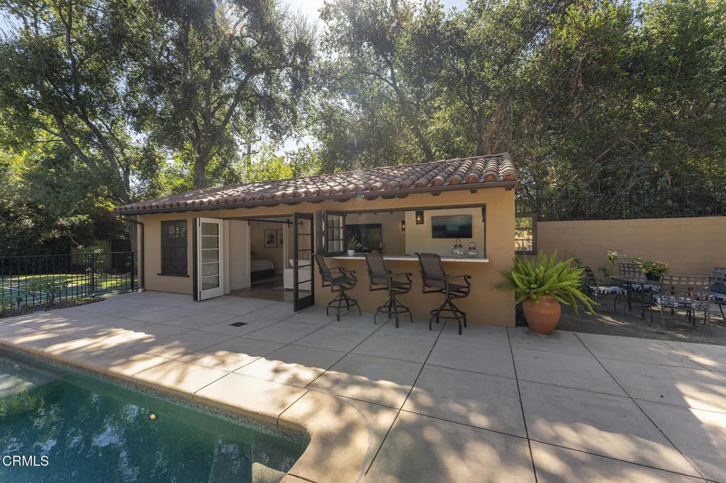 This exceptional 1927 Spanish revival estate is truly one of Altadena's most remarkable properties, offering resort-style living on the highly sought-after Midlothian Drive. Thoughtfully updated by the current owners with impeccable attention to detail and quality craftsmanship, this home seamlessly blends timeless architecture with modern luxury. The main house includes 4 spacious bedrooms with 4 full baths, including a steam shower in the primary bath. The formal living room features a gorgeous fireplace, large picture windows, and built-in bookshelves. Built for large-scale entertaining, the formal dining room showcases French doors and built-ins, all illuminated by a stunning vintage wood-carved chandelier. The heart of the home is the elegant chef's kitchen, featuring marble counters, a walnut center island, Sub-Zero refrigerator and Sub-Zero freezer, Dacor stove, wine refrigerator, and new Miele dishwasher. Enjoy your morning coffee in the separate breakfast room, offering a lovely view of the yard and mountains. The family room features a high-beamed ceiling, built-in bookshelves, and an impressive picture window with breathtaking views of the landscaped rear yard. That's just the main house! Your overnight guests will want for nothing in the 1 bedroom, 1 bath guest house, outfitted with stunning finishes and two Zephyr refrigerators next to the Fisher and Pakel two-drawer dishwasher. French doors and windows open completely to take in the lush landscaping of the rear yard. The property also includes a bonus room/office attached to the rear of the garage featuring tw