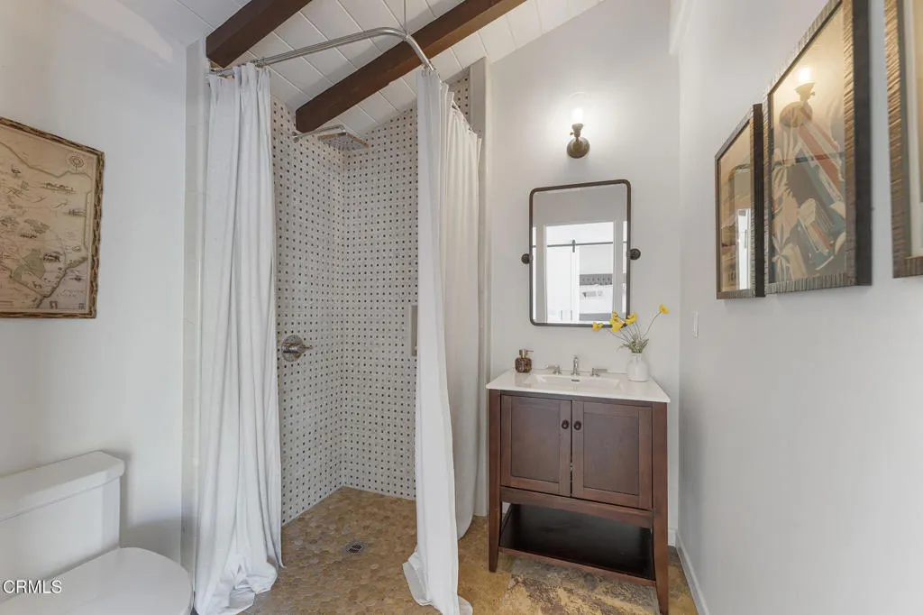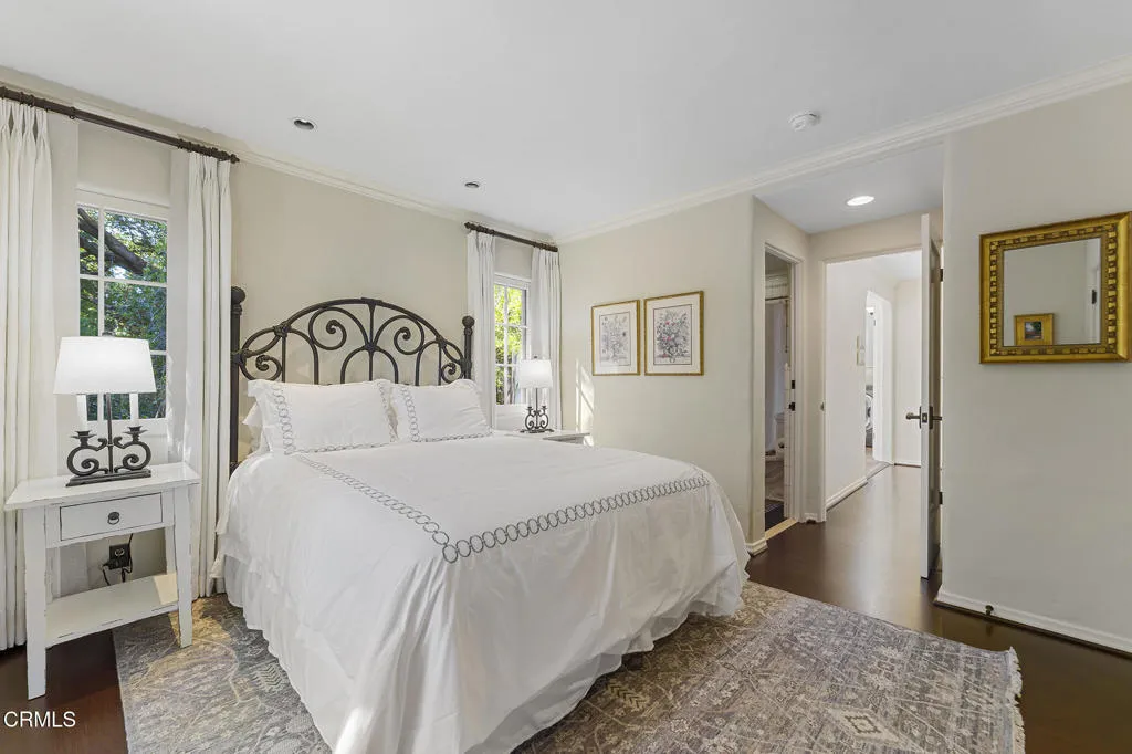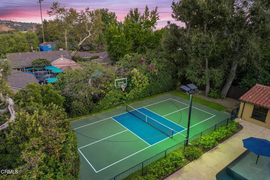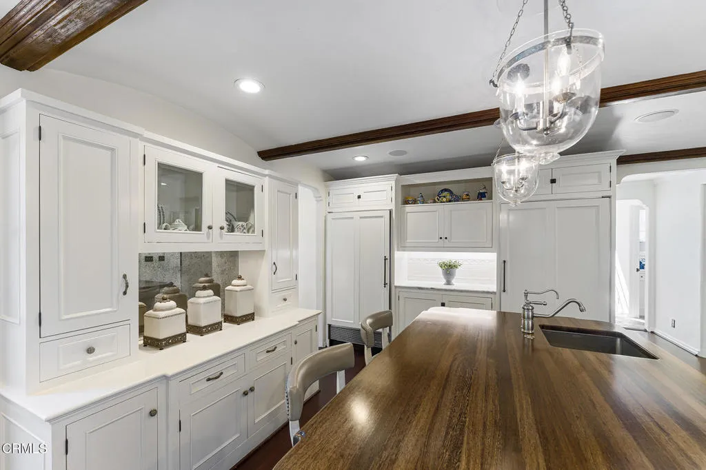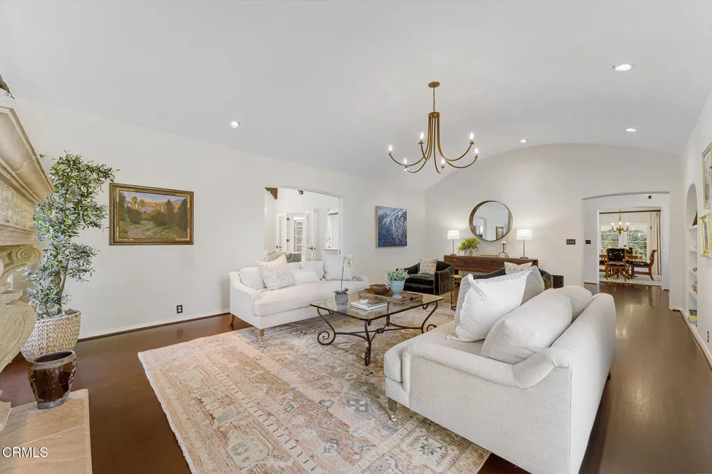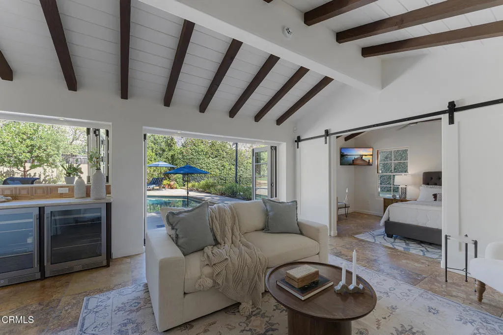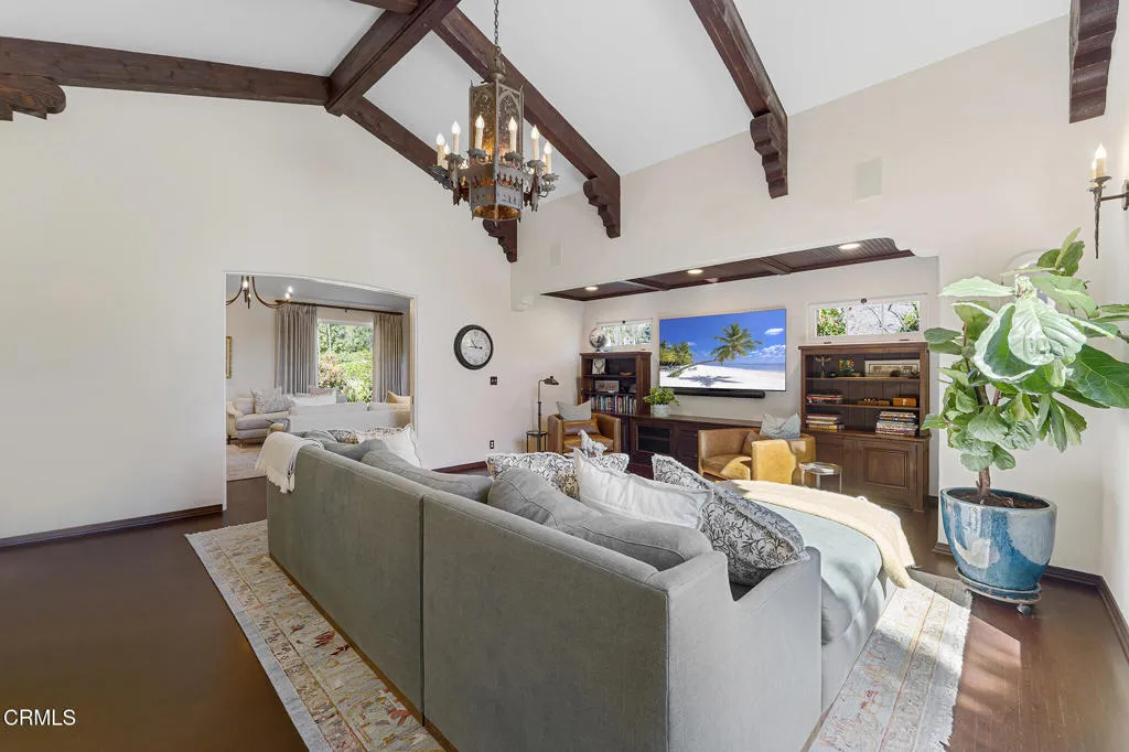 This exceptional 1927 Spanish revival estate is truly one of Altadena's most remarkable properties, offering resort-style living on the highly sought-after Midlothian Drive. Thoughtfully updated by the current owners with impeccable attention to detail and quality craftsmanship, this home seamlessly blends timeless architecture with modern luxury. The main house includes 4 spacious bedrooms with 4 full baths, including a steam shower in the primary bath. The formal living room features a gorgeous fireplace, large picture windows, and built-in bookshelves. Built for large-scale entertaining, the formal dining room showcases French doors and built-ins, all illuminated by a stunning vintage wood-carved chandelier. The heart of the home is the elegant chef's kitchen, featuring marble counters, a walnut center island, Sub-Zero refrigerator and Sub-Zero freezer, Dacor stove, wine refrigerator, and new Miele dishwasher. Enjoy your morning coffee in the separate breakfast room, offering a lovely view of the yard and mountains. The family room features a high-beamed ceiling, built-in bookshelves, and an impressive picture window with breathtaking views of the landscaped rear yard. That's just the main house! Your overnight guests will want for nothing in the 1 bedroom, 1 bath guest house, outfitted with stunning finishes and two Zephyr refrigerators next to the Fisher and Pakel two-drawer dishwasher. French doors and windows open completely to take in the lush landscaping of the rear yard. The property also includes a bonus room/office attached to the rear of the garage featuring tw