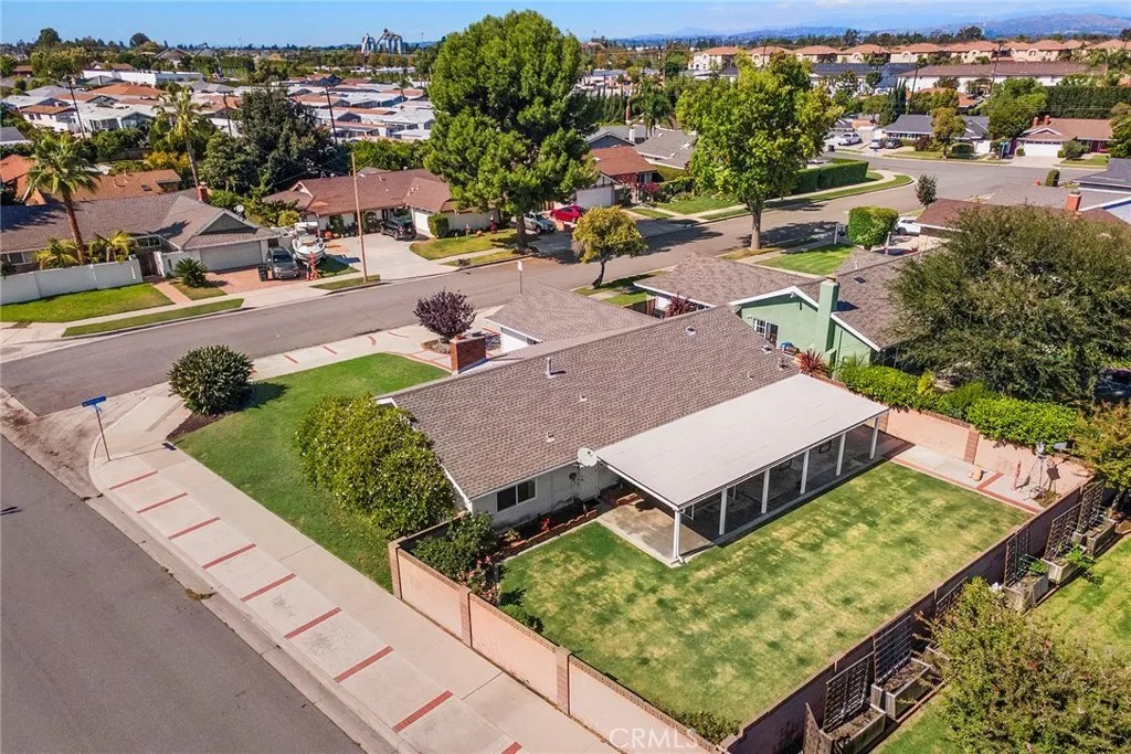 Fantastic Single-Story w/ NO interior steps on a Huge Corner Lot in a Beautiful, North Orange Neighborhood! This spacious 4 Bedroom 2 bath home has lots of recent upgrades including Newer Milgard Windows and Slider, PEX Plumbing, Newer Roof, PLUS Brand NEW AC Unit and Fresh Paint! Step into this mid-century charmer featuring an extra large living room with a brick fireplace, perfect for entertaining. The cute country Kitchen flows into the spacious Dining Room with beautiful oak built-ins and direct access to the manicured back yard. Enjoy family get-togethers under the huge solid covered patio or relax while bird watching in the evenings. The primary suite is totally separate from the other 3 bedrooms for a little peace and quiet after a busy day with the kids! Laundry day will feel like a breeze with your very own indoor laundry room. 2 car garage and expansive front yard is the icing on the cake! **This Home is located in the TOP Rated Villa Park High School area.**