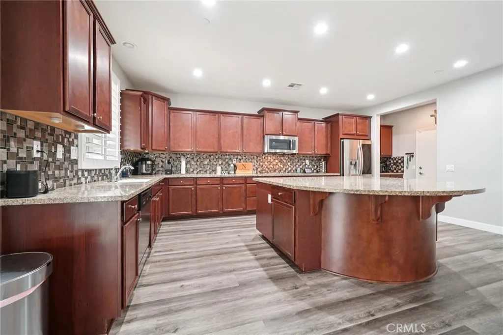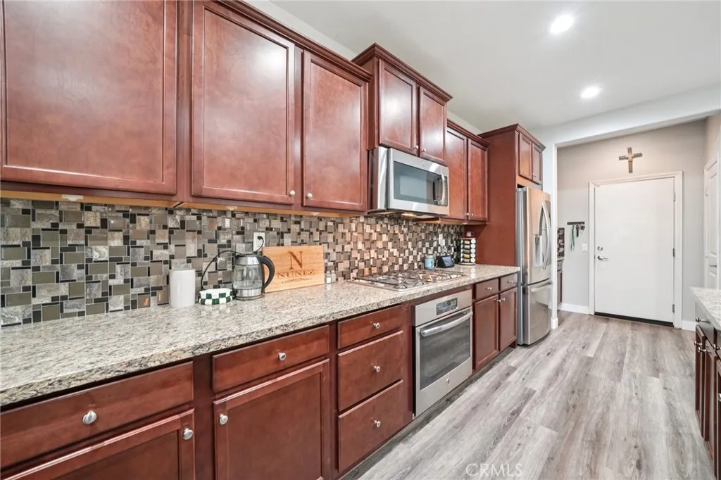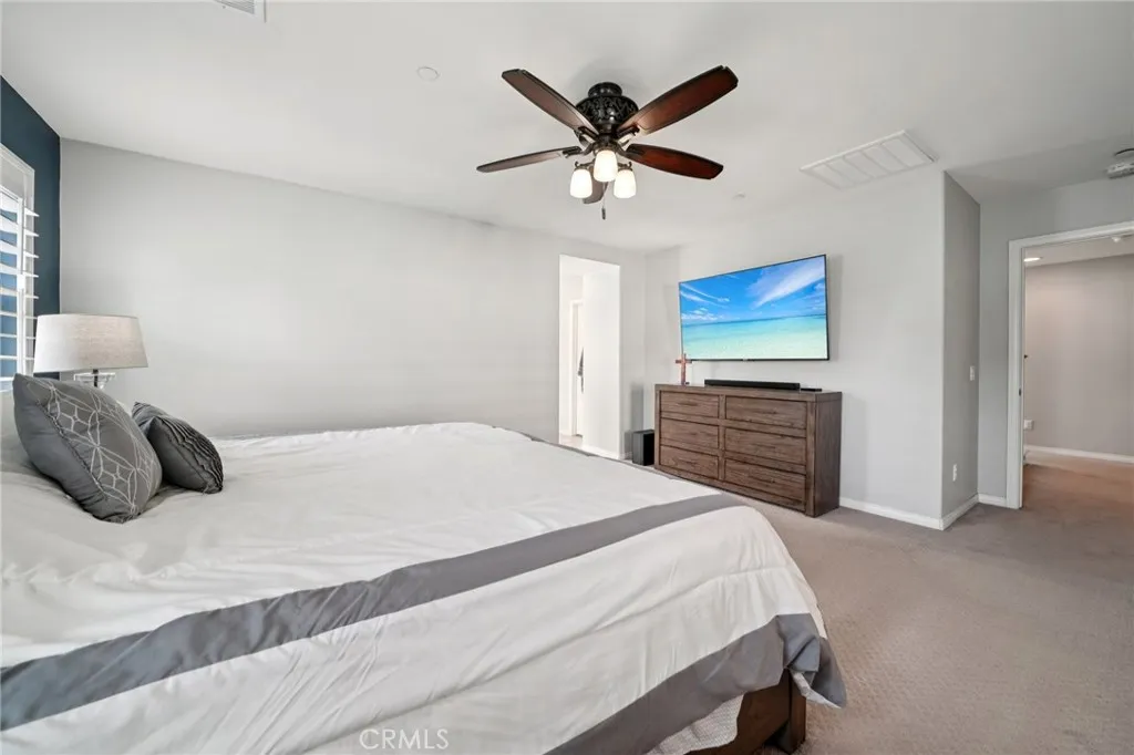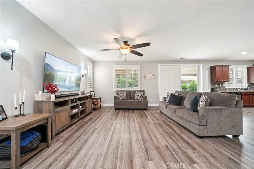 Welcome to your dream home! This beautifully maintained property is situated in a sought-after Eastvale community with low HOA fees. Nestled in a quiet cul-de-sac, this home boasts 4 spacious bedrooms and 3.5 bathrooms, perfect for comfortably. As you step inside, you'll be greeted by an open floor plan that seamlessly connects the kitchen, family room and dining area-ideal for entertaining and family gatherings. The ample sized kitchen features a cozy nook, perfect for family meals. The Master Bedroom retreat is a true sanctuary, complete with a luxurious bathroom, a walk-in closet, and private balcony to enjoy fresh air. Enjoy the upgraded wood flooring, upgraded baseboards and planation shutters throughout enhancing both style and comfort. Upstairs you'll find a mini suite bedroom with its own bathroom, along with a convenient laundry room and three well sized bedrooms. Step outside to your beautifully landscaped backyard, featuring a fire pit, patio cover and ceiling fan, stamped concrete-an inviting space for outdoor entertaining and relaxing. Gas line connections in backyard to easily install outside barbeque island. The garage is equipped with proxy seal flooring and ceiling shelfs for plenty of storage, along with a split ac unit for a perfect mancave, workshop, or gym, complemented by a tankless water heater for efficiency. Conveniently located near top rated schools, shopping, and an internation airport, making it ideal for both leisure and commuter needs. Don't miss this opportunity to make this exceptional property yours before the holidays! See you in escrow!