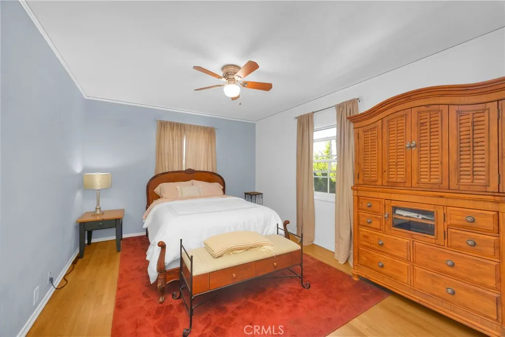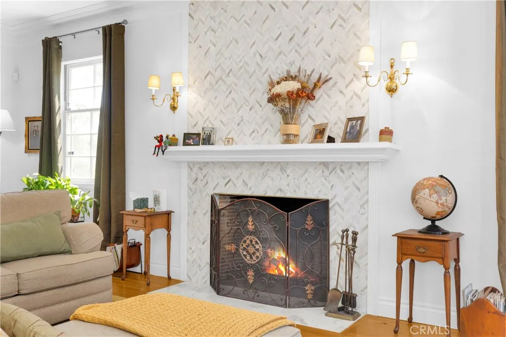 Welcome to 929 East Marshall Place, a distinguished two-story Colonial Revival nestled in the heart of Bixby Knolls. Offering five bedrooms, four bathrooms, and 3,100 square feet of updated living space, this residence seamlessly blends timeless architecture with modern comforts. The homes curb appeal is undeniable with its symmetrical faade, landscaped grounds, and brick walkway leading to an arched entry create an inviting first impression. Inside, a grand foyer welcomes you with hardwood floors, intricate moldings, and an elegant iron staircase, setting the stage for sophisticated yet livable interiors. The main level features expansive formal living and dining rooms, highlighted by a herringbone-tiled fireplace, custom lighting, and French doors that open to the lush backyard. The remodeled kitchen pairs sage cabinetry with quartz countertops, stainless steel appliances, and a charming garden window. A versatile sunroom with terracotta tile floors and direct outdoor access provides additional space for relaxation or entertaining. Two first-floor bedrooms, including one with an ensuite bath, offer flexibility for guests, an office, or multi-generational living. Upstairs, the primary suite serves as a private retreat with French doors opening to a balcony, a spacious walk-in closet, and a spa-inspired ensuite with dual vanities and a soaking tub. Two additional bedrooms and a flexible landing area, perfect as a reading nook or gallery wall round out the upper level. Throughout, original details have been carefully preserved while bathrooms and finishes have been thoughtfu