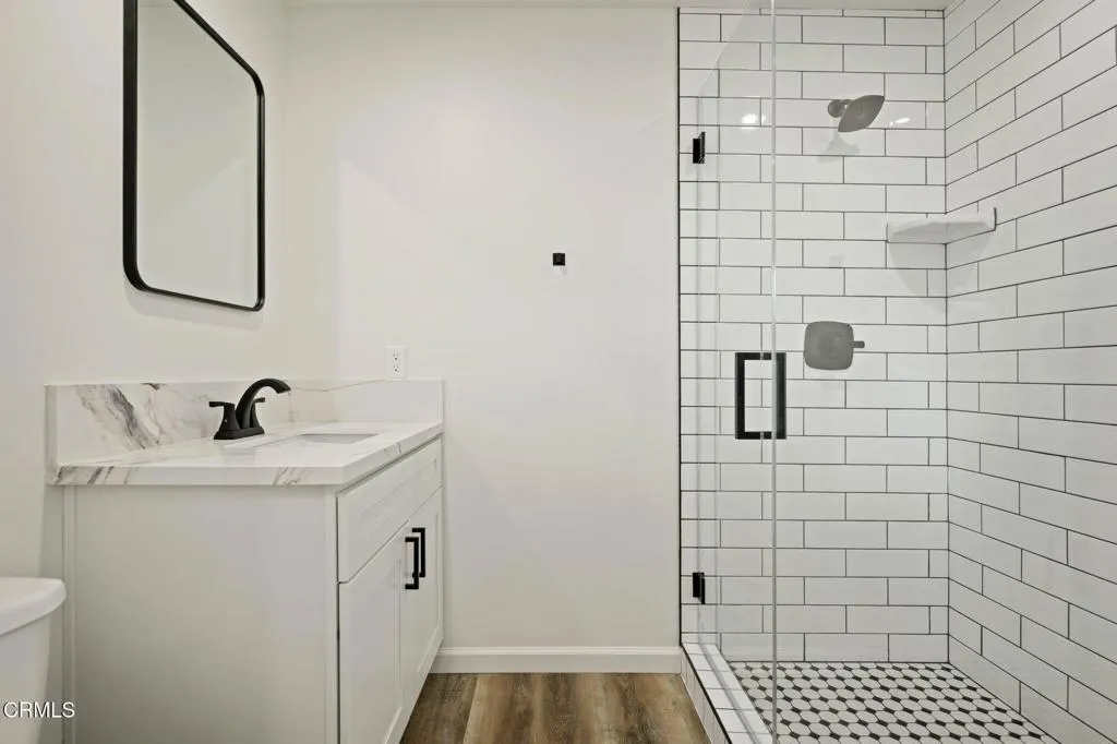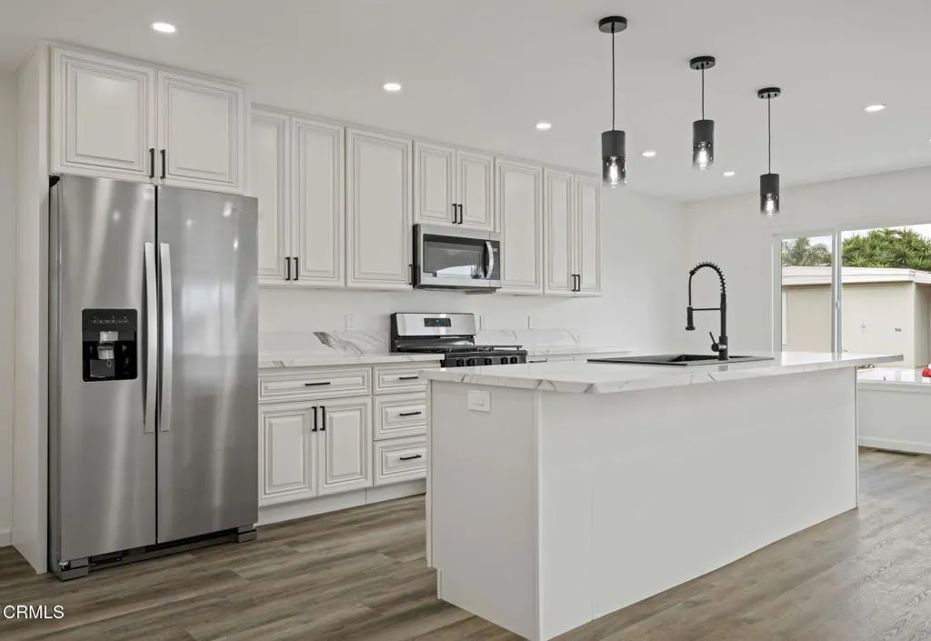Open concept remodel. Gorgeous complete remodel. 2bd/3bth TOTAL REMODEL. Everything new and excellent quality. Head to toe renovation. Spacious, new, comfortable and stunning. The pictures speak for themselves. New floors, drywall, windows, cabinets, sinks, showers, toilets, all new electrical / plumbing systems, showers, doors, quartz counters, kitchen island, hardware, tankless WH, paint, closet shelving, etc. etc. etc. Space rent to buyer = $2,075