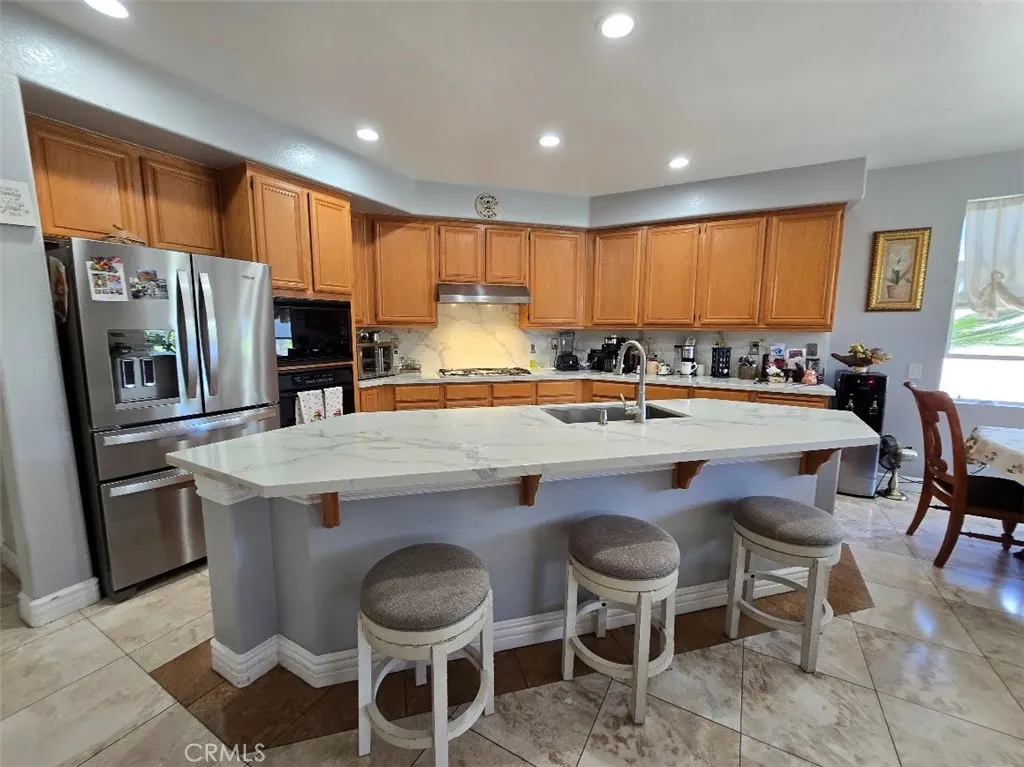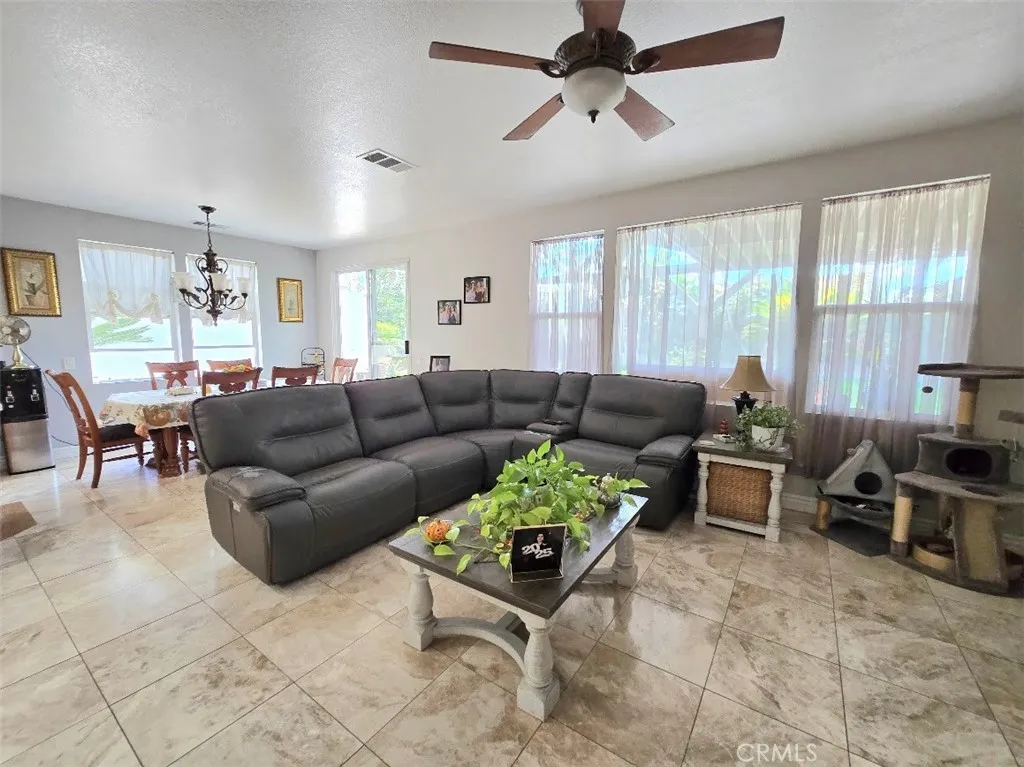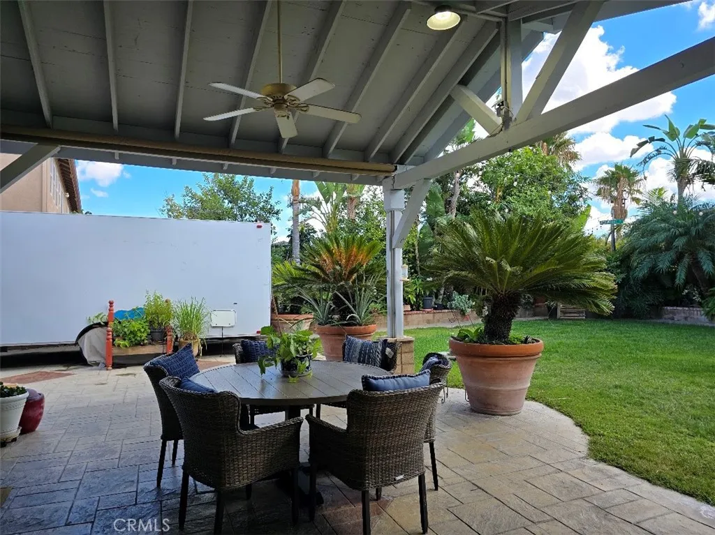 Welcome to your dream home where luxury, functionality, and fun come together in perfect harmony! This beautifully upgraded 6-bedroom, 4-bath residence offers nearly 3,604 sq. ft. of refined living space on a generous 11,065 sq. ft. lot with RV parking. Step through the double-door entry way into a grand space featuring high ceilings and an elegant formal living and dining room adorned with marble flooring throughout the first floor. The spacious kitchen has been tastefully remodeled with a white quartz island and matching backsplash featuring gold-veined accents, built-in microwave and oven, and a walk-in pantry. The laundry room is conveniently located behind the kitchen area and adds to the homes practicality. The inviting family room features a cozy fireplace, while the wood staircase with white risers leads to the second floor, where wood flooring continues throughout. The master bedroom offers a true retreat with access to a private deck featuring a retractable awning, dual vanities, a separate shower, whirlpool jetted tub, and a generously sized walk-in closet. There are four additional bedrooms on the second floor, as well as two bathrooms with one featuring a Jack-and-Jill layout. There is an additional bedroom with a full bath, perfect for guests or multi-generational living. Designed for entertaining and everyday enjoyment, the backyard oasis boasts an expansive covered patio with two ceiling fans, three motorized custom patio shades, block planters, and fruit trees that enhance both privacy and charm. The side yard also has enough space for RV access. A four-ca