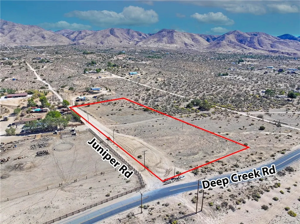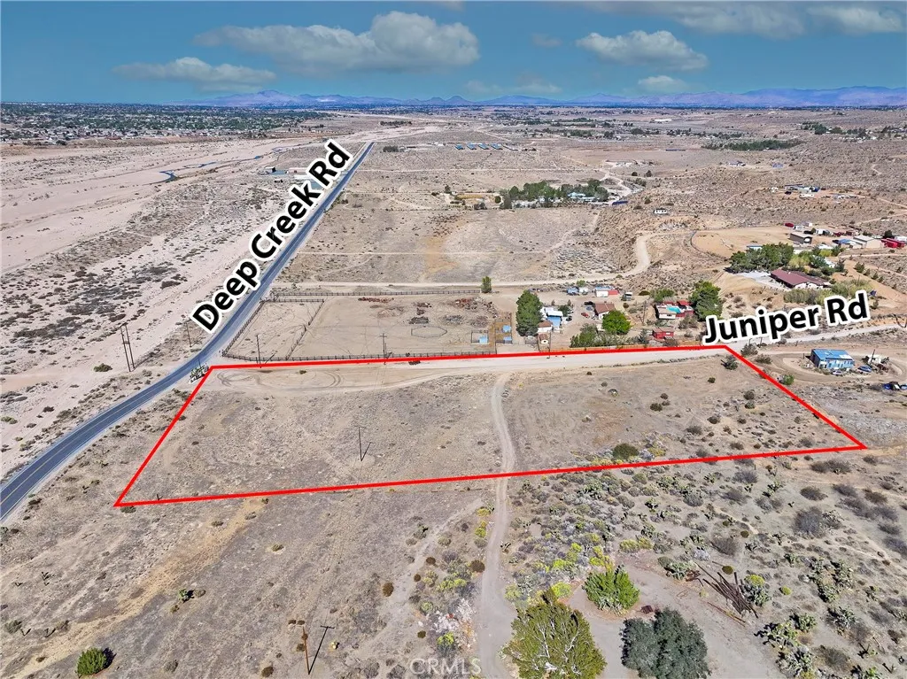 This exceptional 4.8 acre parcel of land offers a rare blend of privacy, panoramic views, and peaceful rural charm. Surrounded by established ranches and custom built homes, this property sits in a quiet, low-density area that feels worlds away from the bustle-yet remains conveniently accessible. Whether you are envisioning a custom estate, a private retreat, or a working ranch with horses and farm animals, this land is your perfect canvas. Utilities in street (buyer to verify) and a water well on property along with paved streets leading to the corner of Juniper. This parcel is ready for your future estate and several ADU units per County of San Bernardino