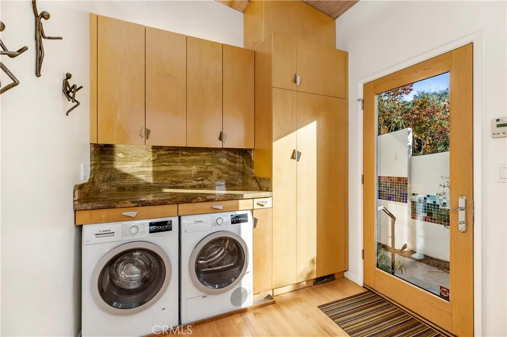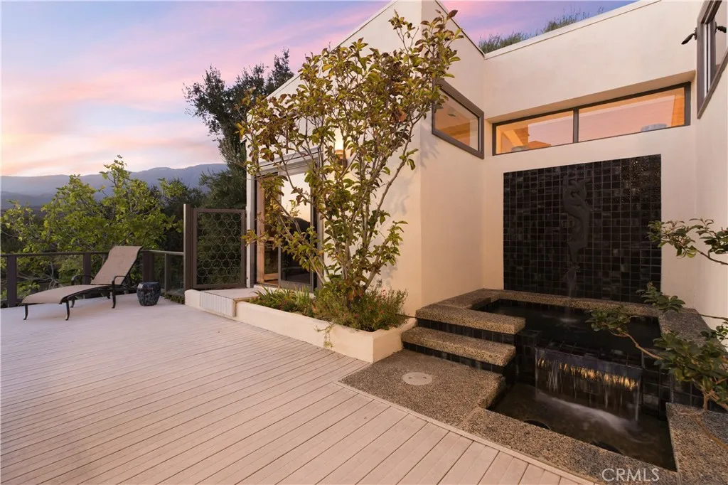 This architectural estate designed by Everett Tozier stands as one of Claremonts most remarkable residences. Elevated above the city, it showcases uninterrupted vistas across rolling hillsides, rugged mountain peaks, and twinkling valley lights. Every aspect of the grounds and residence has been designed to impress, with distinctive architectural style. Padua Hills was the heart of Claremonts art scene in the mid-20th century, making it fitting that this home is a true work of art. The approach is defined by an expansive gated courtyard where lush gardens frame a custom stained-glass entry door, offering an immediate sense of artistry and distinction. Inside, panoramic views draw you toward the back deck and nature beyond. The living room rises with vaulted wood-beamed ceilings and floor-to-ceiling glass, filling the space with natural light and breathtaking views. Custom cabinetry and a sculpted fireplace add warmth, while a built-in window nook captures the hillside setting in quiet reflection. The dining room provides an intimate setting for gatherings, complemented by a concealed wet bar and a picture window overlooking the courtyard garden. Adjacent lies the showpiece kitchen reimagined by Hartman Baldwinhonored as Kitchen of the Year by Remodel Magazine in 2004. It features Sub-Zero refrigeration, a built-in gas cooktop, and an oversized island that serves as both prep space and breakfast bar. A dramatic skylight crowns the room, while a tile mosaic backsplash and extensive cabinetry elevate its design and function. Just off the kitchen, a mudroom offers a tall wine r