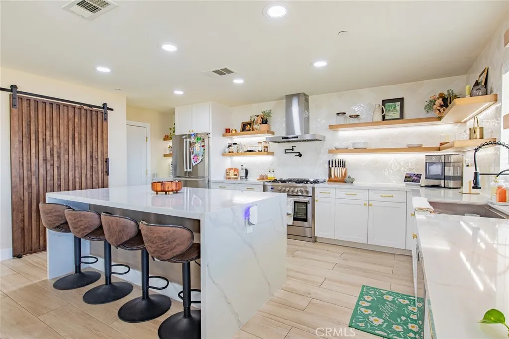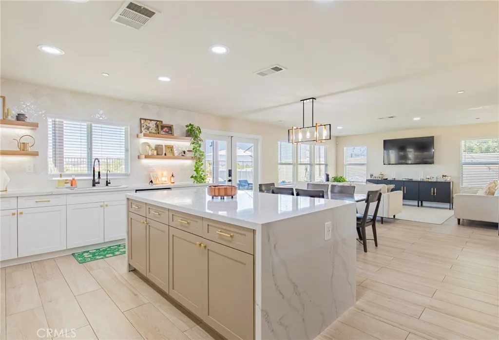This 2,376 sq. ft. home is filled with upgrades and thoughtful touches throughout, beginning with the stunning fully remodeled kitchenthe true heart of the home. Featuring quartz countertops, a striking full-wall white backsplash, floating wood shelves, gold hardware, stainless steel appliances, and a spacious waterfall island, this kitchen perfectly balances modern style and everyday functionality. The pantry is enhanced with a charming wood barn door for added character. The open-concept design connects the kitchen seamlessly to the dining and living areas, while the downstairs includes a versatile bonus roomideal for a home office or guest spaceplus a convenient guest restroom. French doors lead to a private backyard complete with an Alumawood patio cover and no rear neighbors. Upstairs, the primary suite offers a large walk-in closet, dual sinks, and a walk-in shower. A loft provides additional living space, and the creative converted playroom under the stairs adds a fun, unique touch. The home also includes 18 solar panels for energy efficiency and plenty of driveway parking.Situated in Monument Park with no HOA, this home is close to parks, schools, and shopping. Dont miss the recent price reduction and be sure to check out the new virtual tour!