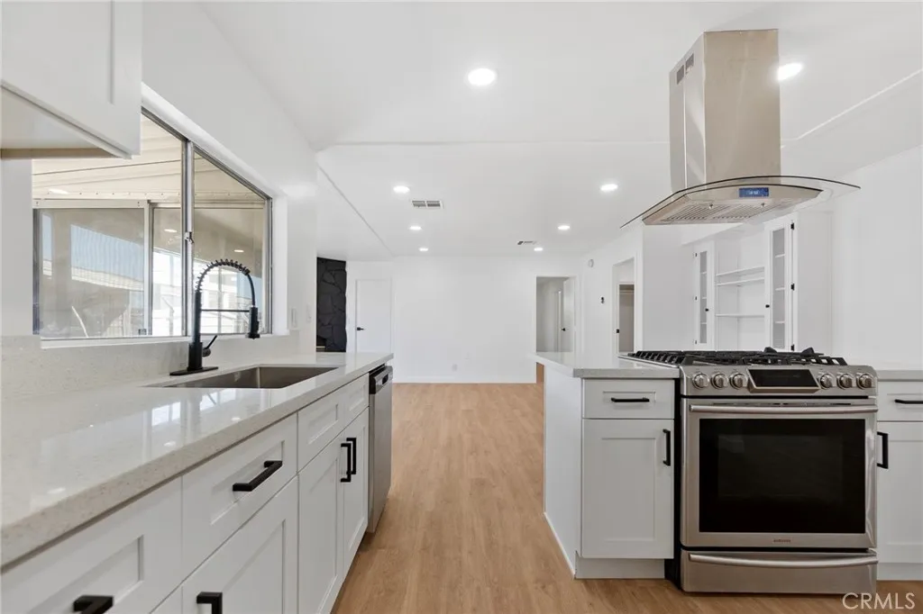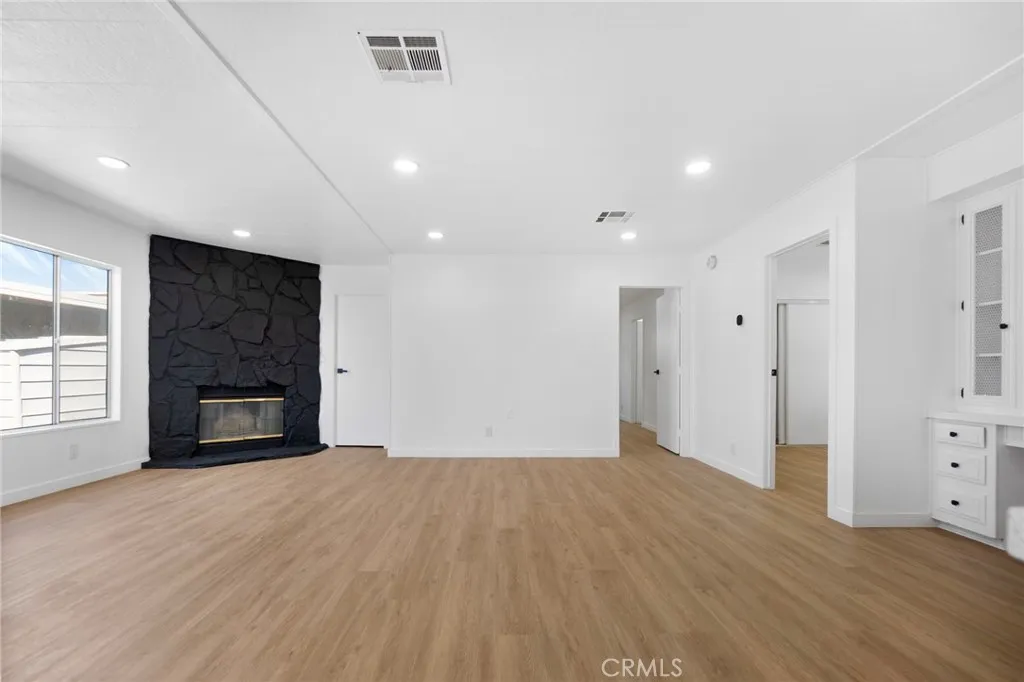 Welcome to this beautifully fully remodeled and spacious home offering over 2,000 sq. ft. of comfortable living space. Featuring two bedrooms and two full bathrooms, this property blends modern updates with a bright, open layout thats perfect for entertaining or everyday living. Step inside to a large living room that flows seamlessly into the formal dining area. The expansive family room is a true highlight - featuring a stunning decorative stone wood-burning fireplace, a built-in desk with cabinetry, and a massive walk-in closet for extra storage. A sliding glass door opens to the large covered front patio, creating an ideal space to relax and enjoy the breeze. The modern kitchen boasts a gas stove top, dishwasher, refrigerator, and a breakfast bar, perfect for casual dining and gatherings. The individual laundry room offers plenty of storage, counter space, and a pantry area, with convenient access to the side exit. The primary suite features a large wood-paneled walk-in closet and a luxurious en suite bathroom with custom cabinetry, double sinks, a vanity area, a walk-in shower, and a separate soaking tub for ultimate comfort. Located in a prime area close to shopping, restaurants, churches, and the new Groves Center, everything you need is just steps away. This move-in-ready, fully remodeled home is a rare find - come see it today!
