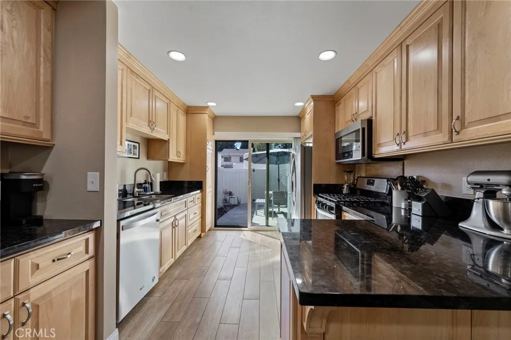 This spacious and meticulously updated 2-bedroom home offers tons of modern comfort and style, along with 1.5 beautifully updated bathrooms with contemporary fixtures and finishes. The home was recently remodeled to include a half bathroom off the master bedroom, creating a convenient master suite, in addition to the full bathroom. Both bathrooms are meticulously updated with Arizona tile flooring and shower and Kohler and Delta appliances. The stunning kitchen boasts plenty of features that were all installed in 2021, such as: updated solid wood cabinetry with elegant hardware, sleek granite countertops, and high-end appliances such as the stove, microwave and dishwasher. This is all complemented by recessed lighting and a large high quality glass slider door to the private patio backyard, allowing in a flood of natural afternoon light. The open-concept layout of this beautiful home features high-end wood laminate flooring throughout, installed in 2021. Both bedrooms are spacious, with floor-to-ceiling mirror slider doors for the ample closet space, and real pine baseboards. The home has a high-end smart climate control system connected to the newer furnace and air conditioning unit, plus, there is an attic fan system for quick, efficient cooling when you get home on those hot summer days. Outside the glass slider door, the spacious and private patio backyard provides a serene retreat for relaxation or gatherings. This yard connects to the spacious 2-car garage which includes convenient laundry facilities, adding to the homes functionality. Here you will find the water hea
