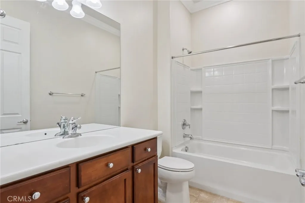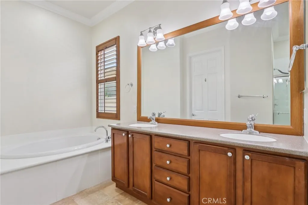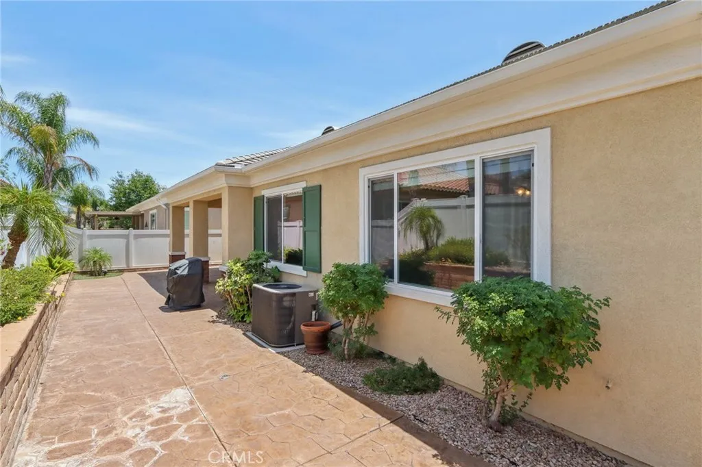 Step into elevated living in the heart of Solera Diamond Valley by Del Webb, one of the regions premier 55+ communities. This thoughtfully upgraded residence is a rare find, offering elegant design, high-end finishes, and a seamless indoor-outdoor lifestyle. Every detailfrom the lush landscaping to the custom interior toucheshas been curated for both comfort and sophistication. From the moment you arrive, youll be captivated by the gorgeous professional landscaping, including a mature tree in the front parkway, and a welcoming security screen front door that opens to a glass inlay front door, creating a warm and inviting entry. Step inside to discover plantation shutters, crown molding, and gorgeous upgraded flooring that flow seamlessly throughout the open-concept layout. The living room features a cozy fireplace, a custom built-in, and direct access to a versatile office space complete with a built-in desk and bookcasesideal for remote work or quiet hobbies. The chefs kitchen is a standout, boasting granite countertops on the island, bar top, and work surfaces, white cabinetry, and an elegant tile backsplash. Upgraded fixtures enhance both style and function throughout the home. Retreat to the spacious primary bedroom suite, offering ample room to relax. The en-suite bath includes a step-in shower, a soaking tub, and a walk-in closet with custom built-in shelving, delivering the perfect balance of luxury and practicality. Additional highlights include a laundry room with extra storage cabinetry and a utility sink, ideal for added convenience. Enjoy the Southern California