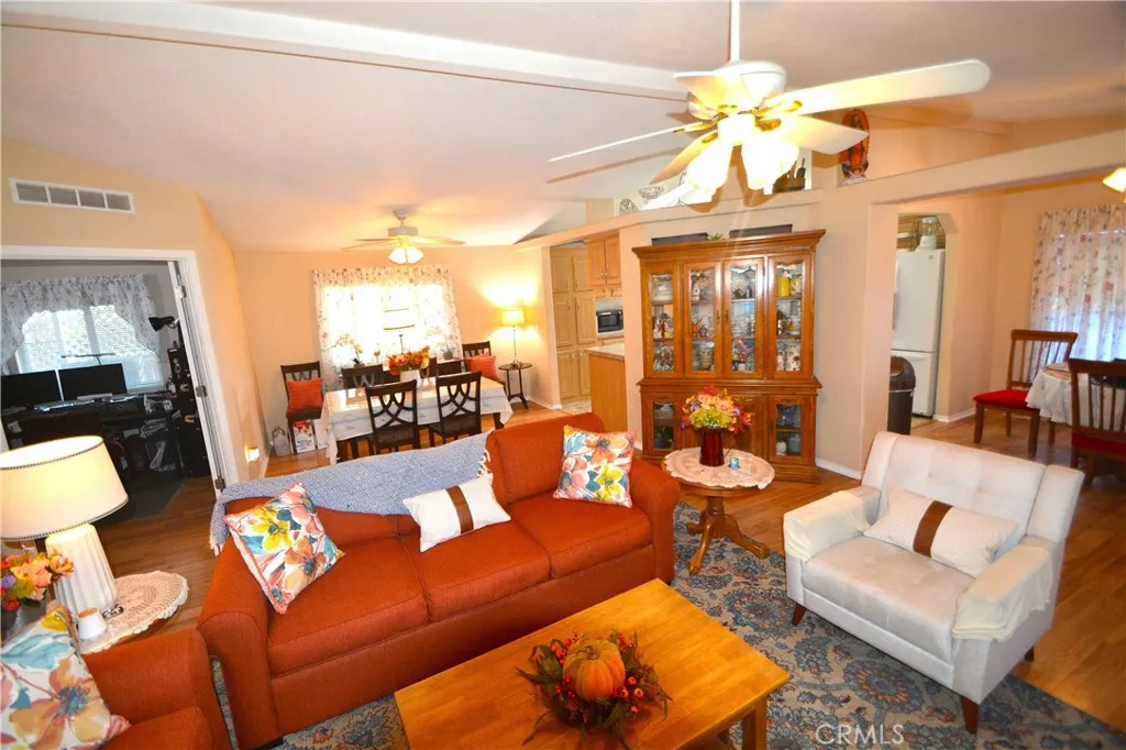 Welcome to this beautifully maintained 2-bedroom, 2-bath mobile home, plus a den/office that can be used an additional guest room! This home offers comfort, style, and easy living in one of the areas most sought-after 55+ communities " The Lakes at Hemet West". Step inside to find a bright, spacious living room with a cozy fireplace.The Dining area is perfect for entertaining or relaxing. Prepare your meals in the beautiful kitchen with plenty of cabinets. Both bedrooms are generously sized, with the primary suite featuring an en-suite bathroom and ample closet space. Enjoy your mornings or evenings on the covered patio, ideal for quiet relaxation. Every detail has been cared for, making this home move-in ready and truly immaculate. The community amenities include a clubhouse, swimming pool, golf course, a scenic lake, covered BBQ area providing endless opportunities for recreation and social activities. Experience the best of active adult living in this pristine home.
