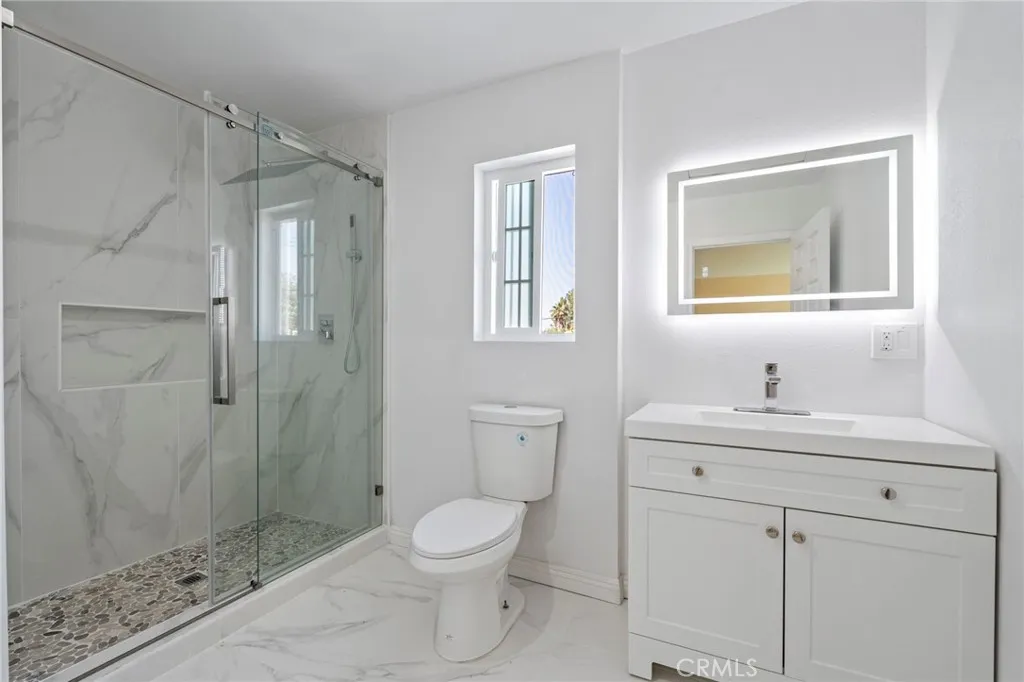 Discover this beautifully remodeled tri-level home in sought-after Granada Hills, offering the perfect blend of modern elegance and family comfort. Boasting 5 spacious bedrooms and 3 updated bathrooms across 2,769 square feet, this residence sits on an expansive nearly 7,500 square foot lot. The inviting living room welcomes you with soaring vaulted ceilings, wood-style flooring throughout, and a charming wood-burning fireplace, seamlessly flowing to a formal dining area highlighted by a custom chandelierideal for hosting memorable gatherings. The contemporary kitchen is a chefs dream, featuring crisp white cabinetry, quartz-style countertops, stainless steel appliances, and a sunlit breakfast nook overlooking the backyard. Upstairs, the luxurious primary suite showcases a remodeled en-suite bath with high-end finishes, modern fixtures, and a walk-in closet, while additional bedrooms and a remodeled hall bath offer flexibility for family, guests, or a home office. Downstairs, an extra-large bedroom with an adjacent full bath is perfectly suited for guests or multi-generational living. Step outside to a private backyard oasis with a spacious tiled patio, wood cover, mature fruit trees, and ample room for entertaining, gardening, or relaxation. Completing this ideal package is a three-car garage with abundant storage, plus easy access to shopping, dining, and transportation. Experience modern comfort, space, and stylemake this move-in ready home yours today!