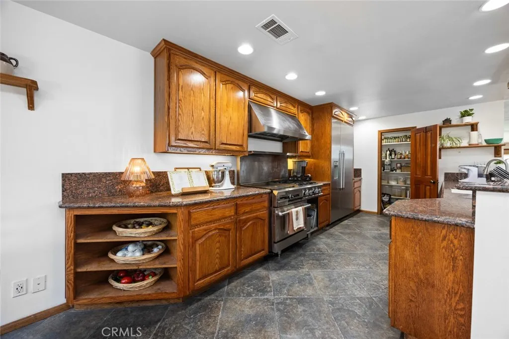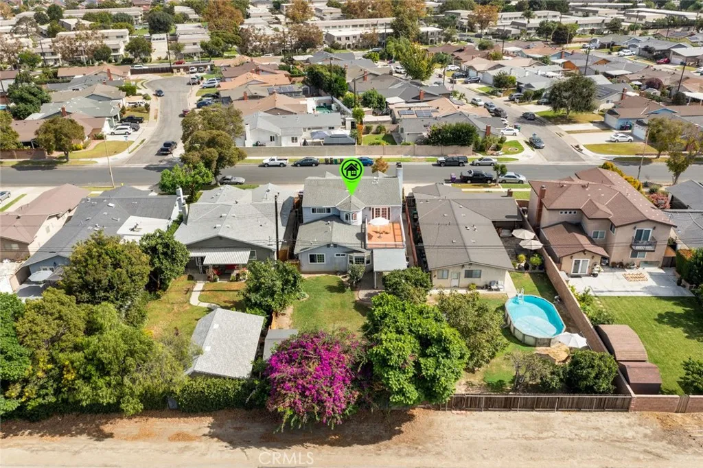 Must see! This very spacious 2-story home has 5 bedrooms, 3-1/2 baths, a bonus room/office and 2 separate AC/heating systems (downstairs and upstairs) along with 2 Primary bedrooms. It has a tankless water heater and copper plumbing. There are upgraded building materials including 3/4 inch solid exotic Kempas wood flooring, custom wood-built library bookshelves, upstairs Primary bath cabinetry and kitchen custom cabinetry. All windows are Milgard vinyl framed with wood window sills. The kitchen has granite counters with porcelain tile flooring, built in refrigerator, built in stove/range and a walk-in pantry. All interior doors are solid fir with 4 panels and Baldwin solid, oil-rubbed bronze door knobs. The upstairs Primary bedroom has vaulted ceilings, dual walk-in closets and a library (with fireplace). The upstairs Primary bathroom has Travertine stone, a double sink with granite countertops and an open shower with double shower heads. There is a large private balcony with Terracotta tile connected to the Primary bedroom. The downstairs bathrooms have ceramic tile. Two of the downstairs bedrooms have walk-in closets. The spacious backyard (7,884 Sq Ft) is perfect for entertaining and has a gate with direct access to the bike trail, which is a 6-mile ride to Seal Beach. Backyard trees include: lemon, apple, avocado, apricot and orange as well as an artichoke bush. Additionally, there is a large shed with barn doors. The home is located within the ABC school district with access to Whitney High School and is close to parks and shopping.