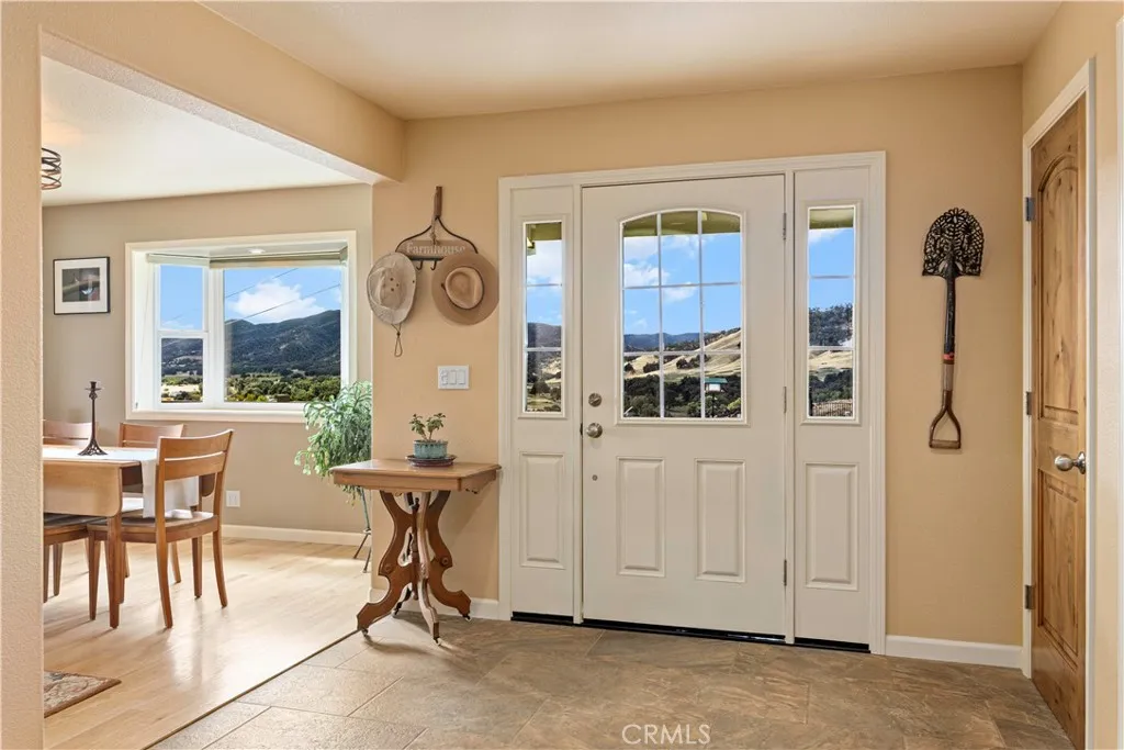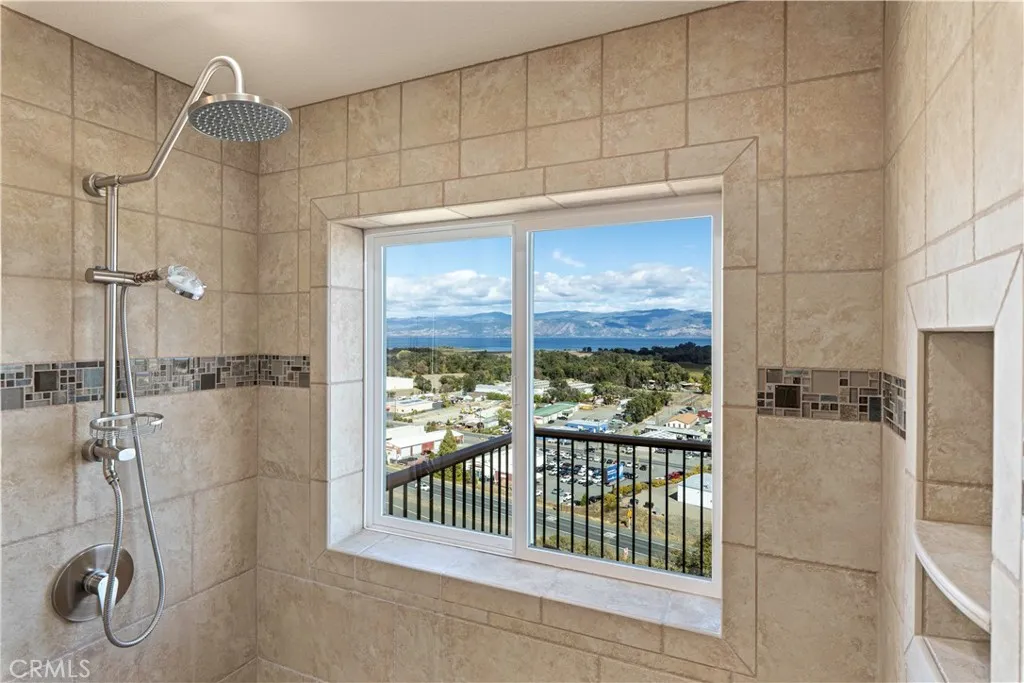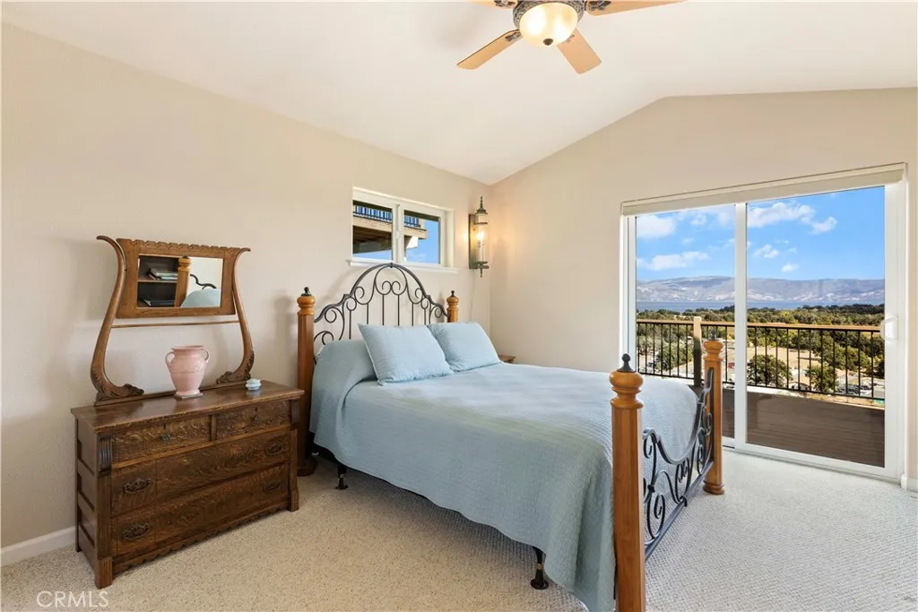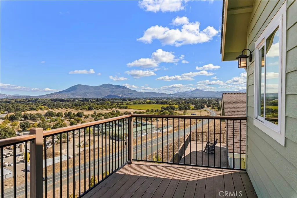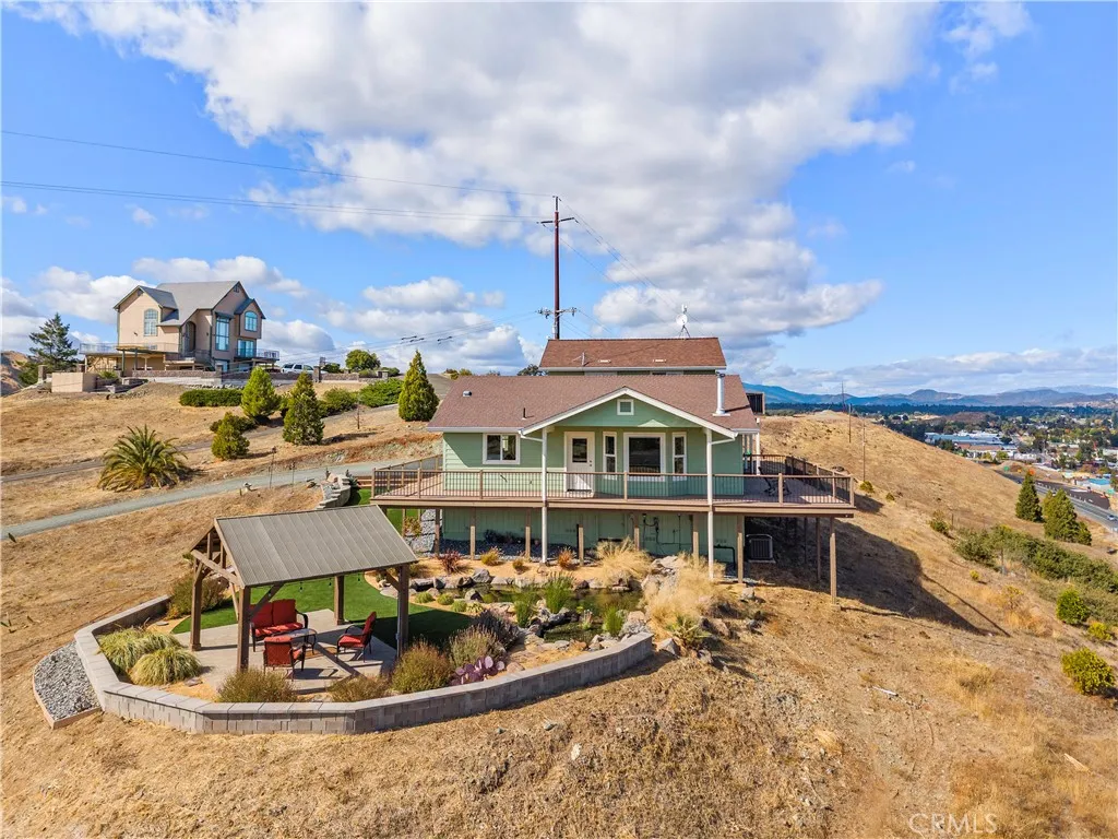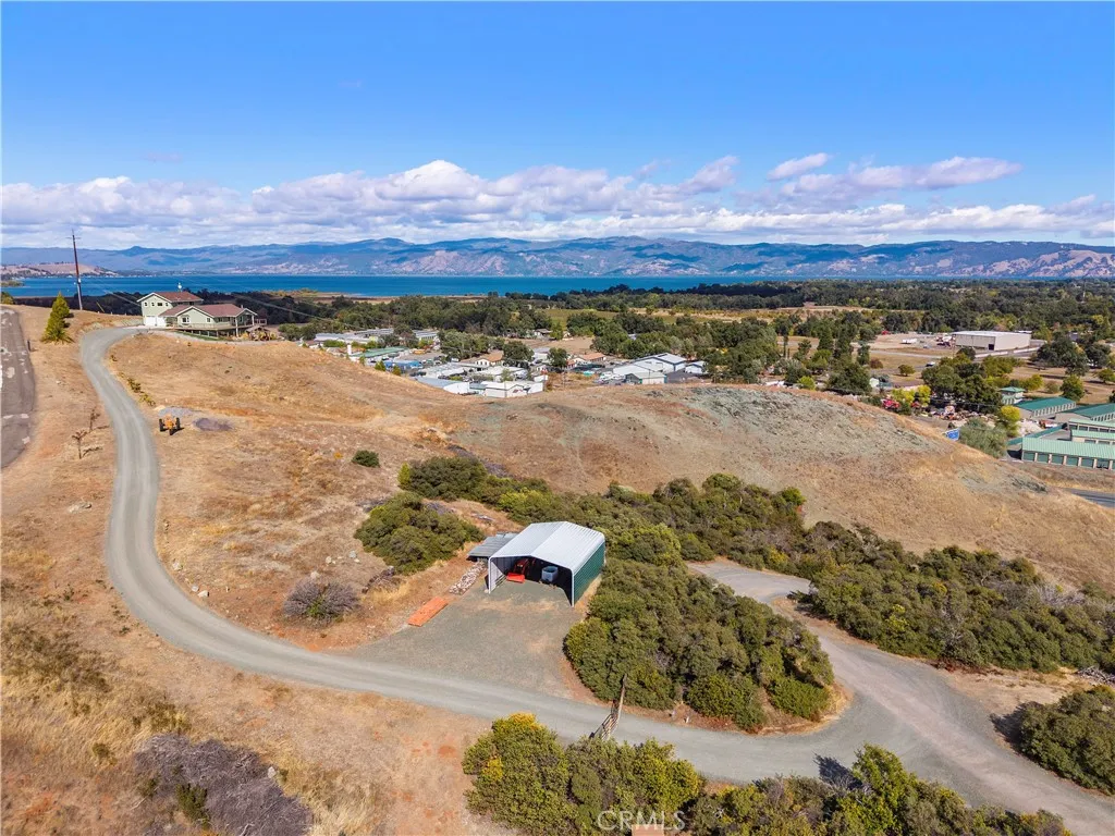 Welcome to this high efficiency two-story single-family residence set on 6.7 acres, offering space, privacy, and beautiful natural surroundings. The main level opens with a formal entry featuring neutral tile flooring, a coat closet, and a convenient laundry closet. From there, the home transitions into a formal dining area with pastoral views filtering in through picture windows. A bright open-concept living and kitchen area with hardwood floors, a great wood burning stove to keep you cozy during the winter. Plus a full bathroom with shower over tub, and access to a wraparound deck showcasing sweeping views of Lakeport, Mount Konocti and the Mayacama Mountains. A guest bedroom is also located on this level, offering direct deck access and incredible sunrise views over the lake and surrounding hills. The backyard is designed for year-round enjoyment, with a natural dipping pond and a pergola-covered, seating areaideal for cooling off in the summer or enjoying a bonfire during the cooler months. Upstairs, the spacious primary suite features a private balcony with vantage point views of the lake and vineyards, walk-in closet, double vanity, and a large tiled walk-in shower. Located directly below the suite, the oversized two-car garage features a workbench, and a large picture window that fills the space with natural light and frames a stunning lake view. Additional features include a whole house automatic generator, a detached carport suitable for larger equipment or vehicles, and an unfinished basement with full standing heightperfect for extra storage or seasonal decoratio