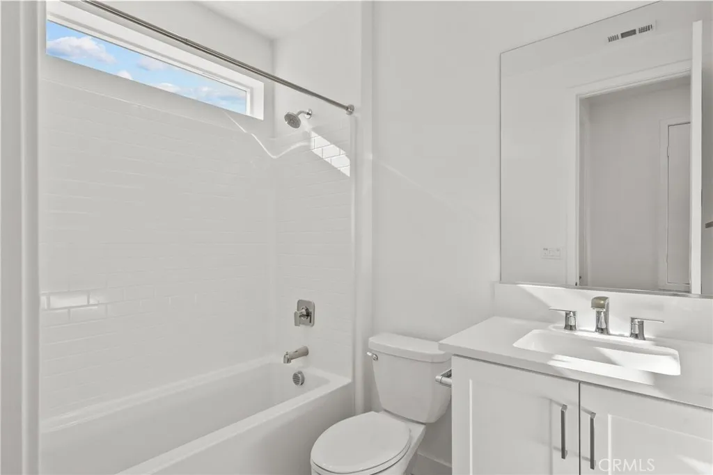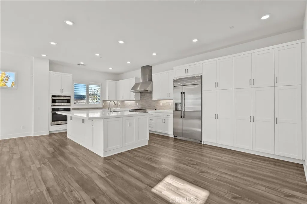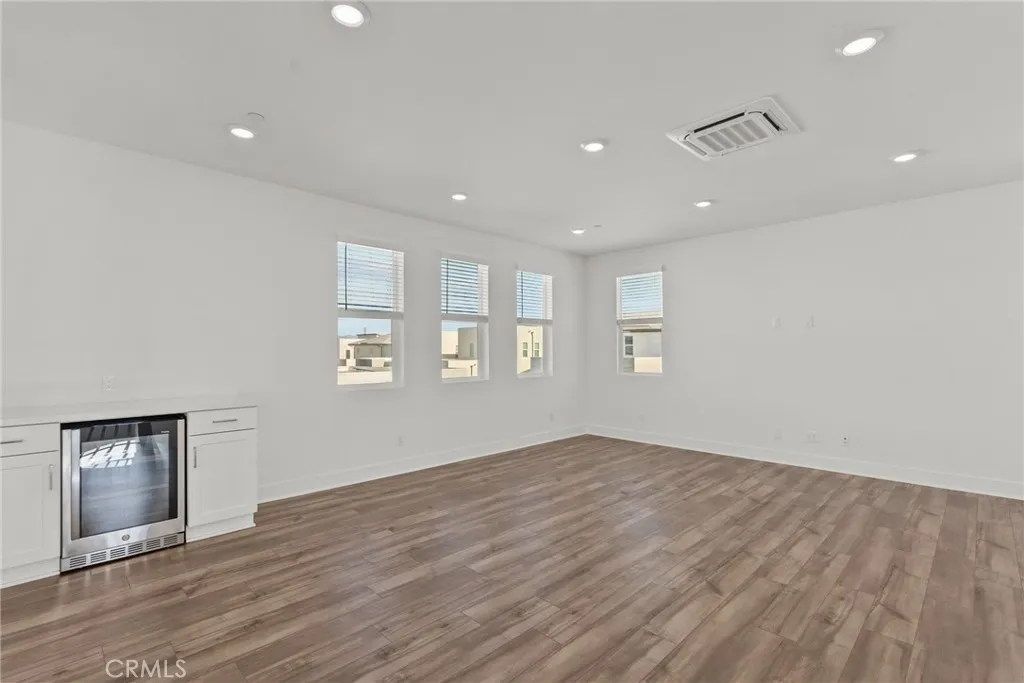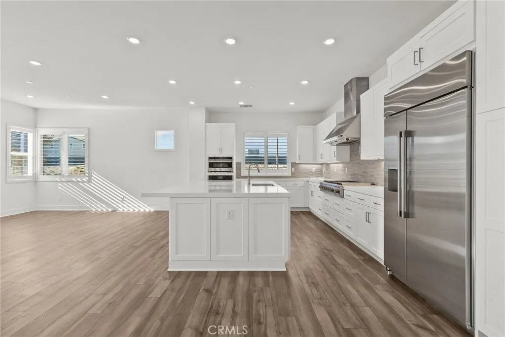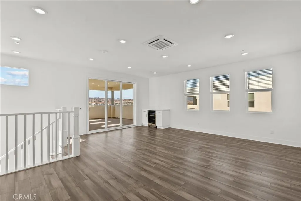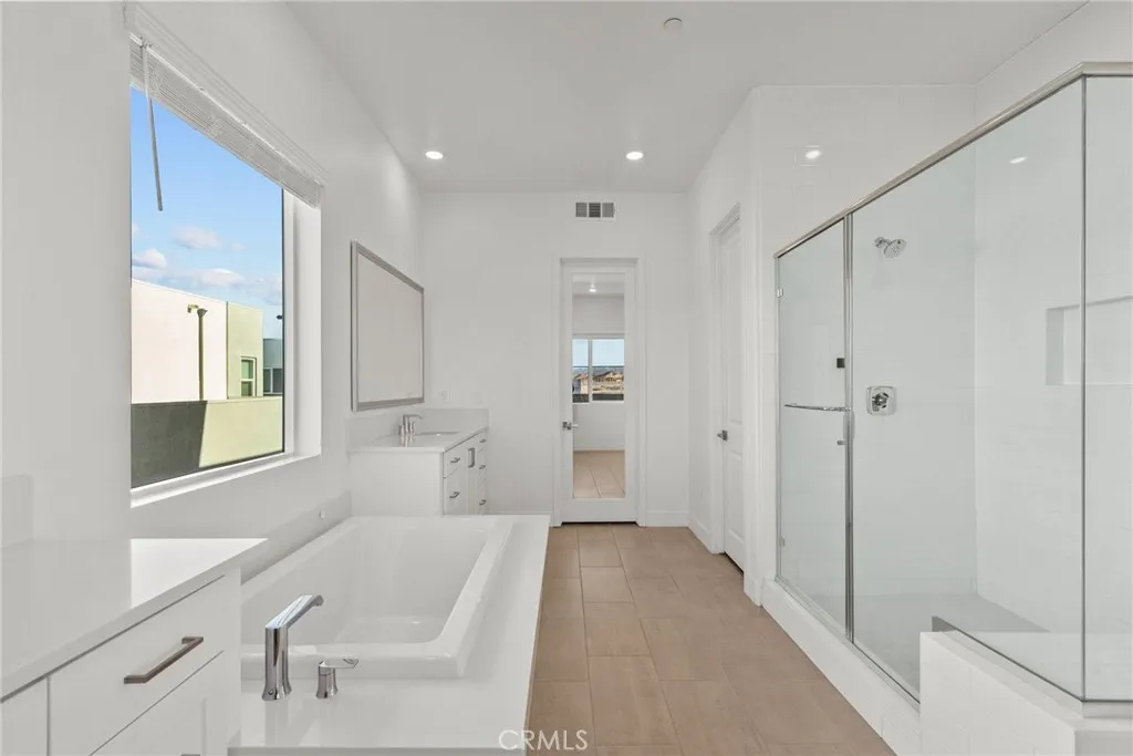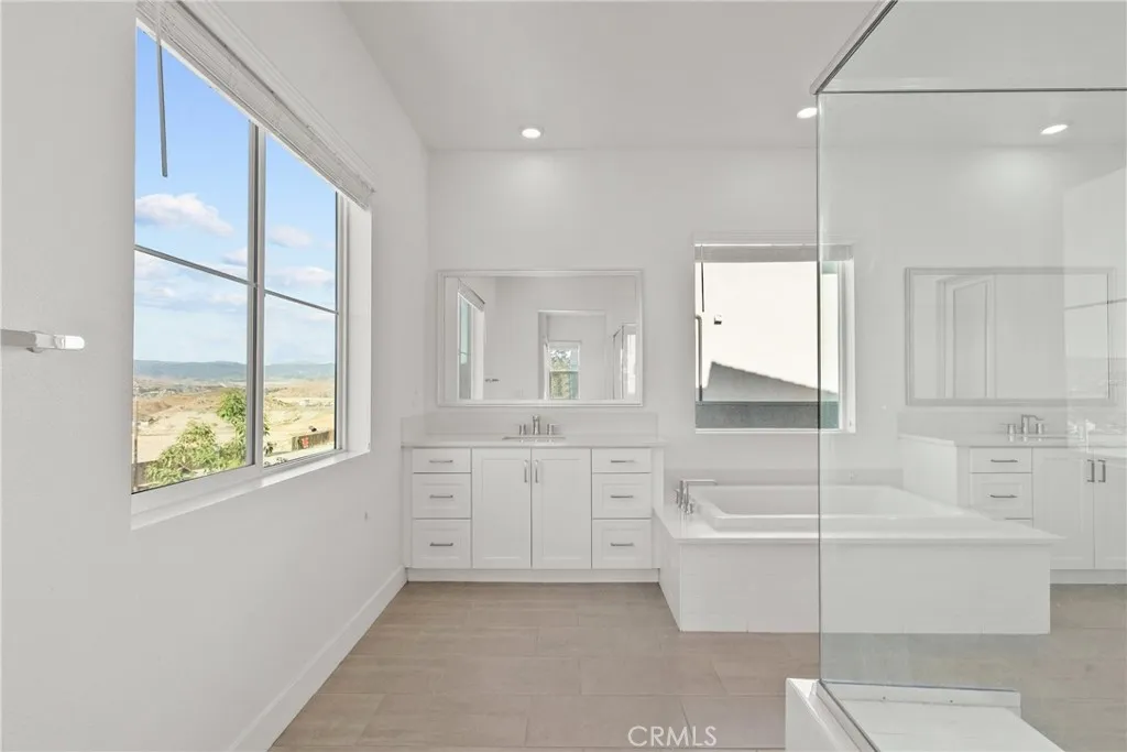 Welcome to modern luxury in the heart of Five Point Valencia. This stunning Lennar Rosemist Plan 4, the largest and most desirable model in the community, was completed a couple years ago and offers the perfect blend of sophistication, comfort, and style. With five bedrooms, four and a half bathrooms, and three spacious levels, this home showcases impeccable design and attention to detail. The main floor features an open-concept, dining area, and chefs kitchen with a large quartz-topped island, professional-grade stainless steel appliances, and a six-burner cooktop with designer hood. Ten-foot ceilings and wood-like LVP flooring create a sense of warmth and grandeur throughout. A guest bedroom with a full bath on the first floor provides flexibility for visitors, extended family, or a home office. Upstairs, the luxurious primary suite offers a peaceful retreat with a spacious walk-in closet, dual vanities, soaking tub, and separate shower, while three additional bedrooms, two more baths, and a laundry room complete the second floor. The top level is a versatile bonus/loft area featuring its own bathroom, wine fridge, counter space, and a covered terrace with panoramic views of the Santa Clarita Valleyperfect for a game room, gym, or lounge. Enjoy year-round outdoor living with a gated backyard and covered patio ideal for dining or relaxing. Located within the vibrant Five Point community, residents have access to world-class amenities including three pools, a spa, BBQ areas, playgrounds, scenic greenbelts, and a resort-style clubhouse. Conveniently close to shopping, restau