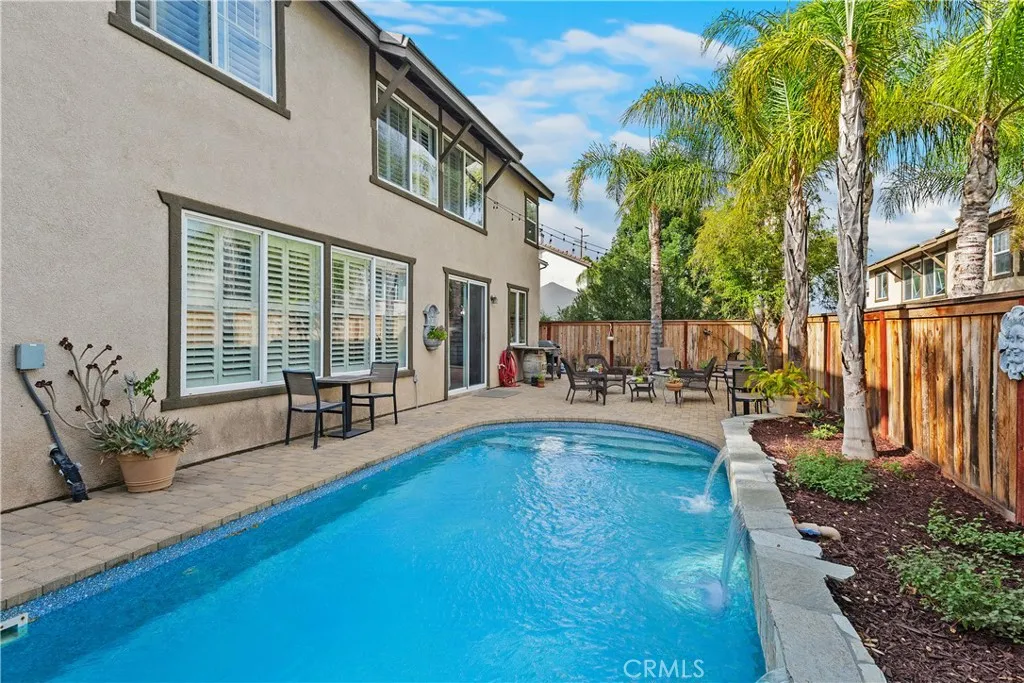 Welcome home to this meticulously maintained turnkey residence in the highly desirable Northstar Ranch community. This spacious 4-bedroom, 3-bathroom home spans 2,466 square feet and offers an ideal layout for modern living. Enjoy seamless entertaining in the open-concept kitchen and family room, complete with a cozy fireplace, granite countertops, and elegant plantation shutters throughout. The main floor features a private bedroom and bath, equipped with its own mini-split AC, perfect for guests or a home office. Upstairs, the large primary suite serves as a true sanctuary, with picturesque views of mature trees that offer a sense of privacy and tranquility. The primary bathroom includes dual sinks and an extra-large closet with a dressing area. Step outside to your own backyard oasis, where a vinyl saltwater pool features a custom foundation and three beautiful waterfalls, complemented by a fire pit for evening gatherings. Additional upgrades include central air, heating, a whole-house fan, a new garage door, finished attic access, and an electric charging station. A custom side yard gate adds to this home's beauty and curb appeal.
