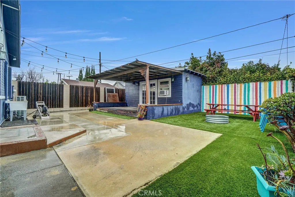 Dont miss this beautifully remodeled 3-bedroom, 2-bathroom home offering 1,576 sq ft of stylish living space plus a 200 sq ft back house with additional bathroomperfect for conversion to an ADU or rental unit for extra income potential! Step inside to an open-concept kitchen featuring upgraded slab countertops, recessed lighting, stainless steel appliances, abundant cabinetry, and a cozy breakfast nook. A spacious living room with a second dining area is ideal for gatherings and entertaining. Retreat to the primary suite, showcasing a remodeled luxurious bathroom with dual vanities, 8 feet of quartz counter space including a built-in makeup desk, and an oversized soaking tub with a full glass shower surrounded by designer tile. Enjoy vaulted ceilings in every room, wood laminate and tile flooring throughoutd, a new energy-efficient HVAC system, dual-pane windows, and an indoor laundry room with direct access to the 2-car garage. Outside, relax or entertain on the 200 sq ft deck overlooking easy-maintenance, drought-tolerant landscaping with artificial turf. Ask about optional flooring, kitchen, and bathroom upgrade packages that can be included in the sale of the home. Conveniently located just minutes from the beach, major freeways, top-rated schools, shopping, and diningthis home offers the perfect blend of comfort, style, and opportunity.