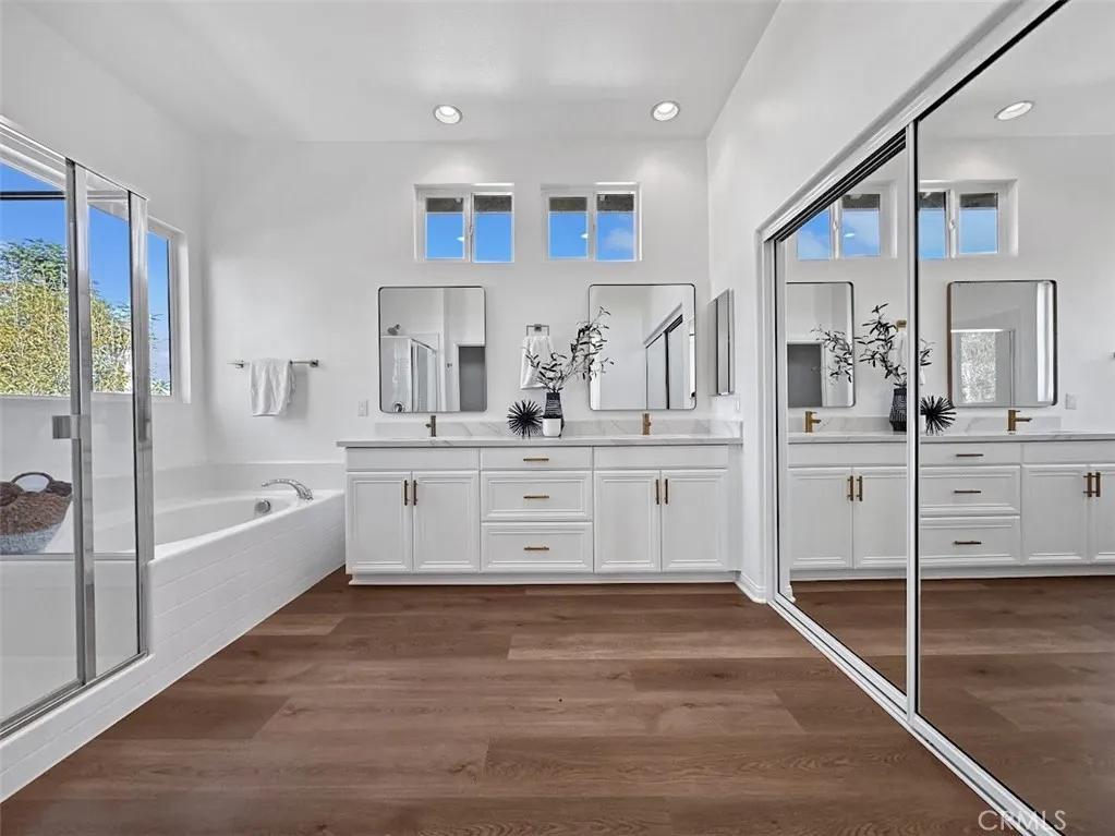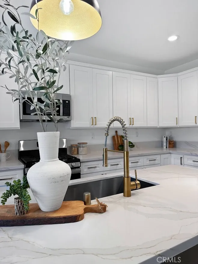 Absolutely gorgeous 5-bedroom, 3-bathroom home on a desirable corner lot! Recently renovated with modern upgrades including fresh paint, stainless steel appliances, soft-close shaker cabinets, quartz countertops, and more. From the moment you enter, you'll love the soaring ceilings, abundant natural light, and designer-inspired finishes throughout. The stunning kitchen offers ample storage, a stylish center island, and is perfect for entertaining. A downstairs bedroom and full bath provide ideal space for guests or multi-generational living. Upstairs, the spacious primary suite features a light-filled bedroom, dual vanities, soaking tub, separate shower, and walk-in closet. With a 3-car garage, landscaped yard, and great curb appeal, this home perfectly blends comfort, style, and functionalitymove-in ready and waiting for you!