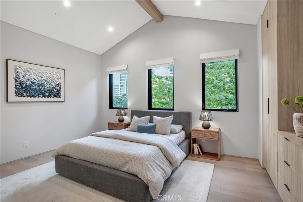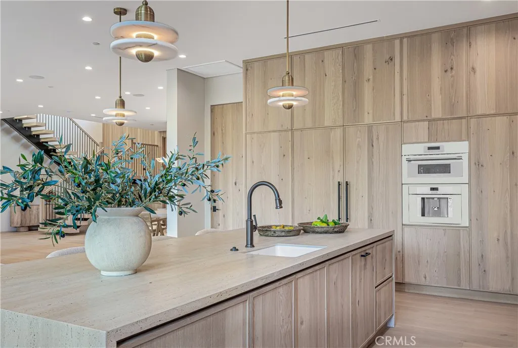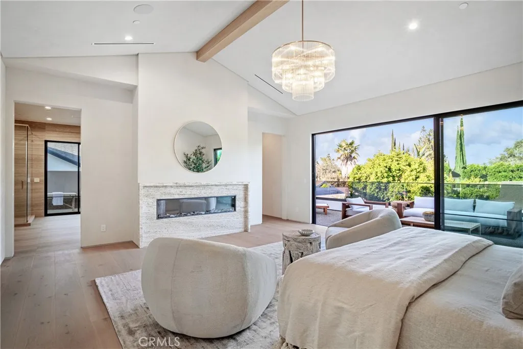 Perfectly Curated New construction on a quiet cul-de-sac within a premier Encino location. This estate perfectly blends cutting edge amenities and warm organic design elements while providing ultimate comfort. Expansive open floor plan and soaring high ceilings flood the home with natural light. Exquisite chef's kitchen displaying an oversized center island with breakfast seating, top-of-the-line Thermador appliances, and custom built oak cabinetry. In addition, the main level offers a spacious home office with a separate entry, and a fully-equipped movie theater perfect for family movie nights. Luxurious primary suite offers a massive walk-in closet, and spa-like bathroom with soaking tub, walk-in shower, double vanity counter space, and an enclosed patio perfect for relaxation. The entertainers yard features a sparkling pebble-tech pool/spa, ample grassy area, built-in BBQ and fire pit lounge area. Home is gated for maximum privacy, and equipped with a Control 4 Smart system, solar panels, surround sound, and security cameras throughout.