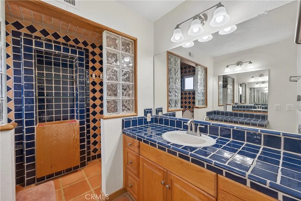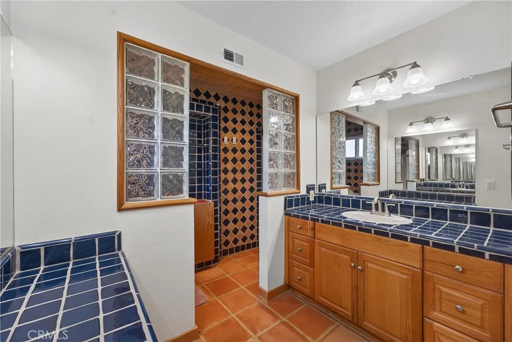 Single story home with great curb appeal, both the front yard and the back boast sod and landscape includes rock border detailing, new plants and brick patio, low maintenance & tastefully done. Living room which has a fireplace, high ceilings with track lighting, decorative niches & display shelves. Spacious kitchen and dining area features light wood toned cabinetry with an abundance of storage cabinetry, counter space to prepare and serve, decorative pendant lighting, decorative glass insets to multiple cabinet doors, recessed lighting, Ceramic tile, custom tile backsplash kitchen counter tops All 3 bedrooms have additional storage & shelving which adds storage. The master bedroom has a master suite. The driveway offers plenty of parking with additional area of concrete to provide extra space