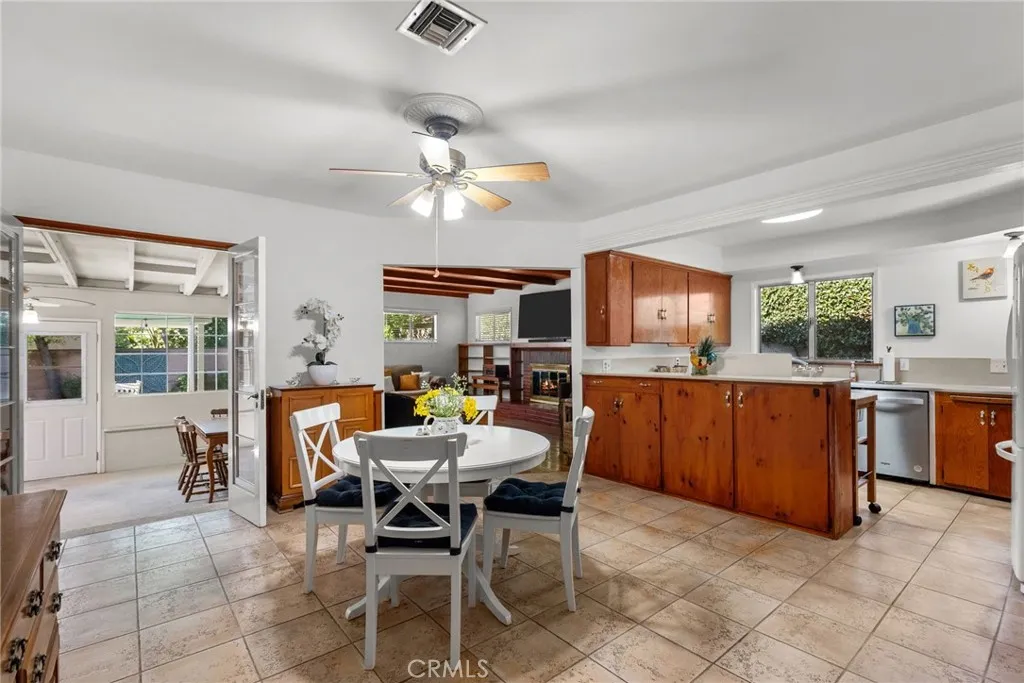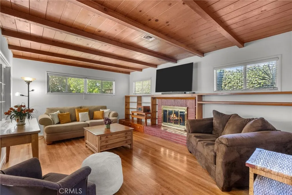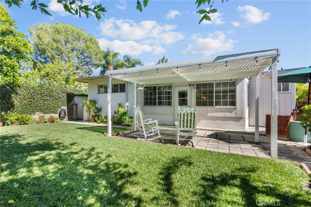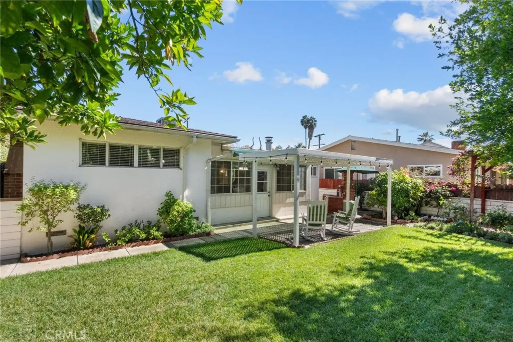 Welcome to this inviting Valley Glen charmer where warmth, character, and comfort intertwine. From the moment you arrive, the homes inviting curb appeal catches your eye a classic ranch silhouette framed by lush landscaping, brick-lined walkways, and vibrant greenery that create a warm first impression. Step Inside, sunlight dances across warm hardwood floors, highlighting a spacious living room with rich tongue-and-groove wood ceilings and a brick-trimmed fireplace that instantly feels like home. The open dining area flows effortlessly into a bright country-vintage inspired kitchen with custom solid-wood cabinetry, and a layout that invites conversation while cooking. The primary suite serves as a peaceful retreat, while the secondary bedroom is equally versatileideal as a guest room or home office. Both bathrooms retain a nostalgic charm while offering plenty of functionality.. Step into the sunrooma delightful bonus space wrapped in windows and natural lightperfect as a morning coffee nook, reading lounge, or creative studio. Out back, discover the meticulously manicured outdoor sanctuary featuring a lush grassy yard framed by mature greenery, a delightful pergola adorned by deep-purple Bougainvillea, a majestic orange tree, and a covered patio ideal for outdoor dining and weekend gatherings. The extended driveway provides plenty of extra parking in addition to the attached two-car garage which also offers workspace and ADU potential. Perfectly located near NoHo West Shopping Mall, Trader Joes, LA Fitness, restaurants, local cafes, parks, and major freeways, this home o