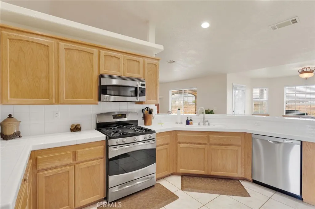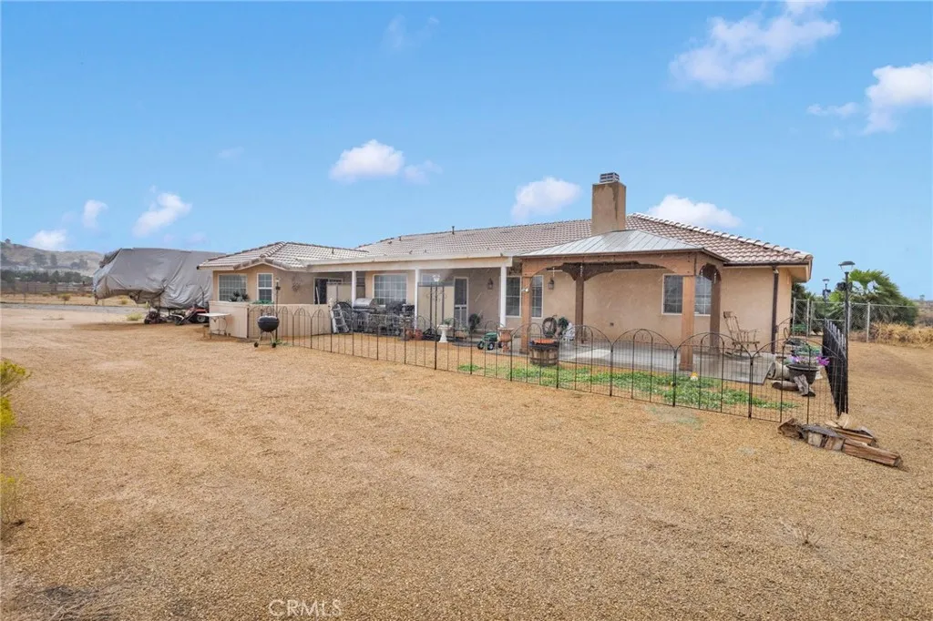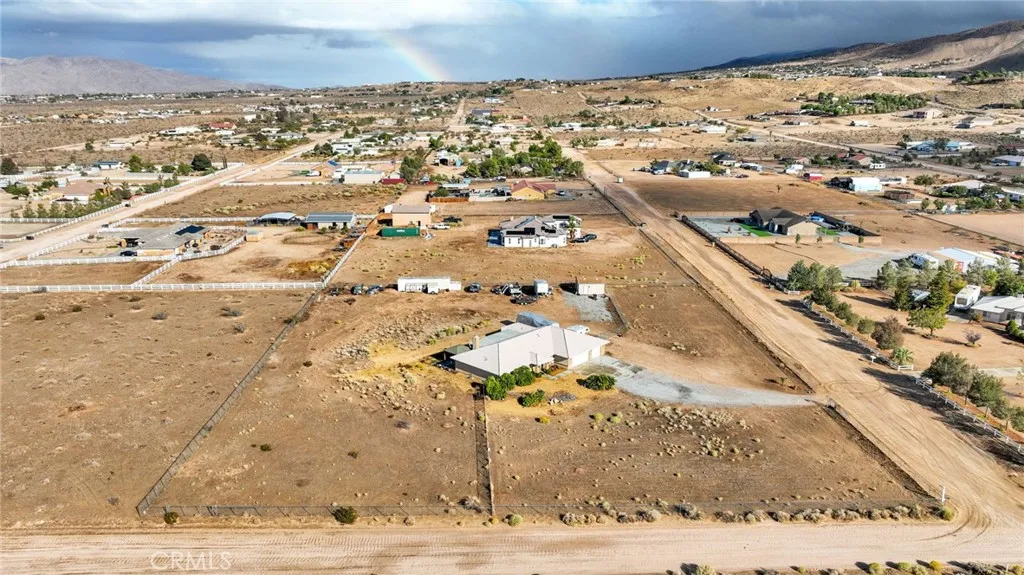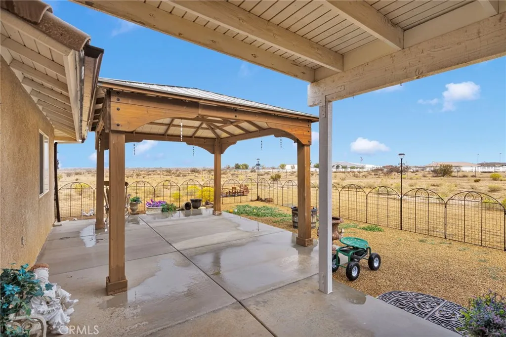 This move-in ready, extremely well-maintained 4-bedroom, 3-bath home sits on 2.5 fully fenced and cross-fenced acres with breathtaking mountain views. Inside, youll find vaulted ceilings and a large living room featuring a beautiful brick gas fireplace, built-in shelving with accent lighting, and an open, inviting layout. The split floor plan offers privacy, with three bedrooms and a full bathroom on one side and a huge master suite on the othercomplete with a luxurious ensuite living area, that leads to private patio, large bathroom with garden tub, dual sinks The open kitchen is a cooks dream, featuring a 5-burner stove, microwave/convection oven combo, tons of cabinet space, under-cabinet lighting, two pantries (including one large walk-in), and a bar area perfect for casual seating. Step outside to enjoy a relaxing gazebo area, a 30x20 detached garage/workshop with electricity, and a 40-ft storage container. The property also includes an oversized 3-car garage, an RV pad with 50-amp power, and multiple double gates for easy access. Water spigots are conveniently located on all sides of the home. situated on a well-maintained 0.3-mile dirt road, this home is in one of the lowest-cost water districts in Apple Valleyand youll love the added bonus of not needing to pay for trash service (if buyers prefer) because this home comes with a dump card. This property has so much to offer!